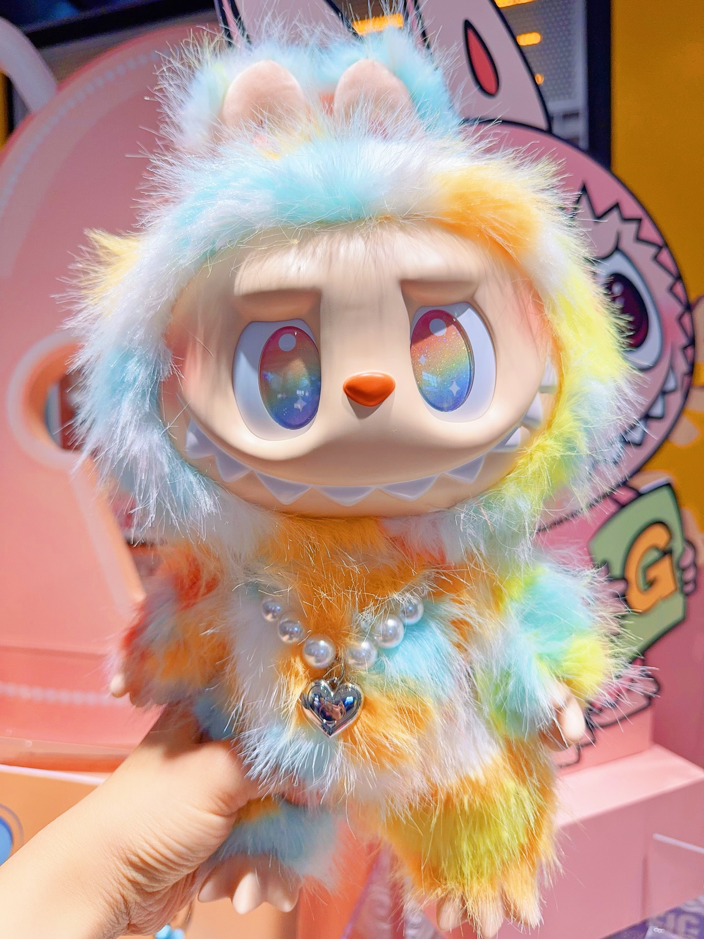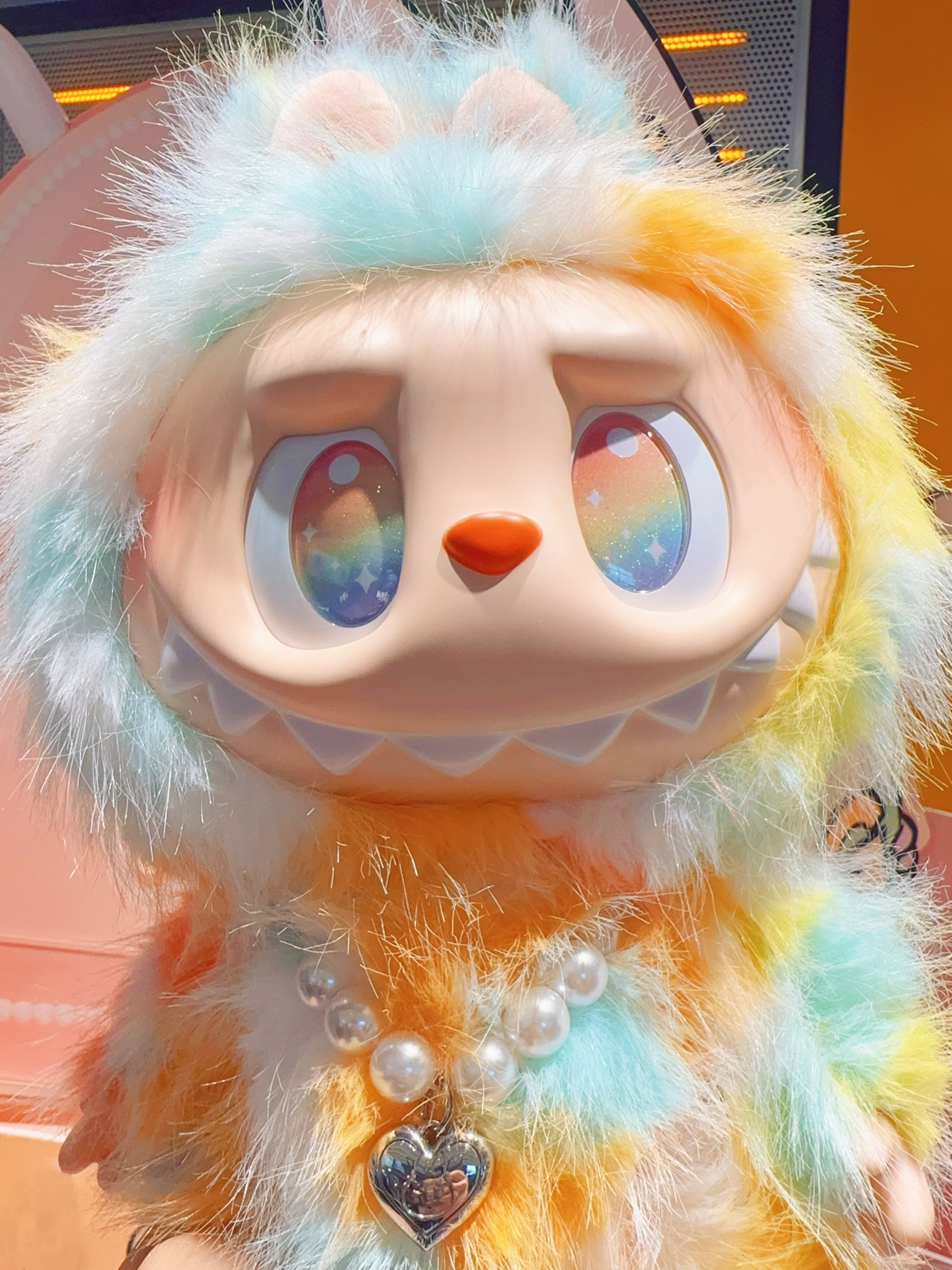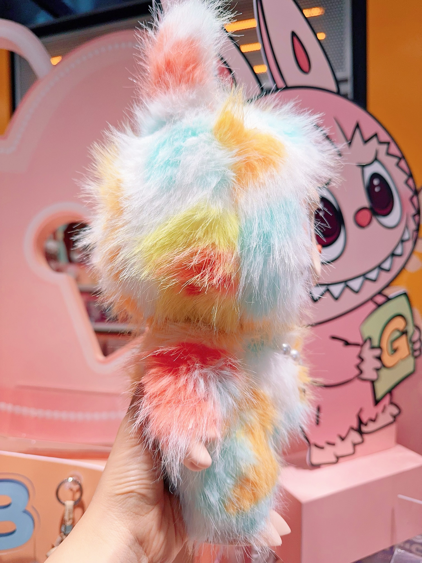 全方位展示我最爱的Labubu‼️泡泡玛特前方高能扎染搪胶毛绒公仔太萌了✨一身梦幻的扎染拼色,连眼睛里都是彩虹的颜色,不管侧面还是背面从哪个角度看上去都色彩鲜亮又好看,又长又软的毛毛摸起来手感也很舒服,胸前还佩戴了爱心形状的珍珠项链,真的是细节满满太可爱了呢~图源网络侵删