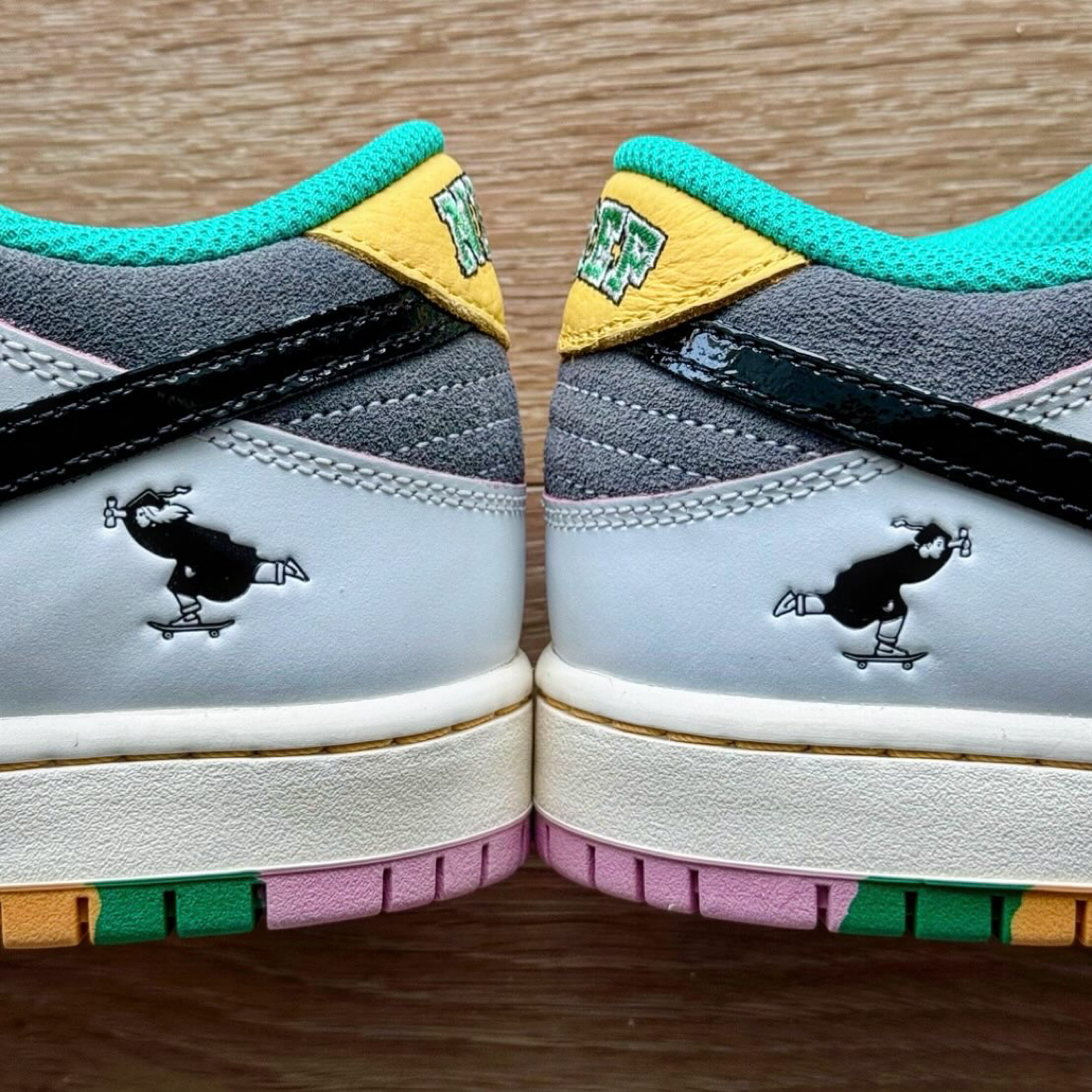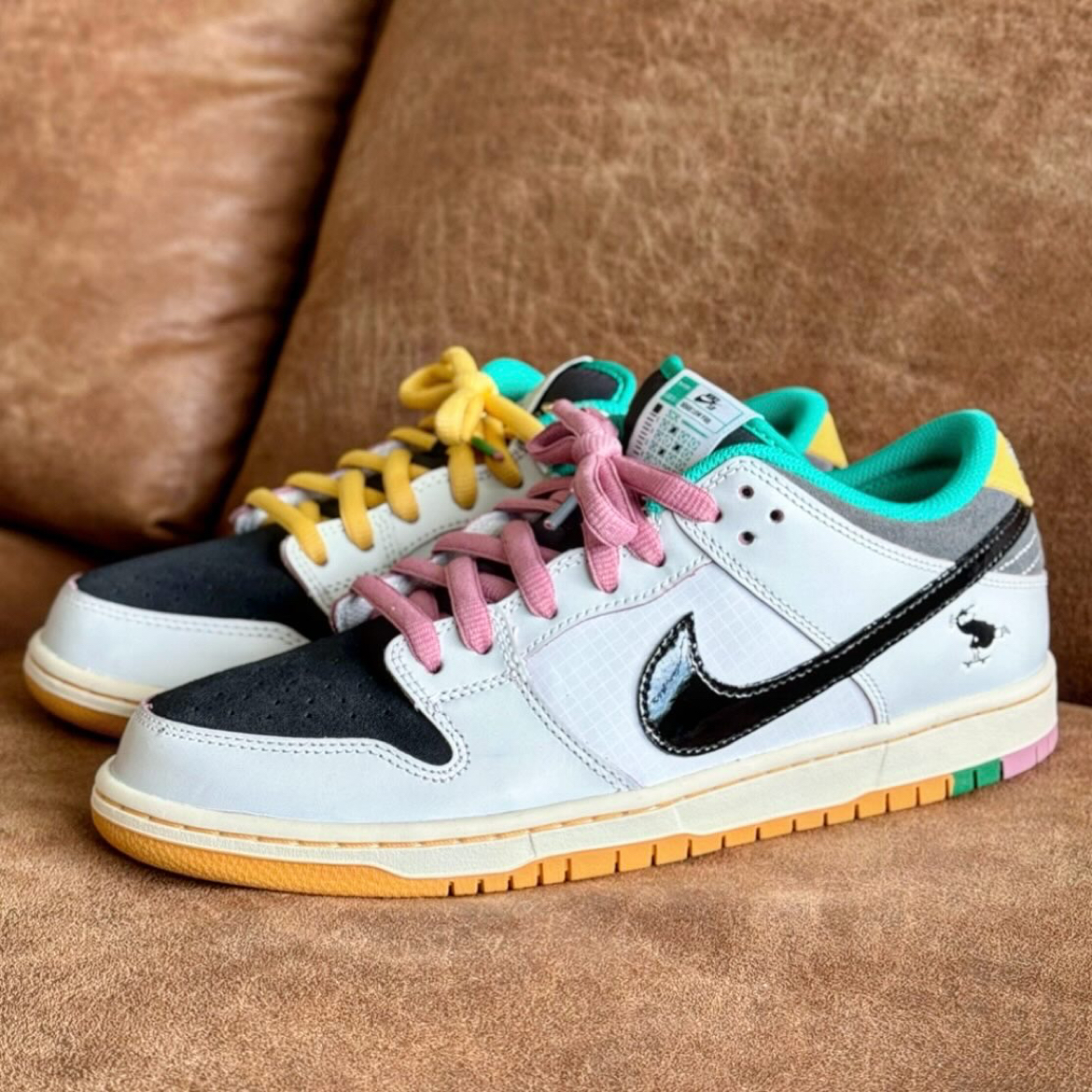 这双联名 Dunk SB 真的细节拉满!经典黑白主调搭配粉麂皮+黄皮质后跟,配色清爽又亮眼👟✨ 最绝的是——它居然是一双隐藏刮刮乐!白色表层刮开后会逐渐露出骚气粉色,自己DIY独属配色也太香了吧🥹 虽然手残党不敢乱刮(小声:全刮开确实有点over)但局部点缀就已经氛围感十足了~ 鞋垫暗藏毕业帽图案🎓,鞋舌标罕见地换成 Nike “答题卡”设计✏️,连大底都是复古生胶材质!每一个小细节都在说:我超...
