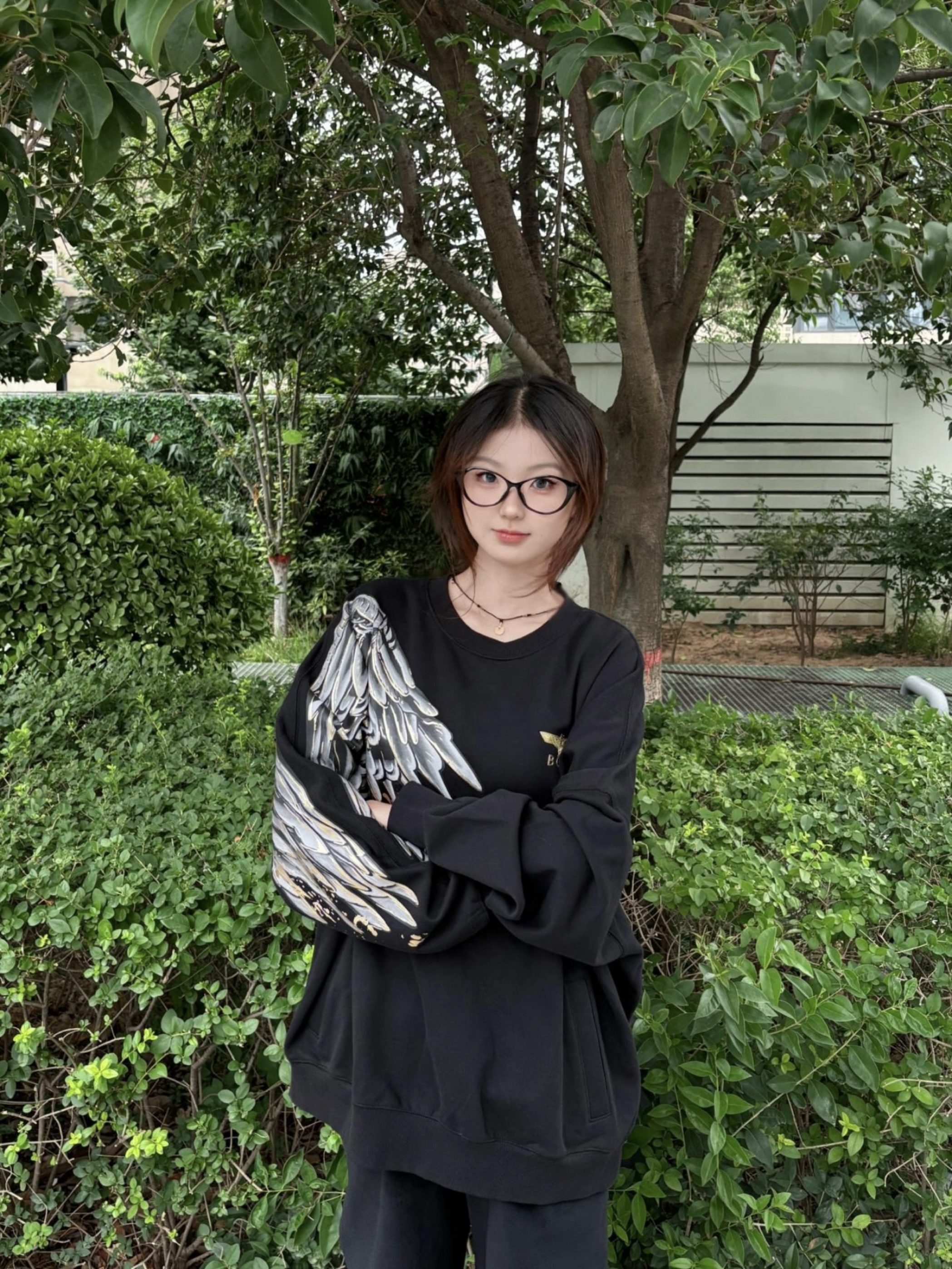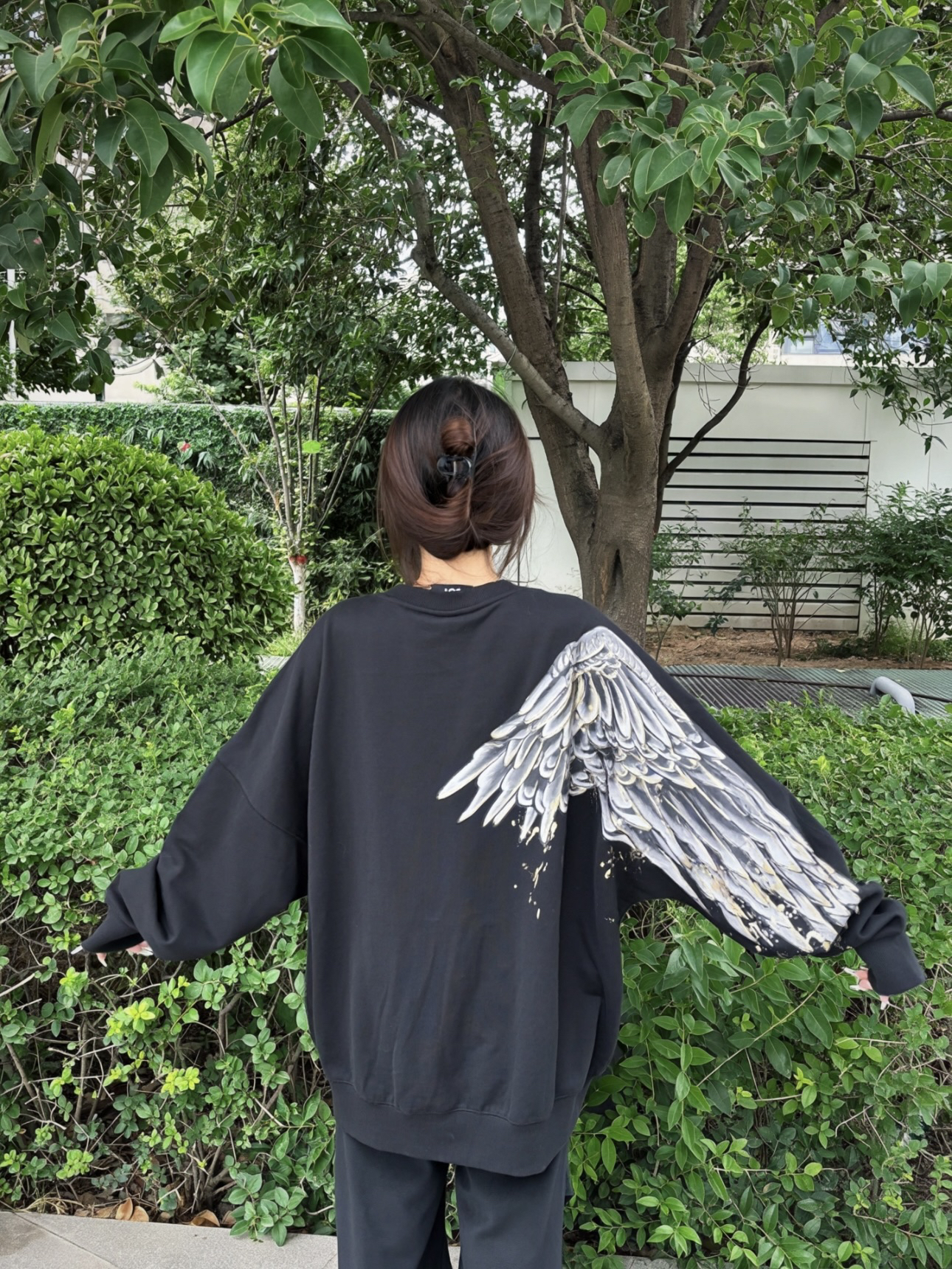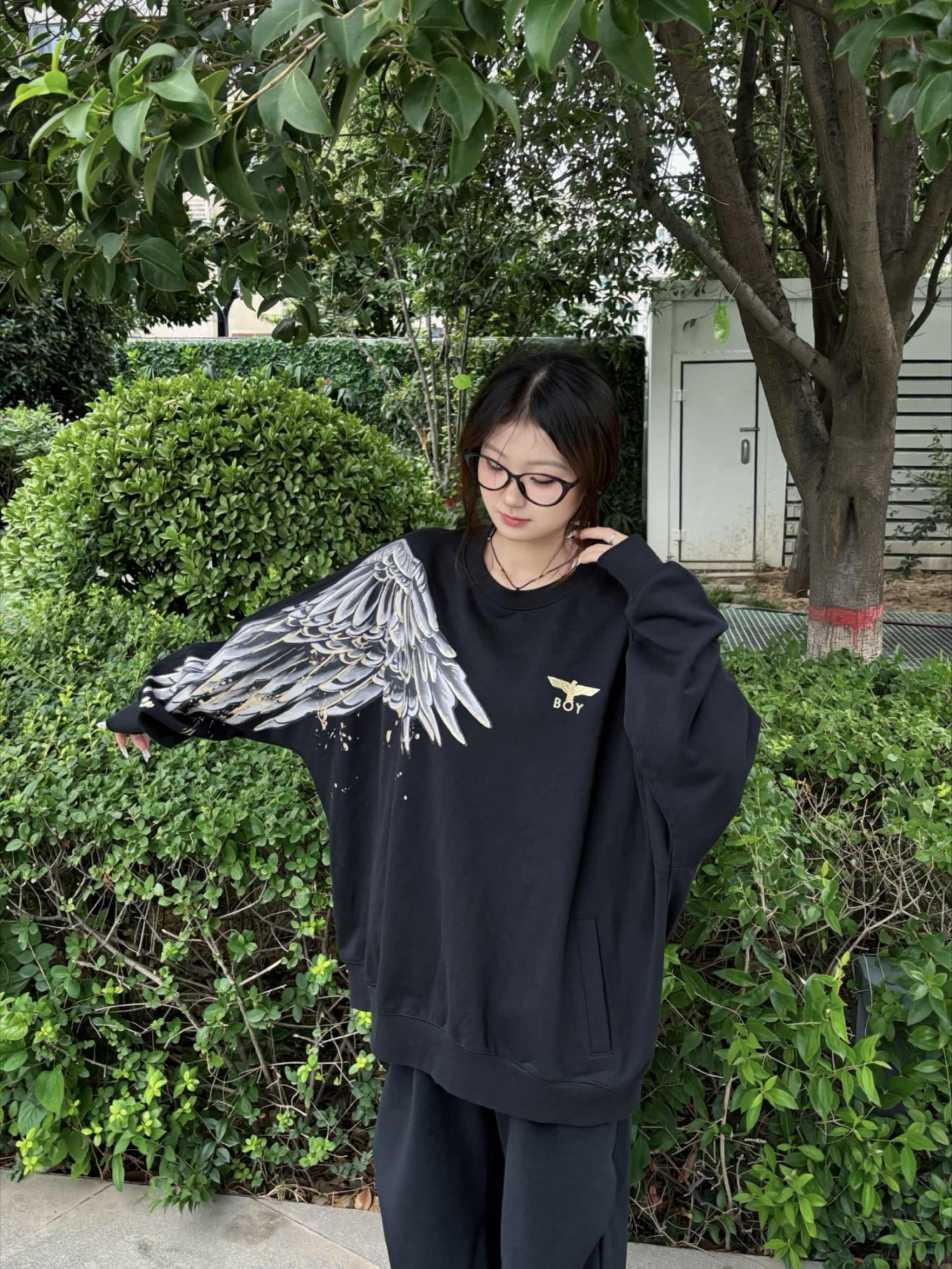 👚:翅膀印花卫衣 👖:直筒裤 卫衣真的超级百搭 袖子大翅膀印花设计 好看又时尚 怎么搭配都很漂亮 161/90 上身M码