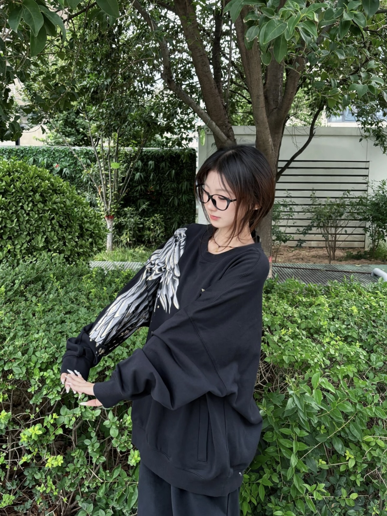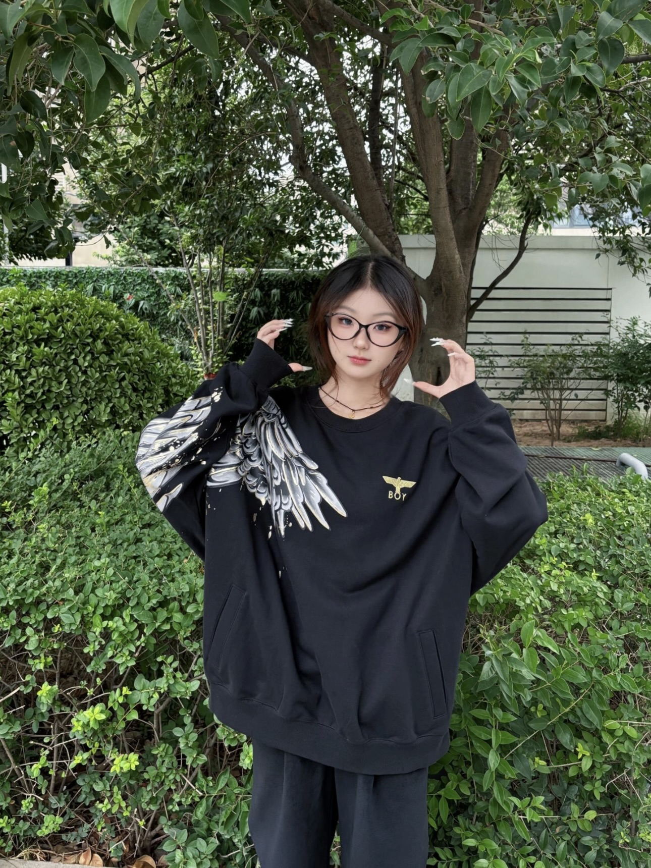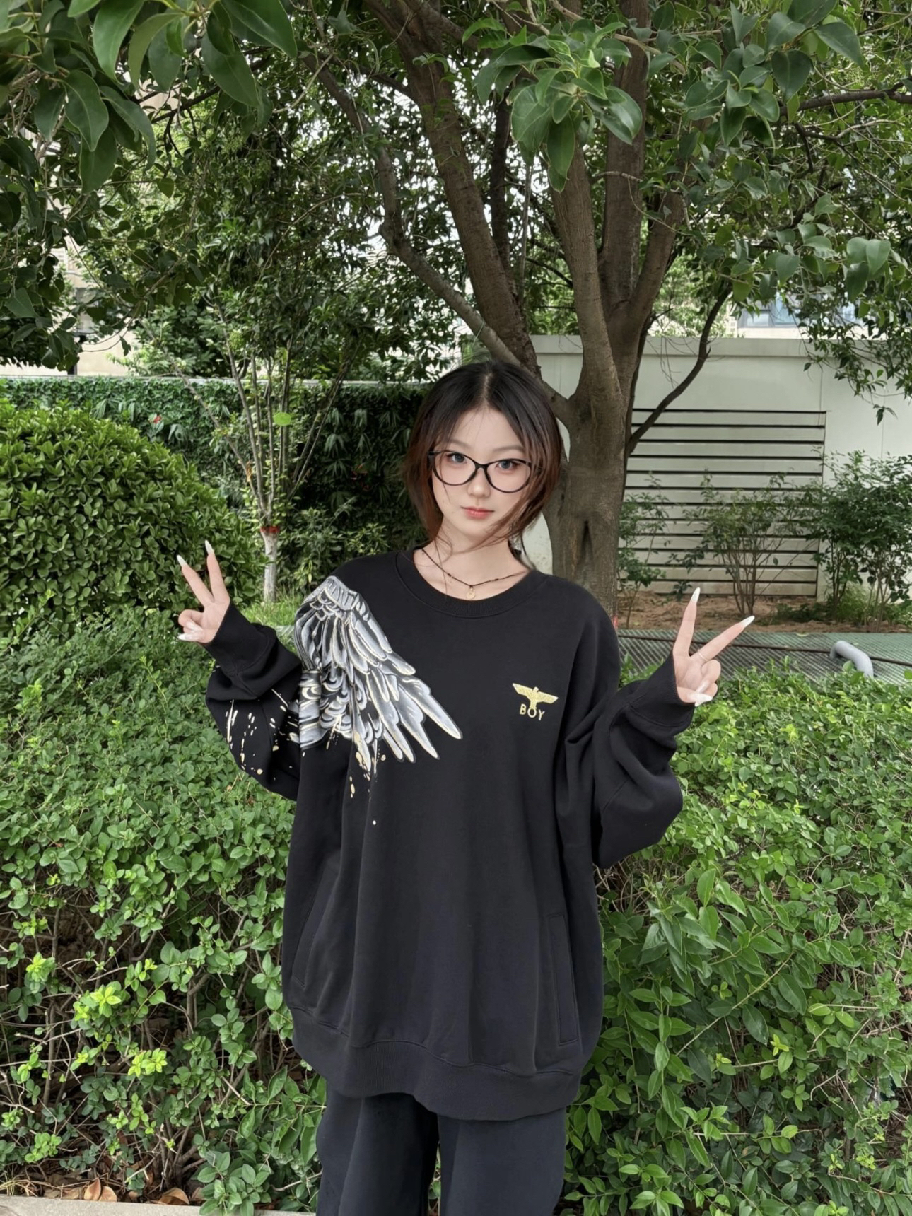 👚:翅膀印花卫衣 👖:直筒裤 卫衣真的超级百搭 袖子大翅膀印花设计 好看又时尚 怎么搭配都很漂亮 161/90 上身M码