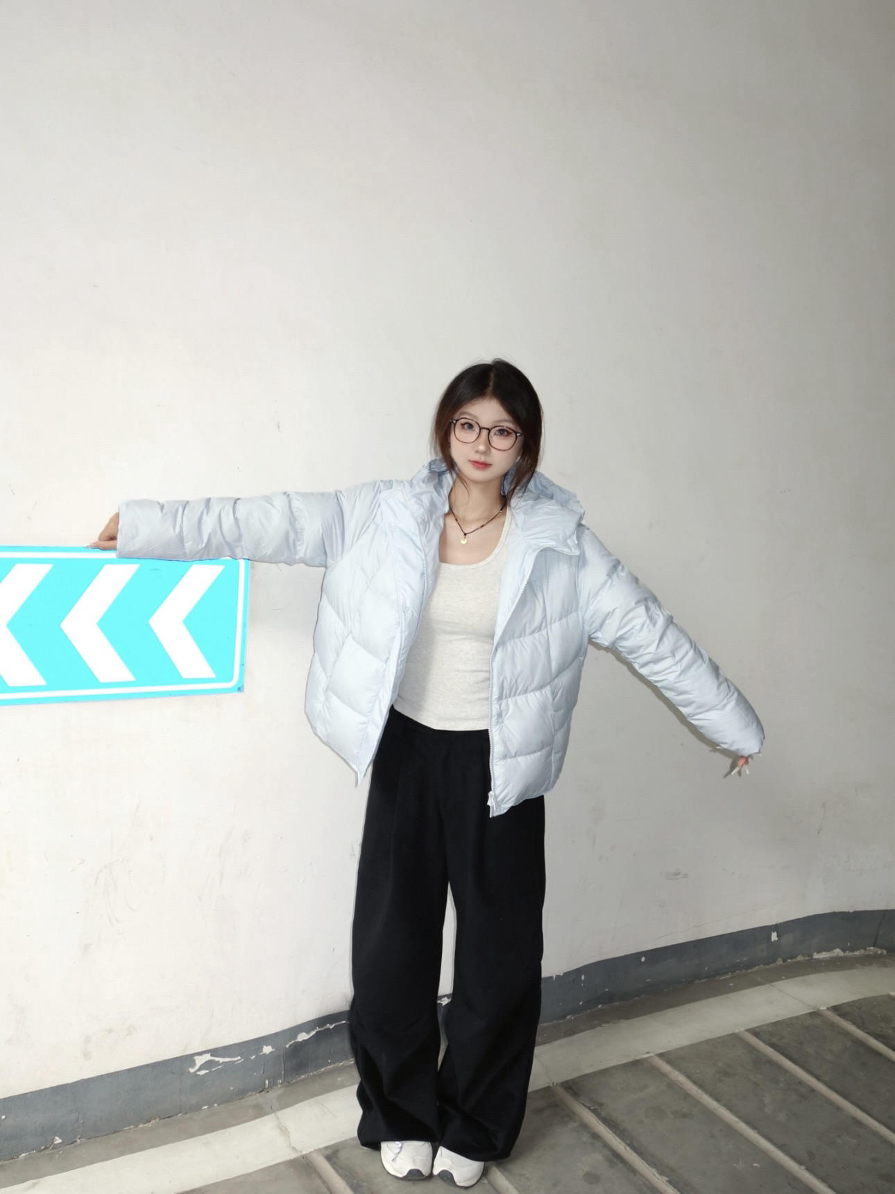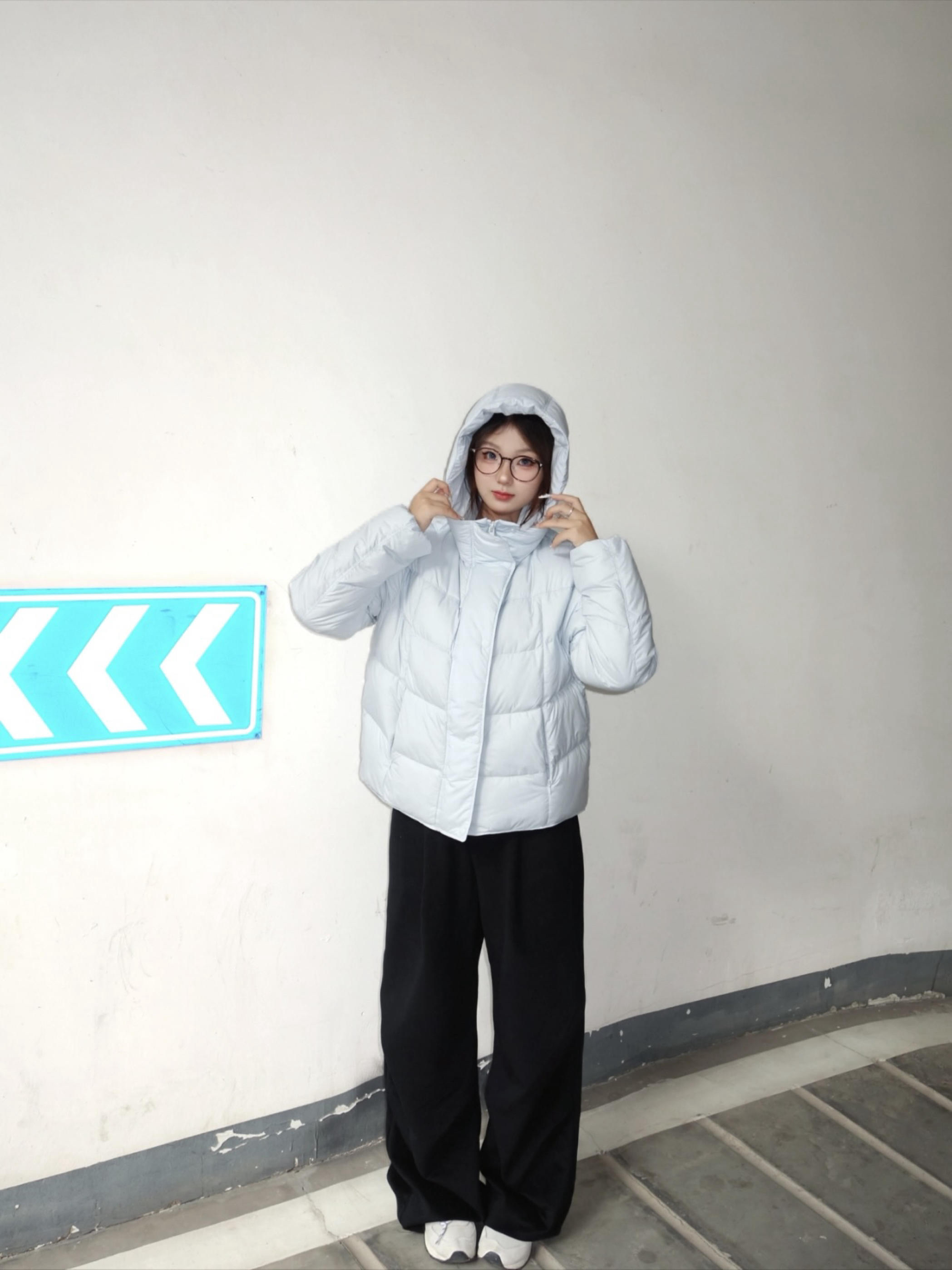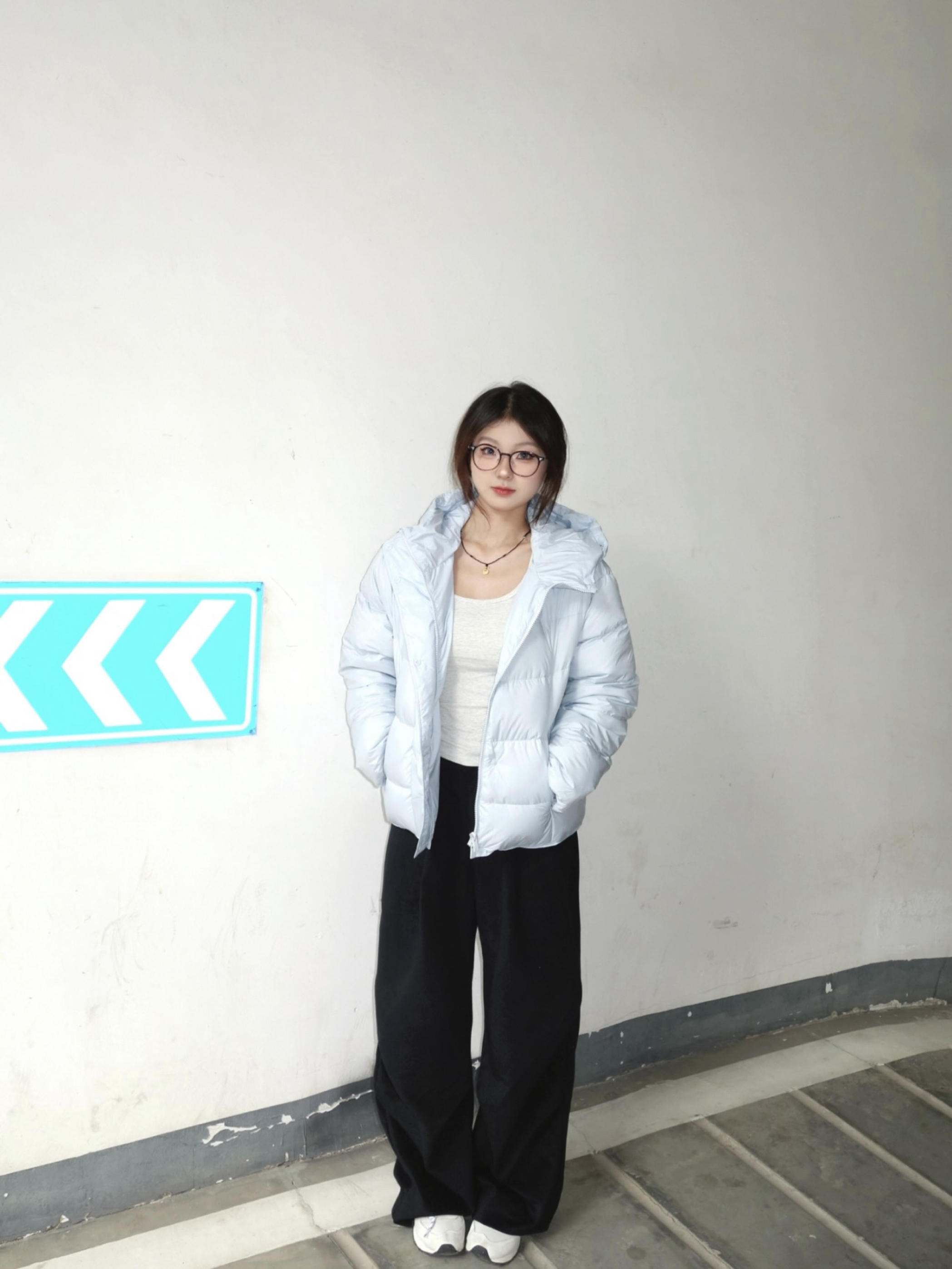 :天蓝色羽绒服 👖:黑色直筒裤 今日份冬季OOTD 羽绒服真的和冬天锁死! 冬天是真的少不了羽绒服 天蓝色面包羽绒服 搭配黑色直筒裤 休闲又时尚 日常穿完全没问题 — 羽绒服上身包裹感很棒 保暖性能也很不错哦 而且也不是很臃肿 天蓝色也是很百搭的颜色 161/90 上身S码哦