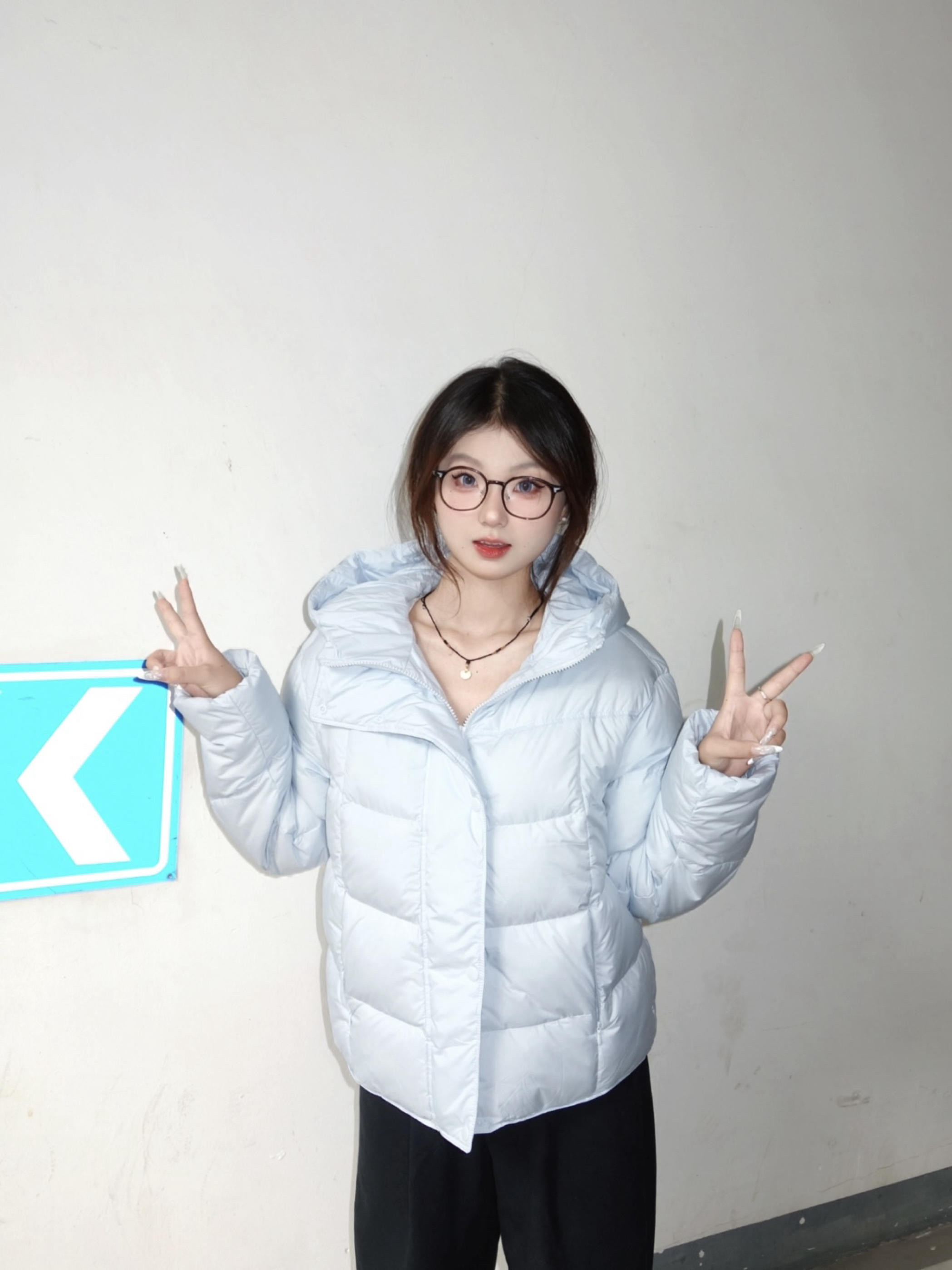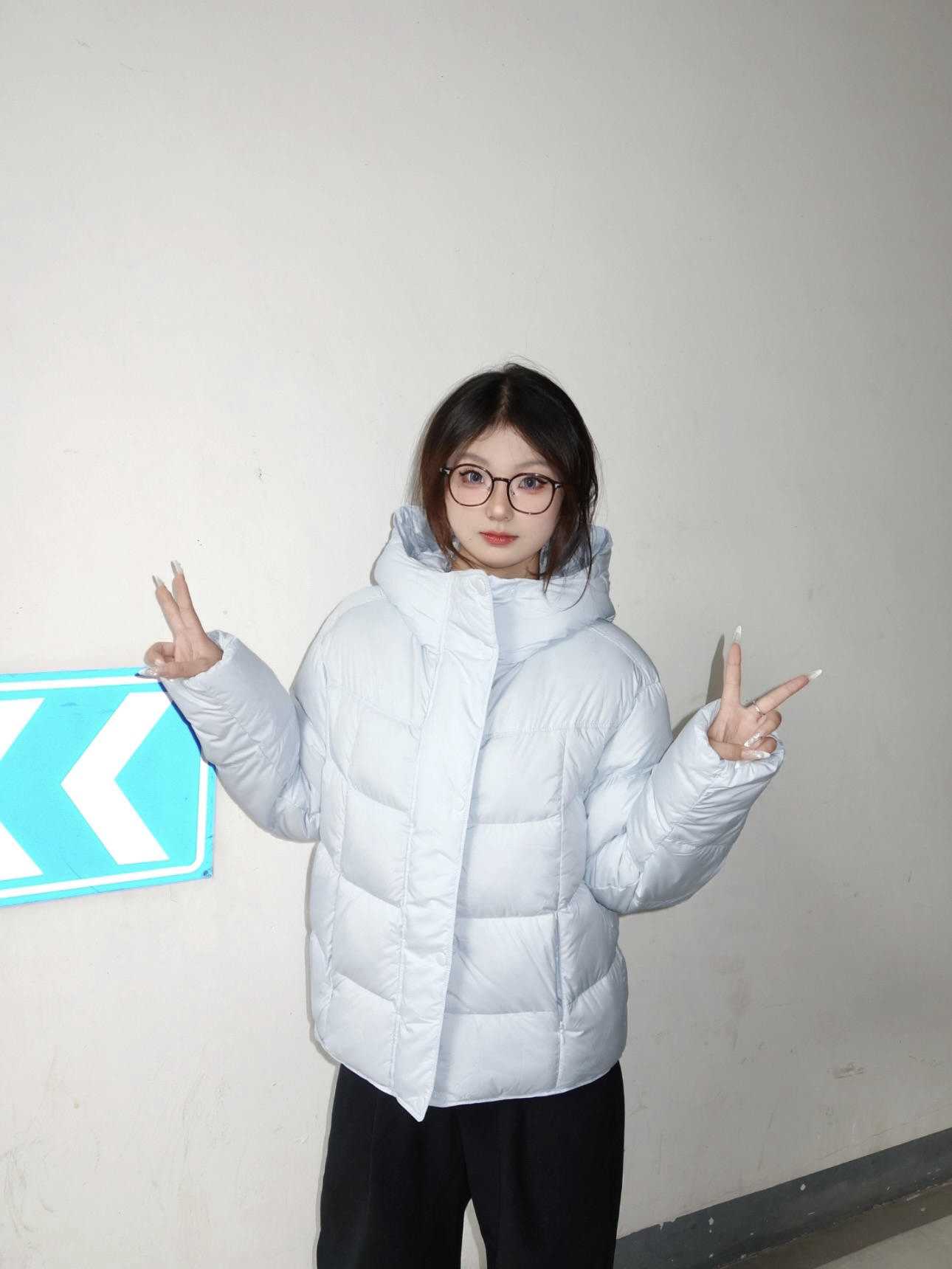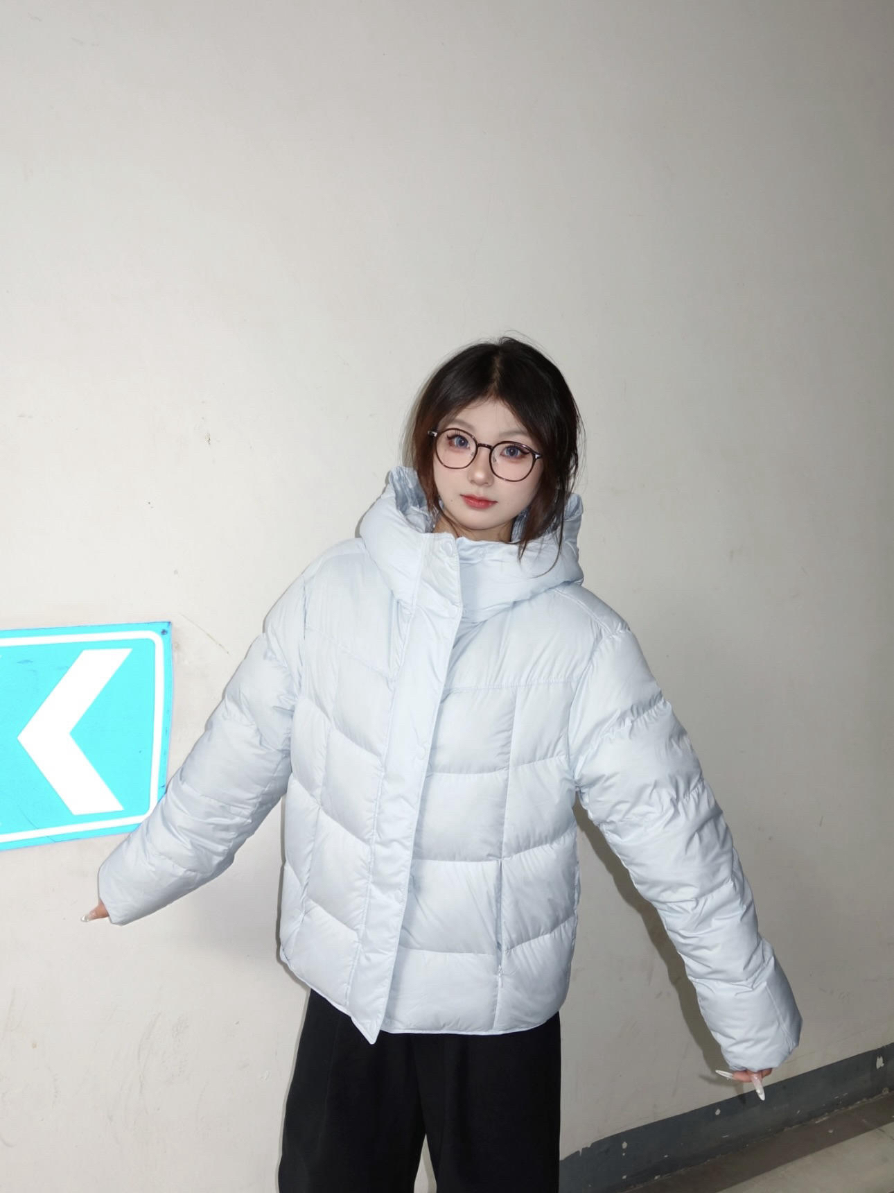 :天蓝色羽绒服 👖:黑色直筒裤 今日份冬季OOTD 羽绒服真的和冬天锁死! 冬天是真的少不了羽绒服 天蓝色面包羽绒服 搭配黑色直筒裤 休闲又时尚 日常穿完全没问题 — 羽绒服上身包裹感很棒 保暖性能也很不错哦 而且也不是很臃肿 天蓝色也是很百搭的颜色 161/90 上身S码哦