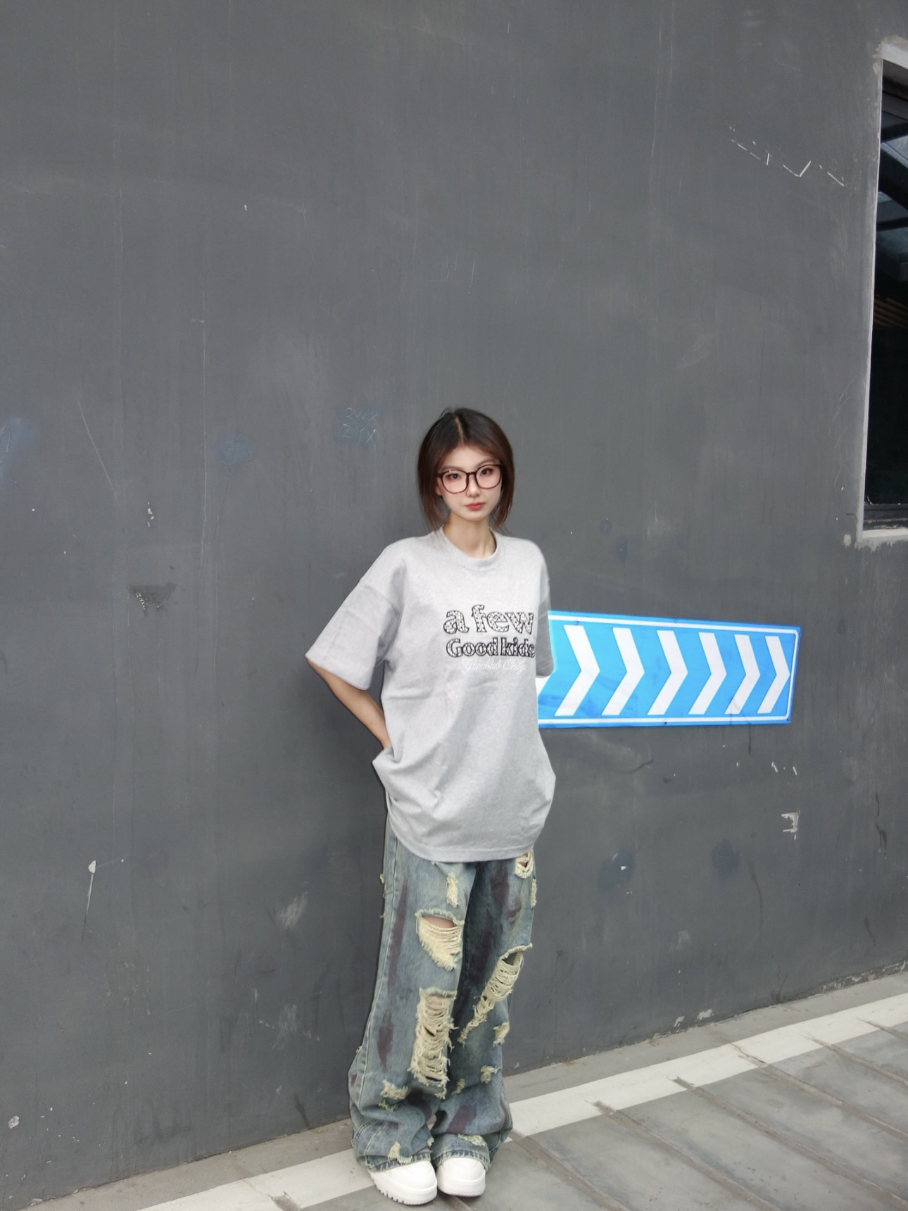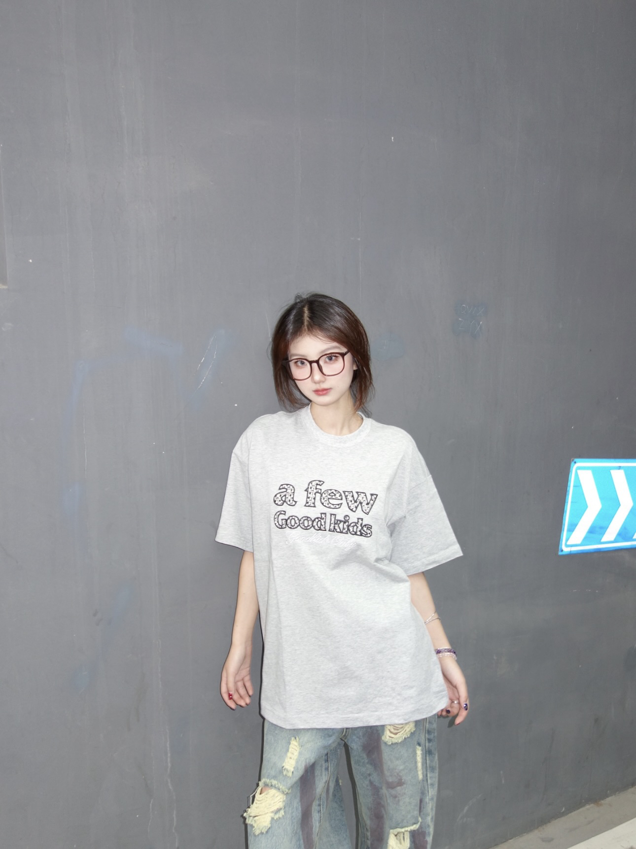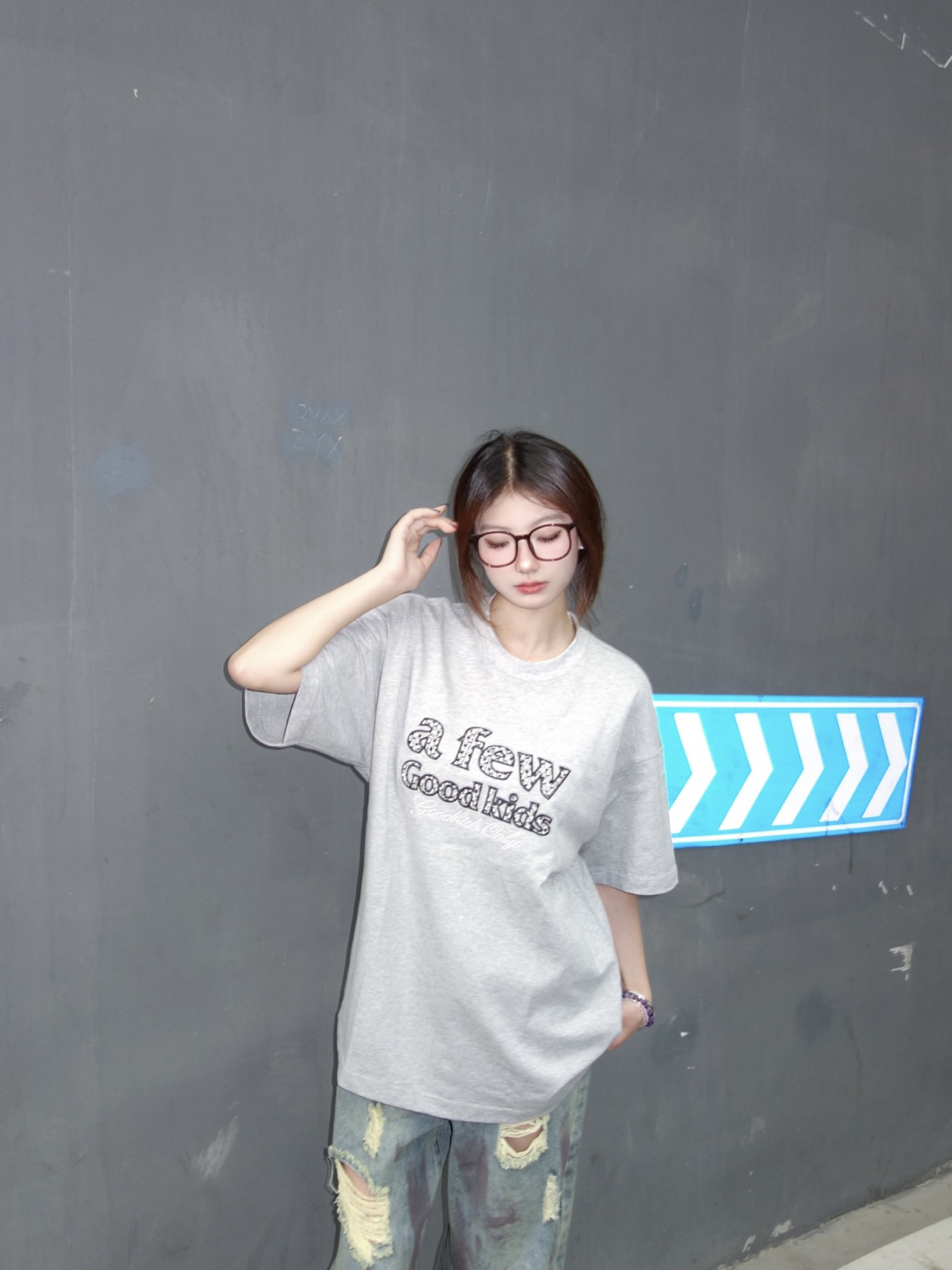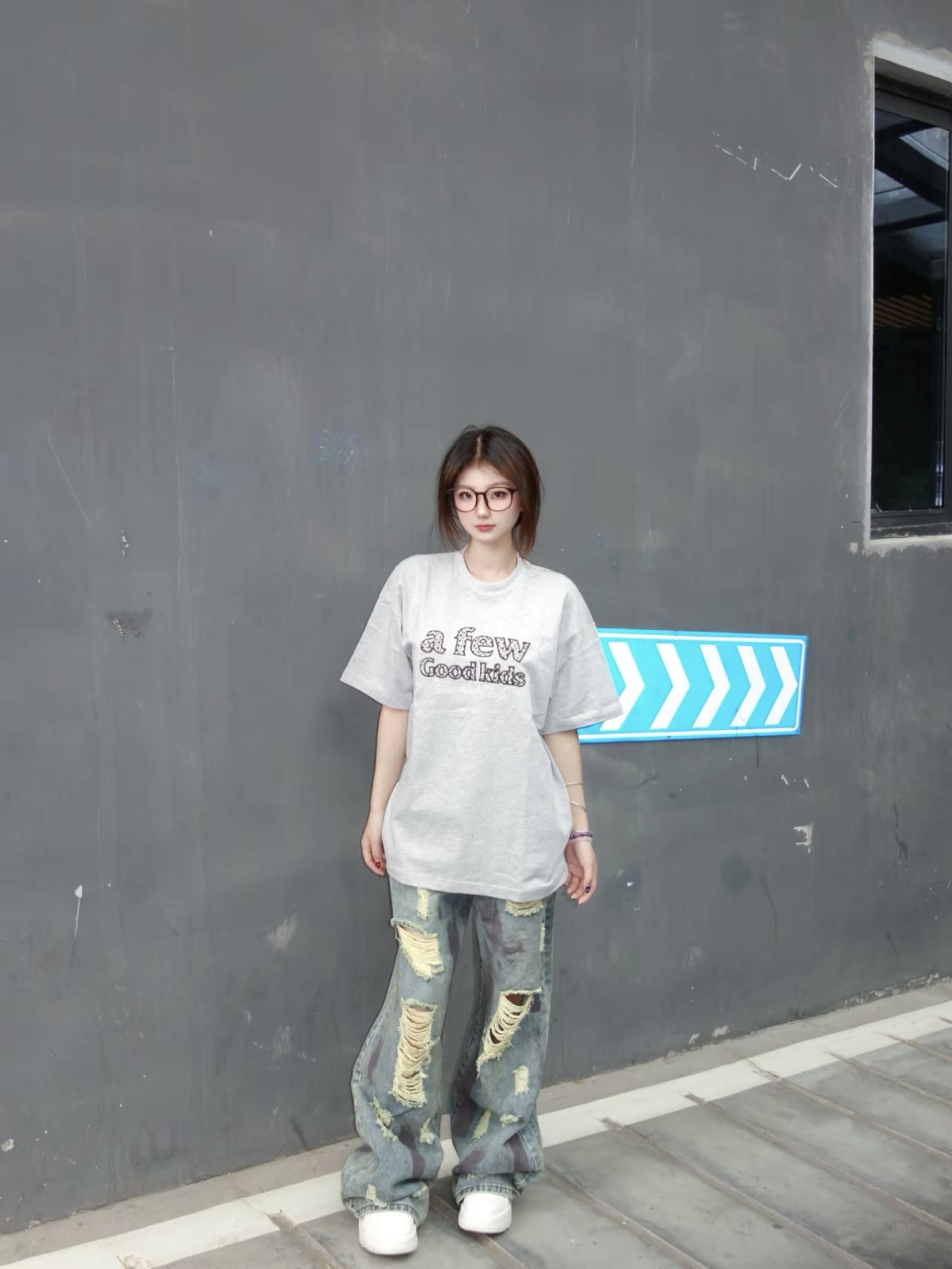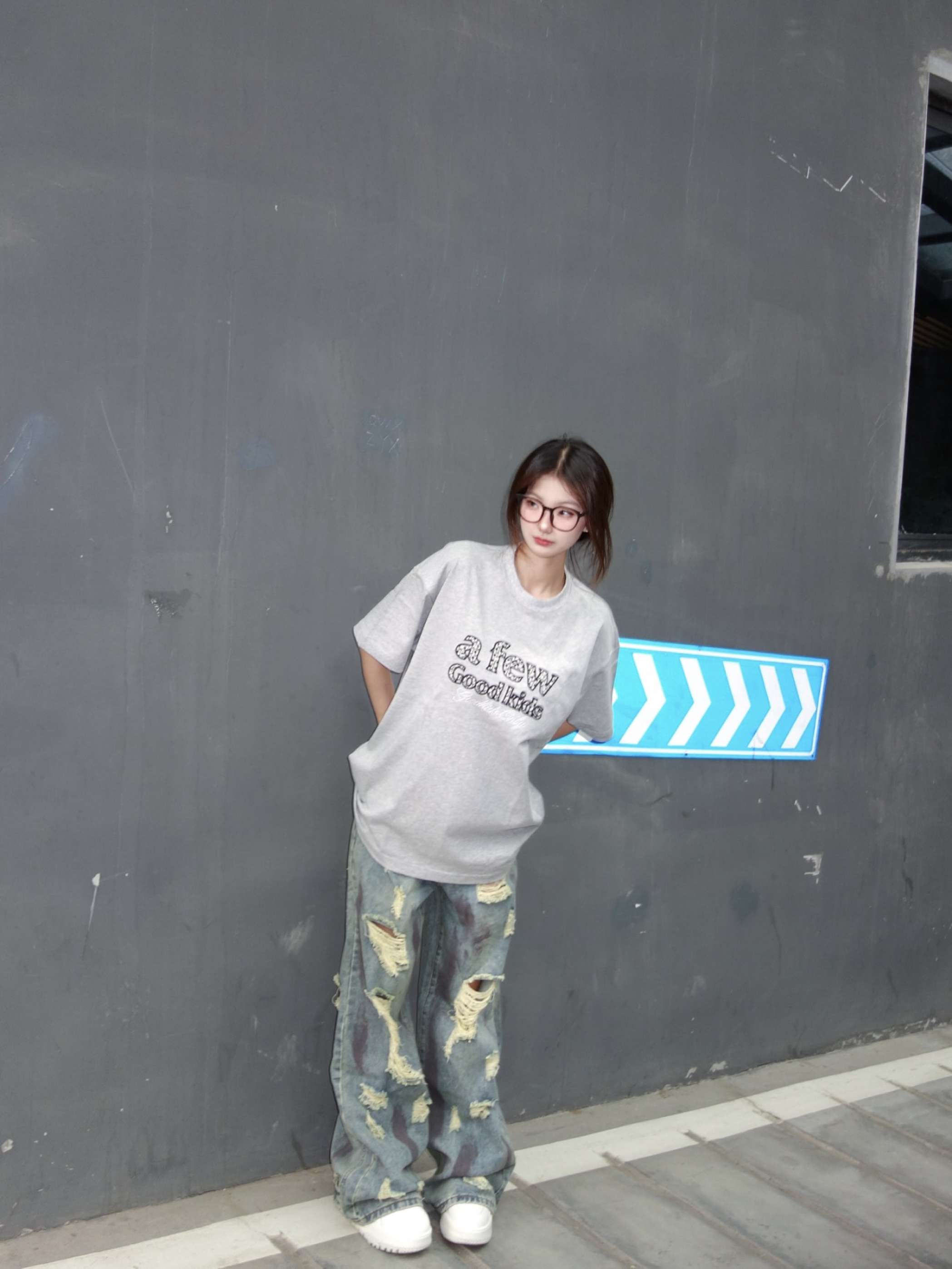 👚:灰色珍珠T 👖:做旧风破洞裤 今日份街头风OOTD 灰色珍珠T搭配做旧破洞牛仔裤 真的是美式复古风满满 161/92 上身M码哦~