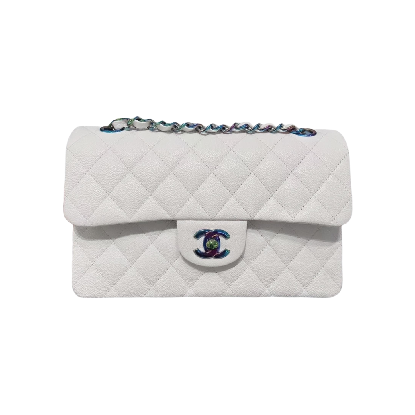 本篇笔记关联了Chanel/香奈儿 Classic Flap CF 24C 小号 菱格纹链条虹彩金属亮面颗粒压花小牛皮单肩包斜挎包 白色 等商品,为用户提供真实的使用体验和购买参考。