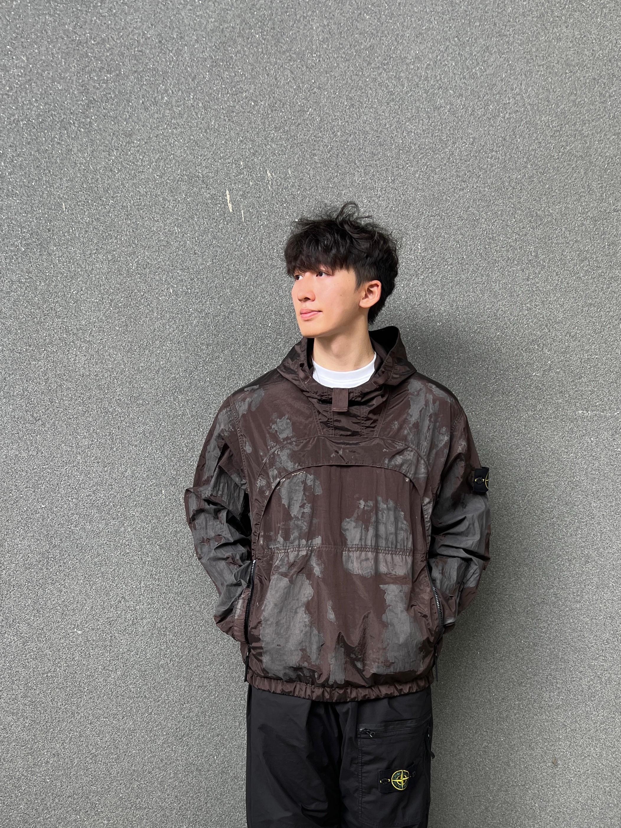 哈喽👋 今日上身铁锈迷彩连帽卫衣 轻薄酷帅有格调 加上金属尼龙的光泽感 非常适合喜欢有设计感的朋友们