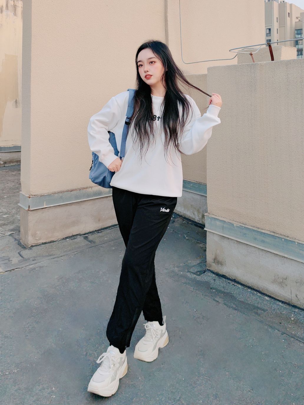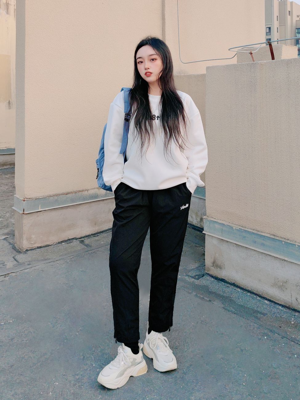 🌞160cm/50kg/M码 ↓ 哈喽,这里是小5的穿搭分享√ 今天带来一套日常搭配, 卫衣➕九分运动裤➕运动鞋➕双肩包 简单干净的黑白配, 日常通勤或者运动都很合适~ 我觉得九分裤对小个子女生还蛮友好的, 这条穿起来就相当显高显瘦呐, 而且裤脚拉链有设计, 还能满足平时运动或者搭配的需要, 实用方面嘎嘎强! 薄款梭织裤料子轻薄透气, 跑步打球OK,上体育课的好搭子~ ↓ 裤子:维动 卫衣:88r...