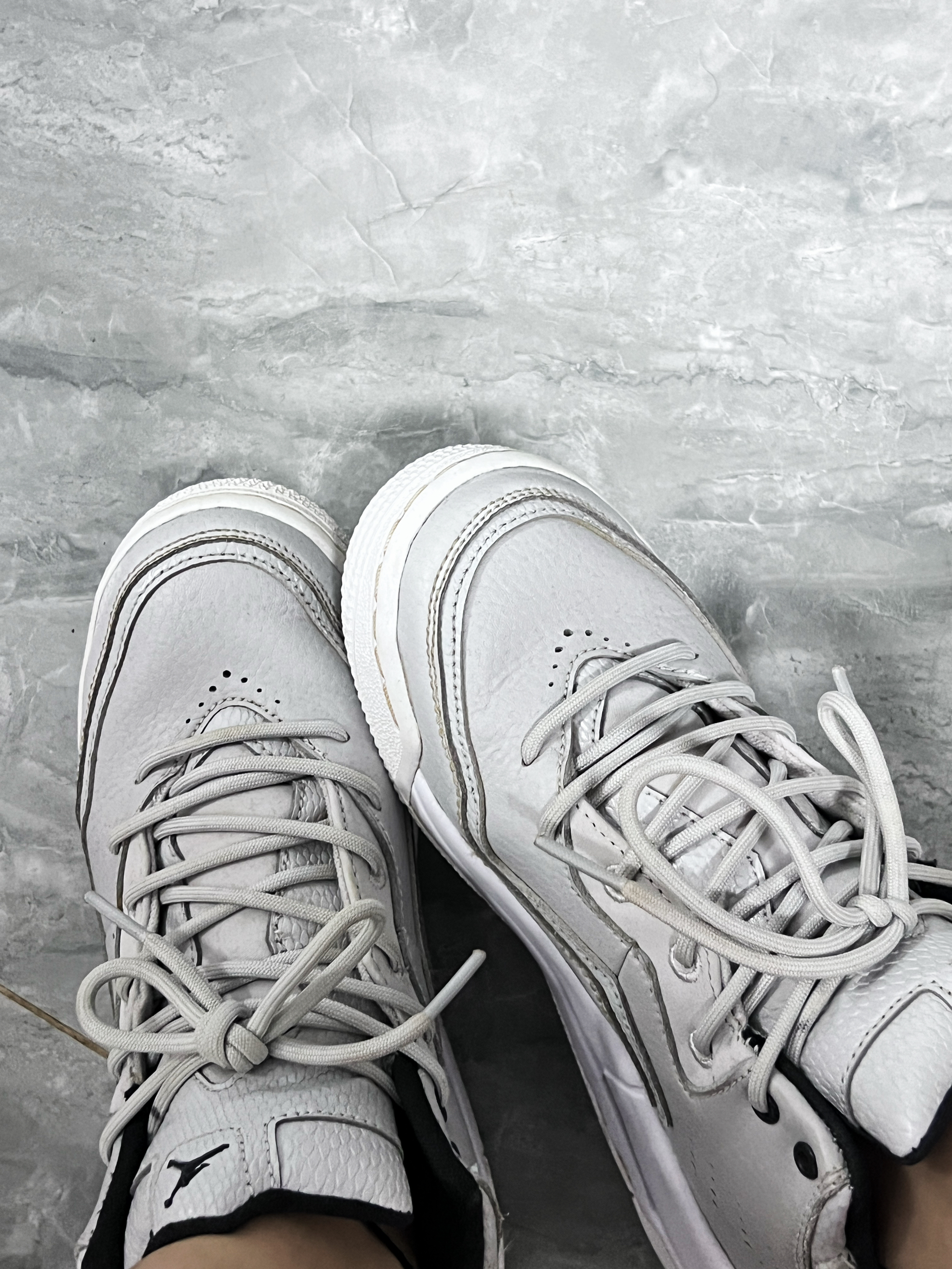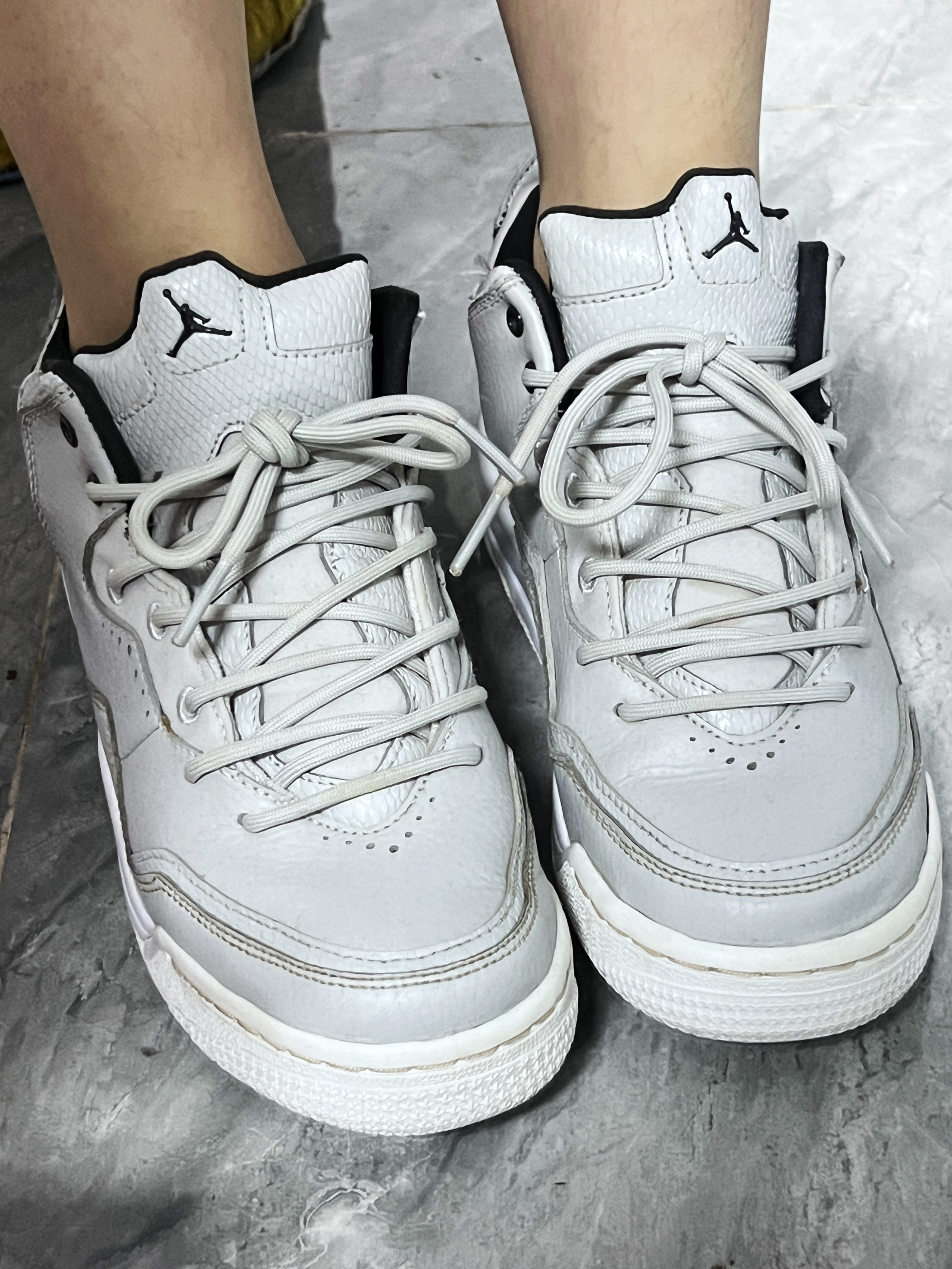 这是一双Jordan品牌的浅灰色休闲鞋,经典飞人标志加持,简约又具潮流感。