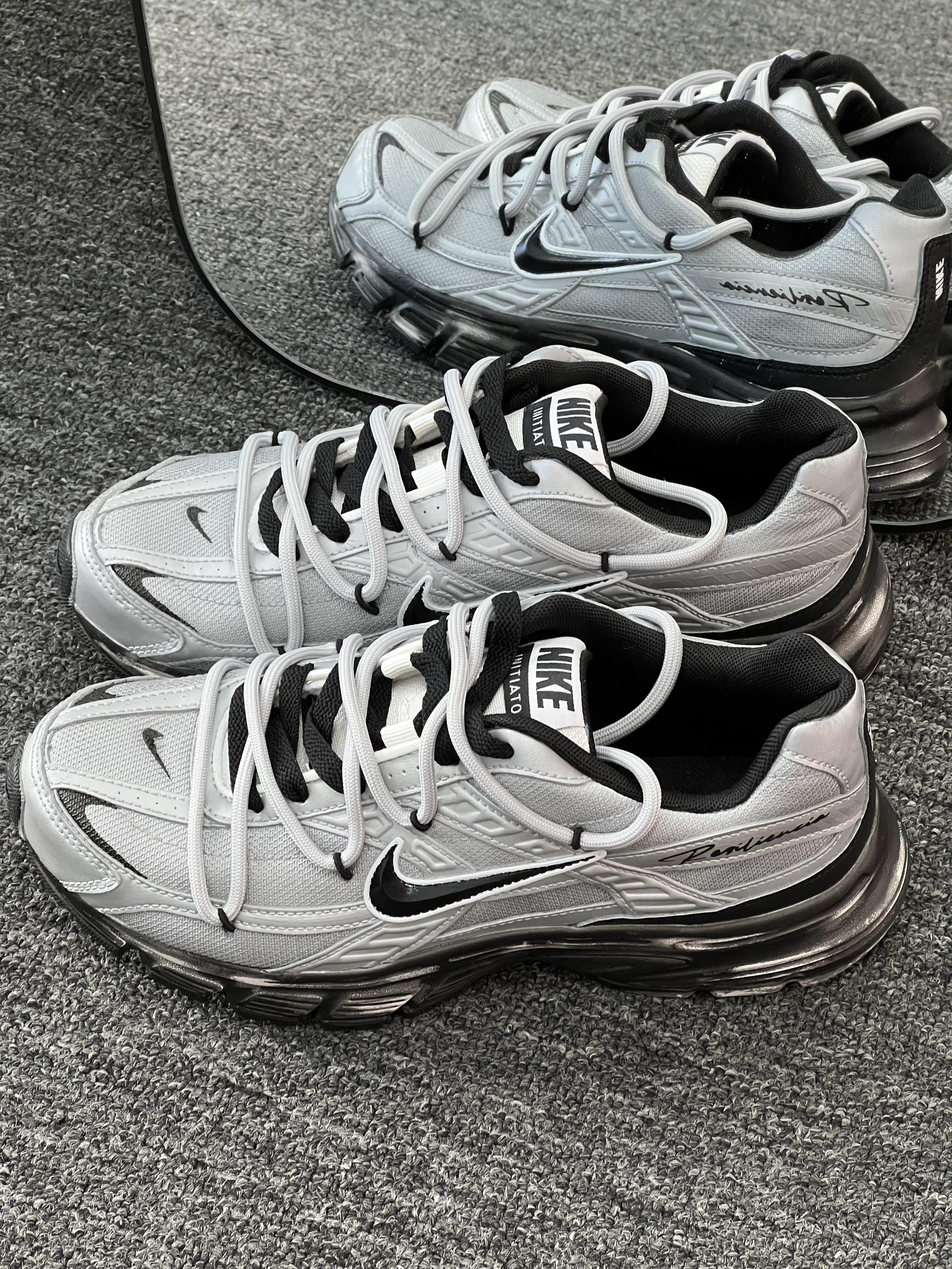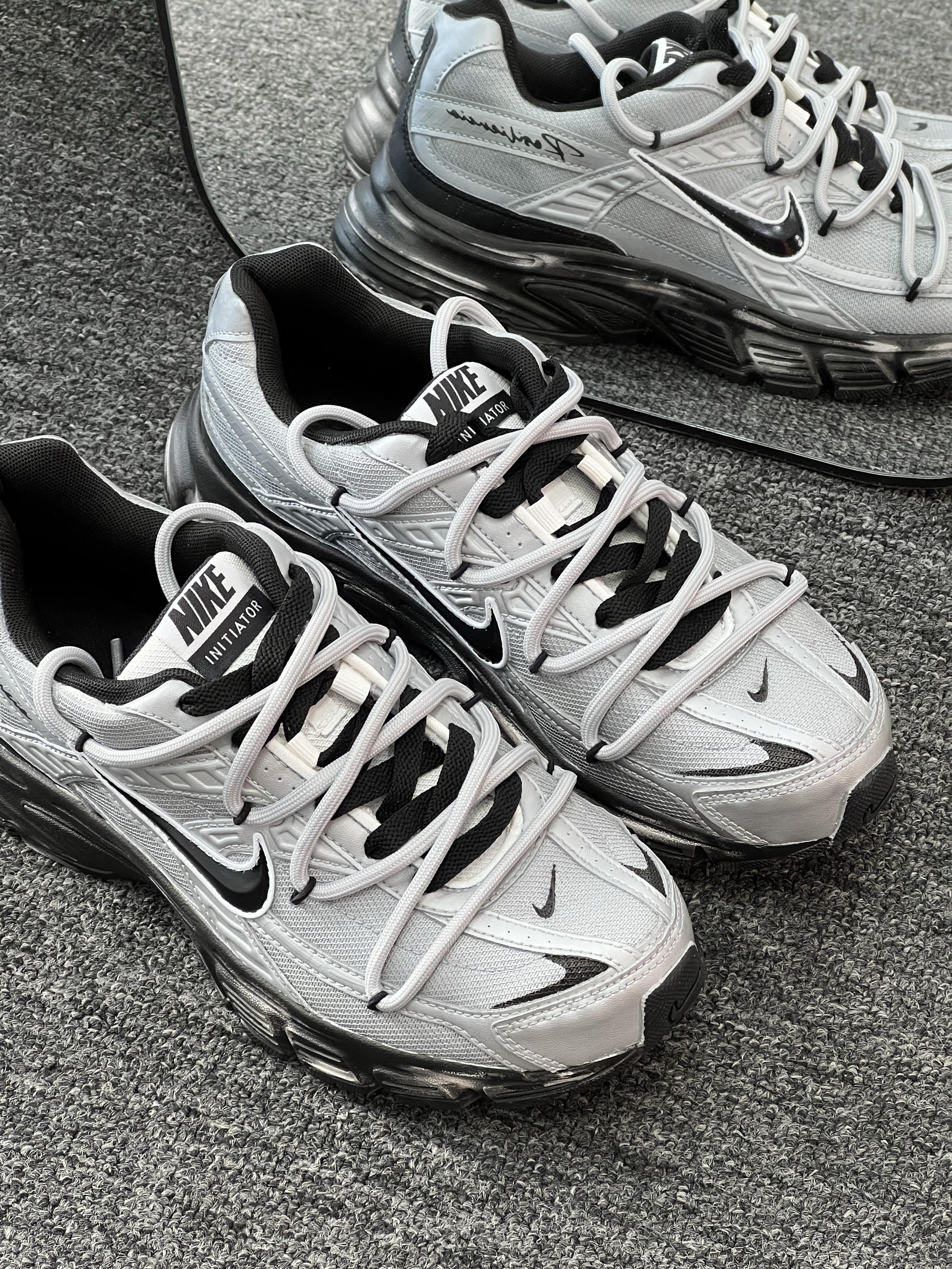 耐克INITIATOR系列跑鞋,经典复古设计,银黑配色很有潮流感,网面材质透气,厚底兼具缓震和增高效果,日常出街、运动都适配,配牛仔裤👖打造混搭潮流感,都很出彩~🤗