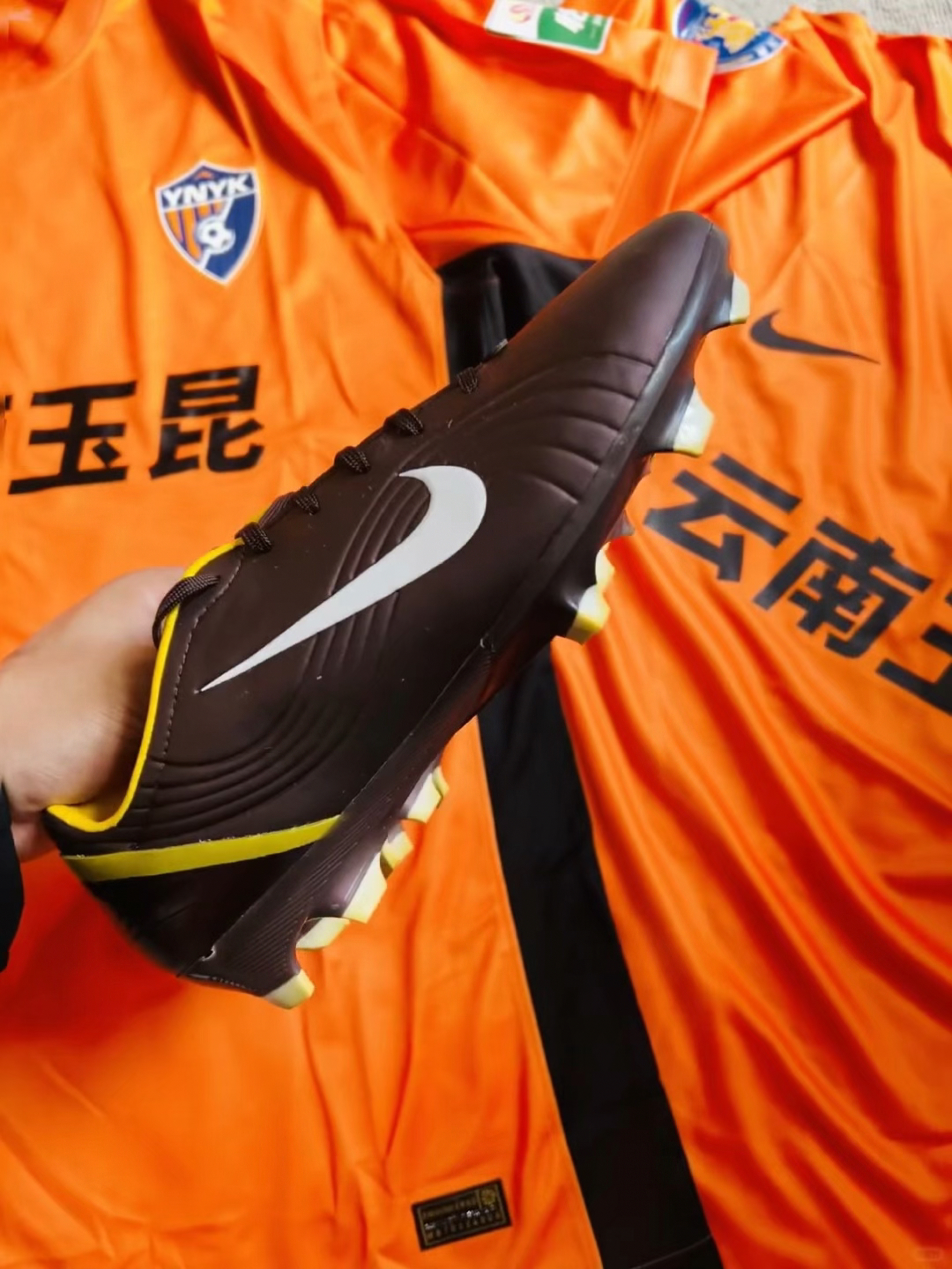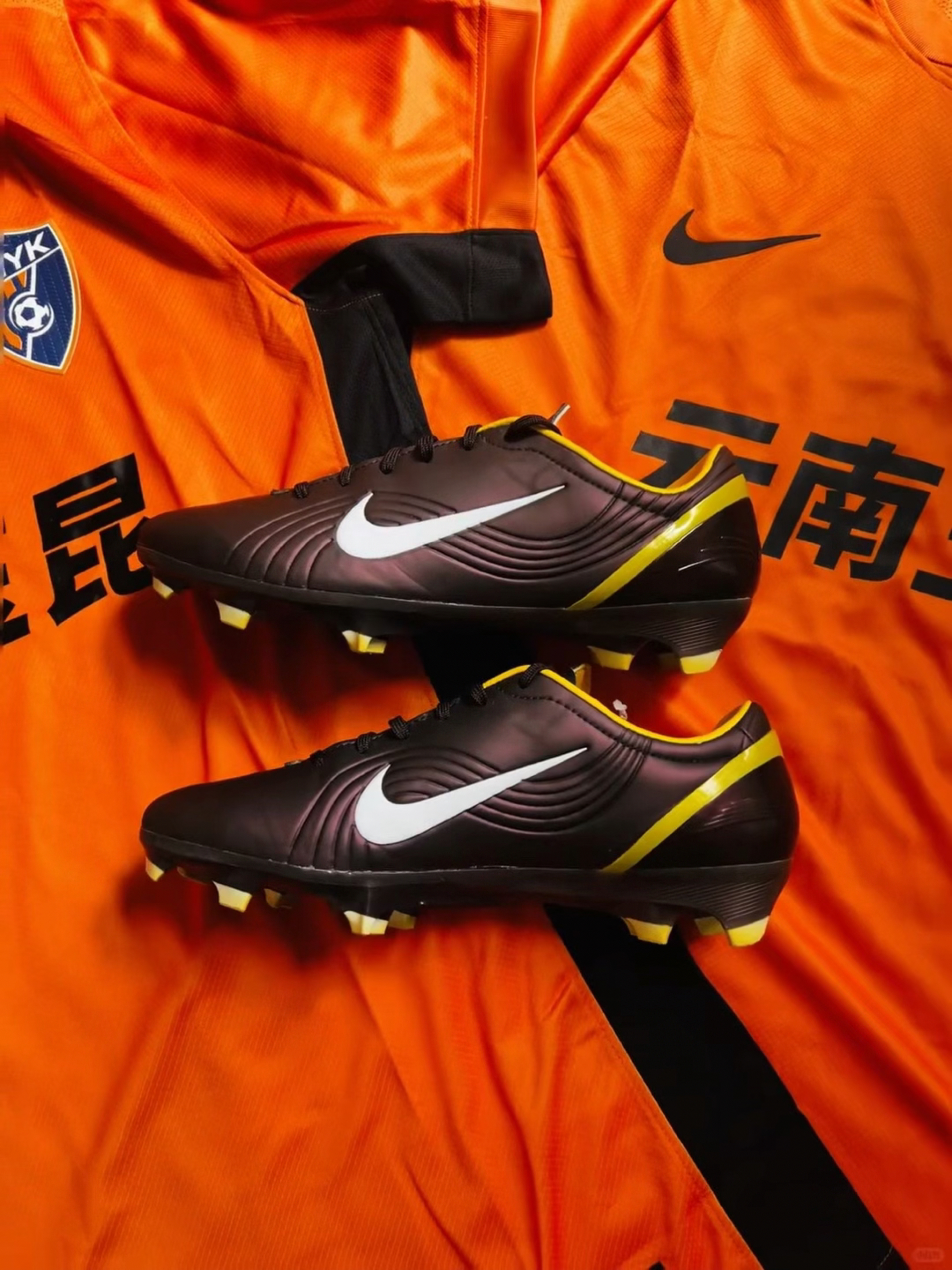 👟耐克发布刺客低帮Vapor 10 FG 🇵🇹磨砂碳色表皮,金黄色内衬,CR7限量logo 复刻版仅保留了经典款的外观设计,科技拉满 👑2002年,里斯本竞技17岁的C罗曾穿着同款配色完成职业生涯首秀