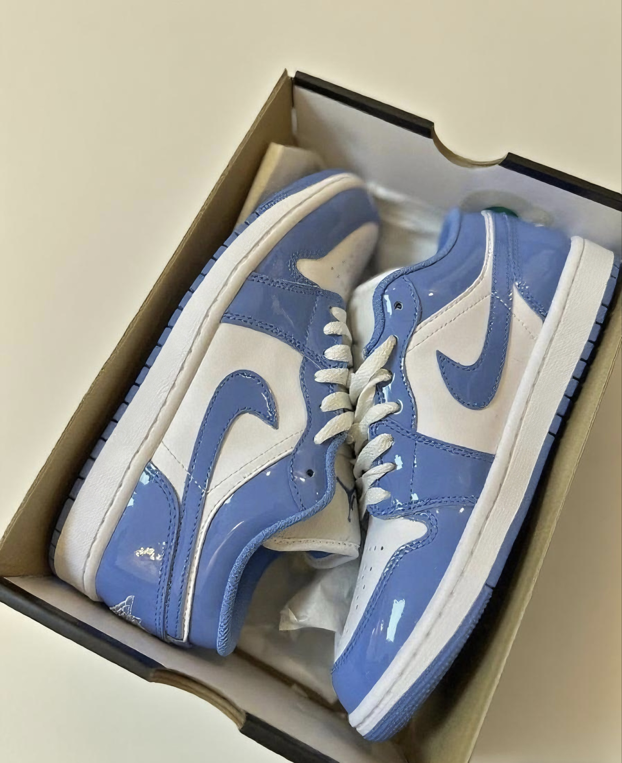 1.这双AJ1低帮9到手后,我天天穿!蓝白配色看着特干净,漆皮亮闪闪的,每次低头瞅见,心情都亮堂。走路是真得劲,鞋底软乎乎又有支撑,逛一天街脚也不闹脾气。搭配没难度,牛仔裤、运动裤往上一套就出门,省老多事儿#好物分享AJ1北卡蓝#开学季好物推荐#谁还没有一双AJ #我是AJ党 #分享好物aj1北卡蓝