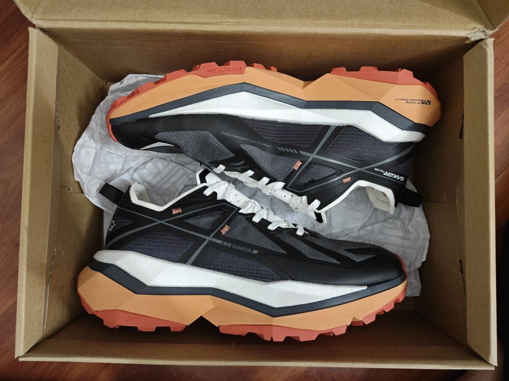 全新的A字logo标志着全新的设计风格,中底外底形似岩石切割形状突显户外硬核感,橙黑配色更是将时尚感和户外专业感糅合起来,安踏大有可为!
