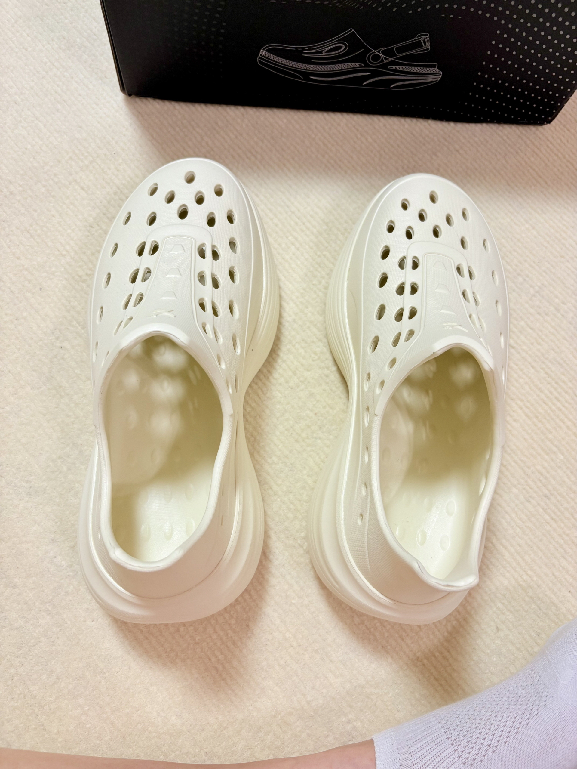 天热的时候最想穿的就是洞洞鞋,方便穿脱,一脚蹬上就能出门😄 鞋底加厚,还能增高4厘米,搭配长裤或者裙子都行,既方便又好看😍 鞋子材质是EVA的,还是挺安全的,鞋子有点偏大,不过大点穿着舒服些🥹