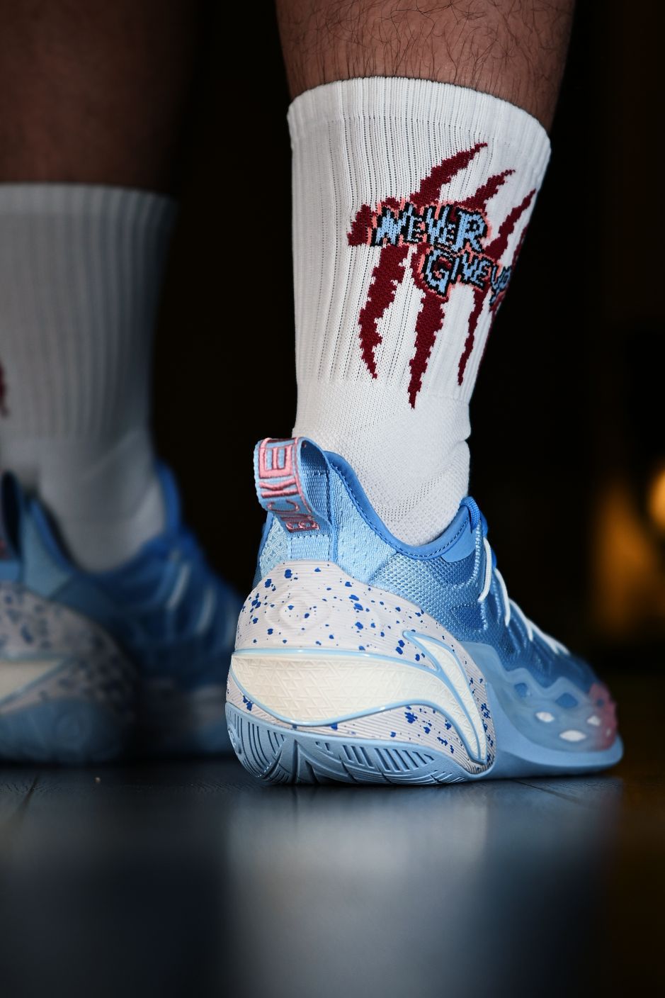 该说不说兄弟们,这个抓痕是真的非常帅 上脚辨识度非常高 入手了黑红配色直接组鸳鸯了 在关节处还有专门的加厚保护处理,在上方也有相应的透气孔,所以一场球下来也不会很闷脚,这么一双又帅又能打的球袜还是很值的😋