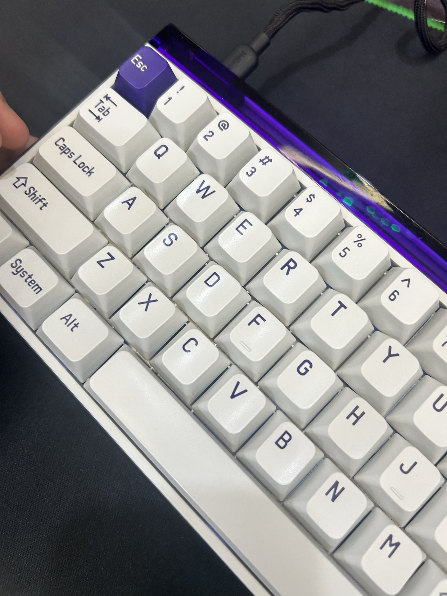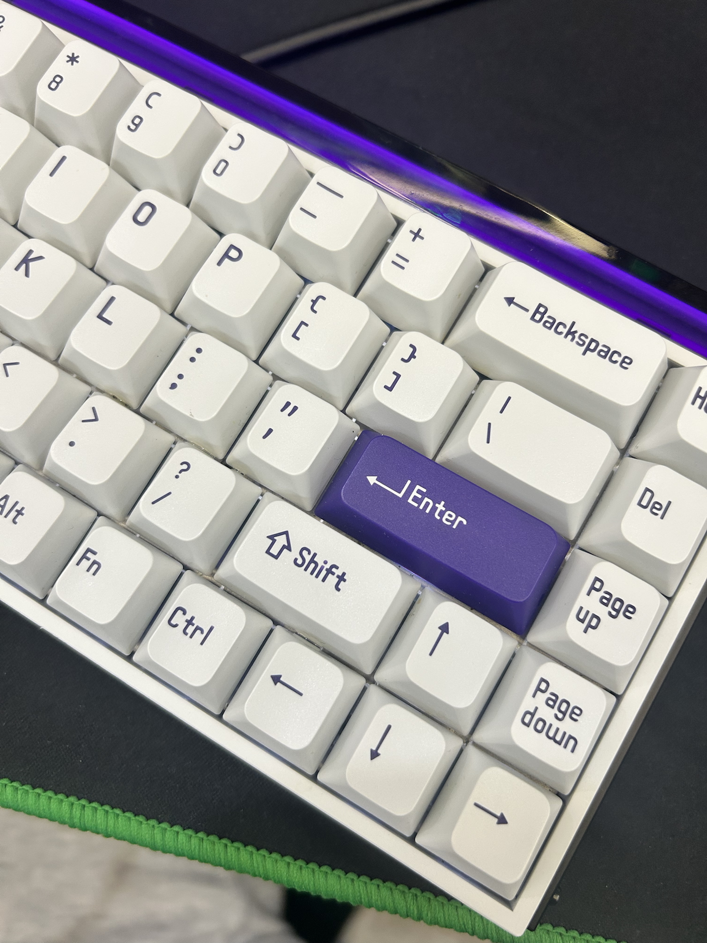 家人们谁懂啊,挖到一款超好看的键盘! 白紫配色太戳我啦,实物比图片还美😍。 68键小尺寸省空间,磁轴用着超丝滑~玩游戏那叫一个顺手。 虽然是有线的,会稍微有点束缚,但整体表现我很满意👏。 喜欢好看又实用键盘的宝子冲!