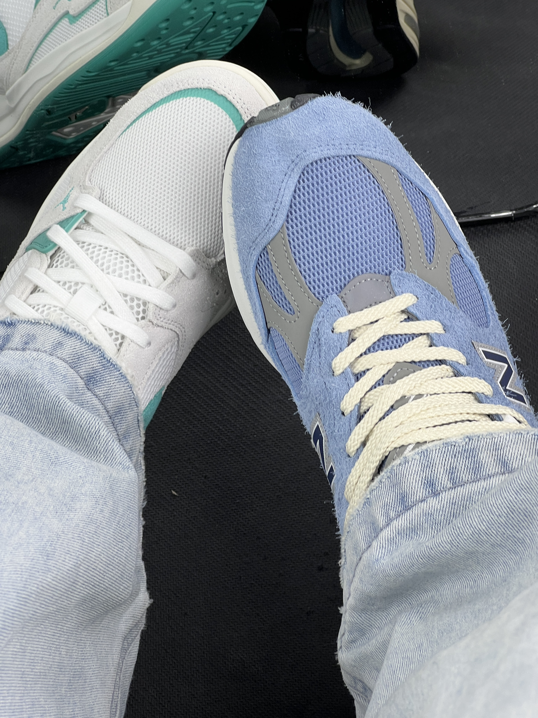 最近入了这两双鞋,说说真实感受。 左边这双白绿配色Jordan的鞋,颜值很清新,日常搭配休闲装挺合适。但穿了几次发现,鞋头的网面有点薄,稍微碰到硬物就担心会磨损,而且刚穿时脚踝处有点卡,得穿厚袜子才舒服些😌。 右边这双蓝灰调NB的鞋,上脚包裹感还可以,走路时脚感比较稳。不过它的鞋帮处的翻毛皮材质,特别容易沾灰,每次穿完都得仔细打理,不然看起来就灰蒙蒙的,这点还挺让人头疼的😅。 总之,两双鞋都有各...