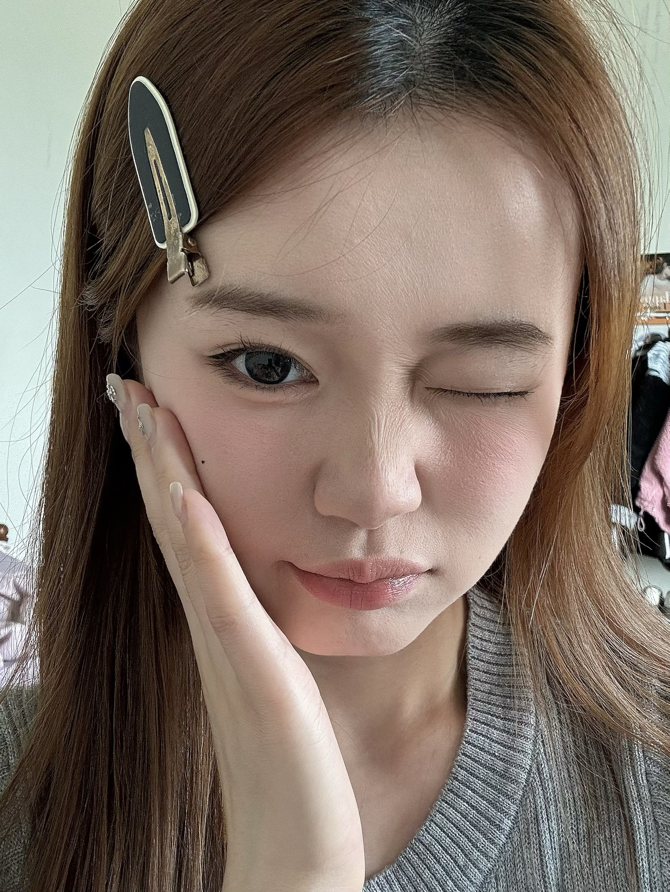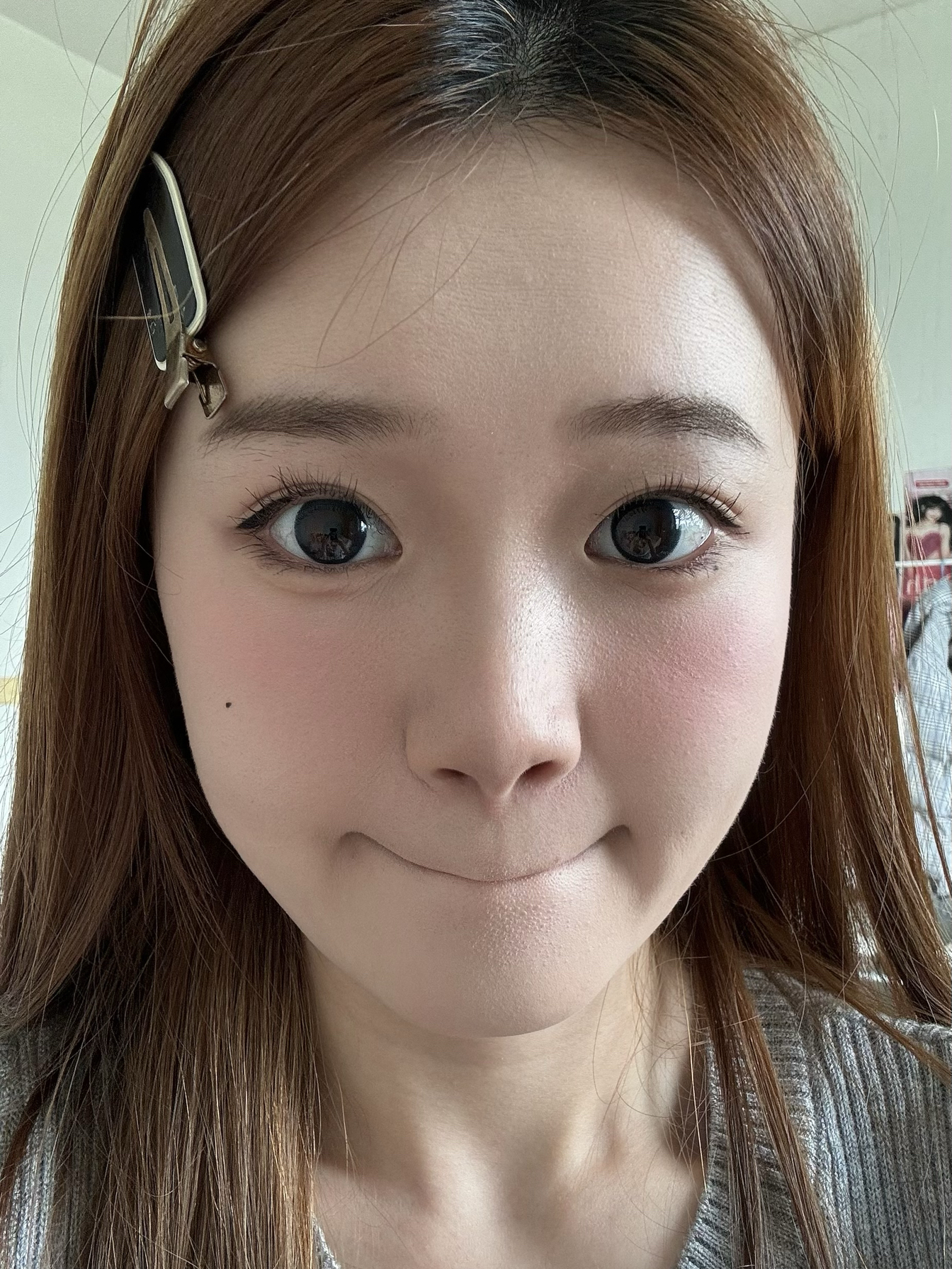 彩妆要显色底妆就要无暇一点,我这个油皮被朋友推荐的这款粉底液惊艳啦! 这款粉底液粉质很细,延展性也不错,拍开脸上像自带高光一样,我脸上的瑕疵也是被遮的几乎看不见了! 凑近怼脸看眼下鼻翼都没有卡粉 ,完全是妈生好皮。 出门吃了个火锅在脸上的妆效还是很服帖的,有点越夜越美丽的感觉,脸上出了油以后,妆面就是奶油肌的感觉~