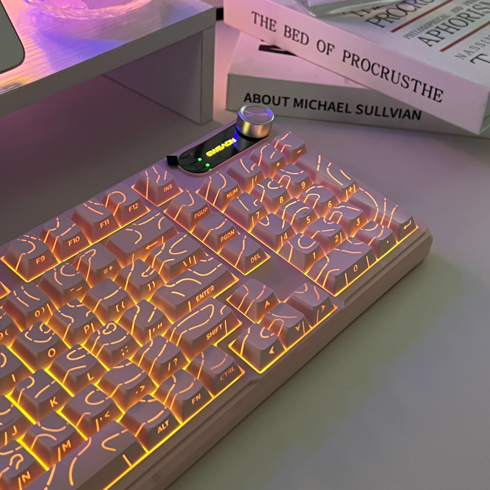 给大家分享我最近入的键盘👏,外观超绝,尤其是那独特的线条设计,还有RGB背光,氛围感拉满✨。机械手感日常办公够用,但相比专业机械键盘还是有差距。价格还算合理,很适合送给上班族朋友当礼物🎁。