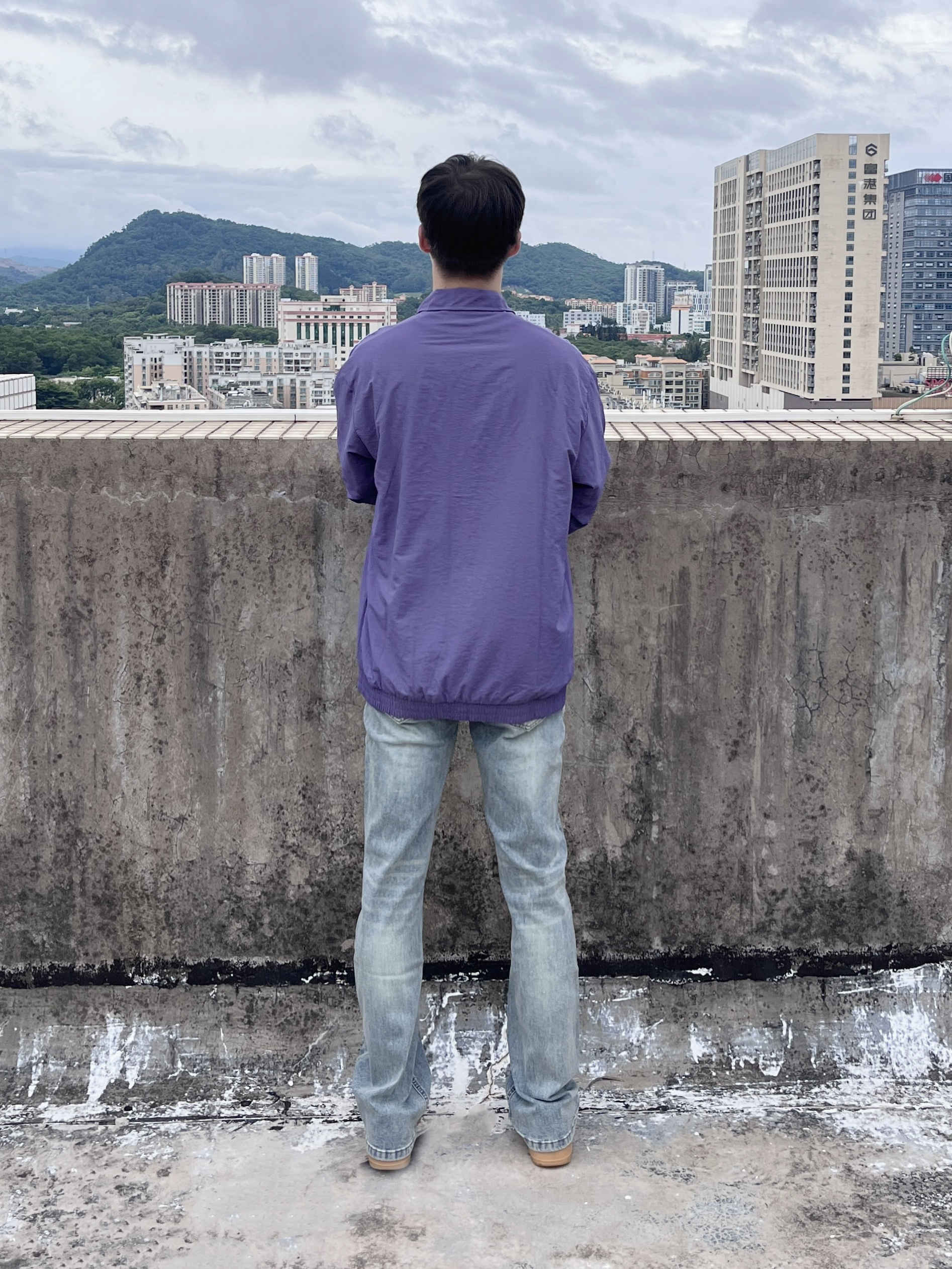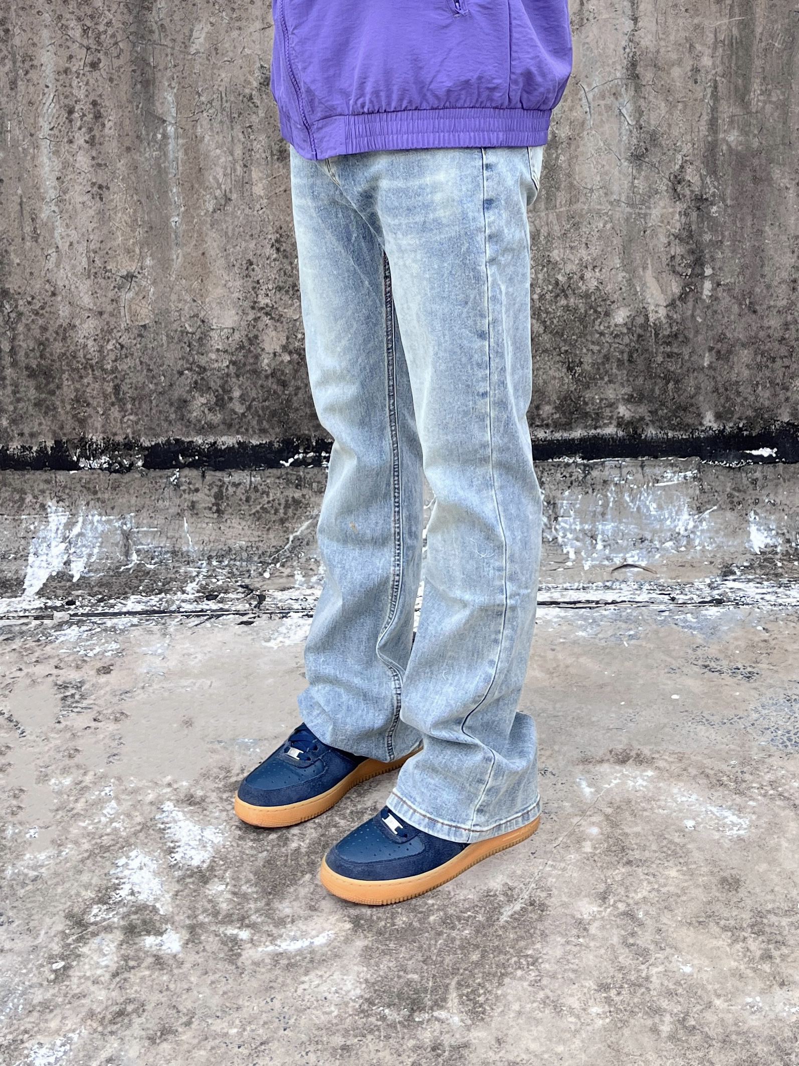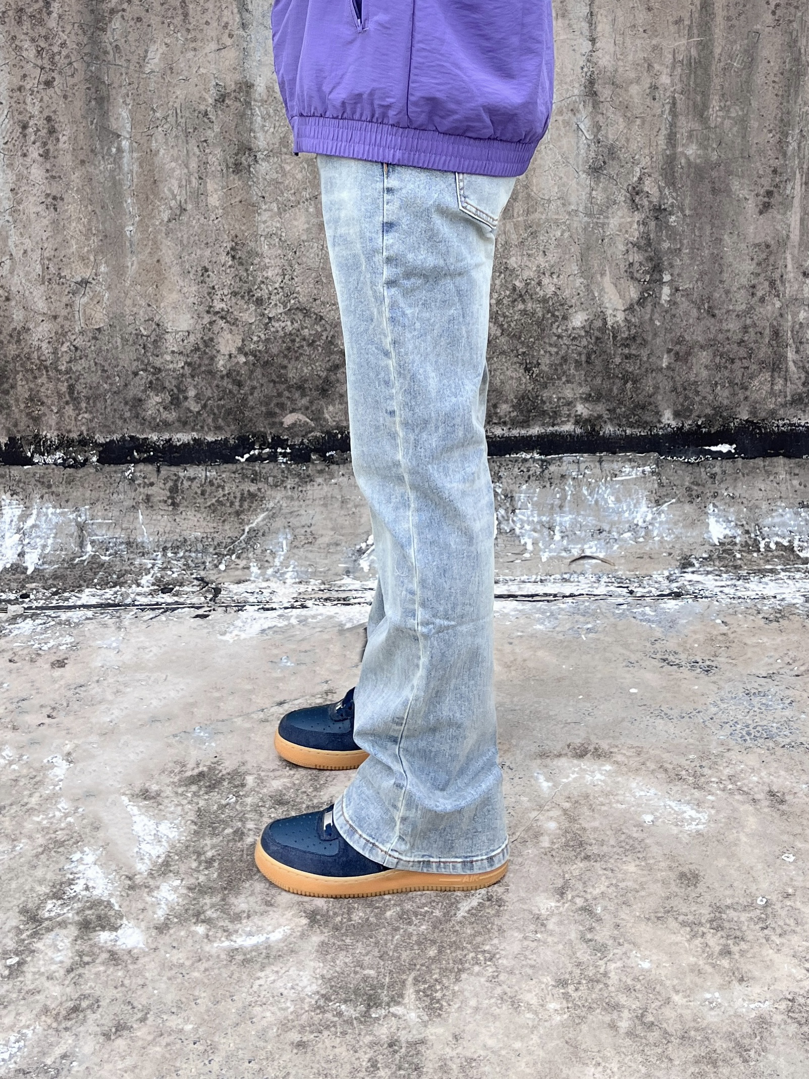 今日份穿搭分享look👀 衣服是紫色阿迪条纹外套👔 搭配上 COOLALPACA 的水洗蓝牛仔裤👖 颜值简约时尚 微喇版型宽松显腿细🔥 一套搭配下来 早秋出街百搭又好看