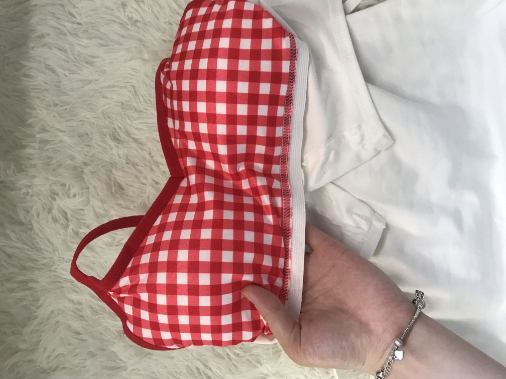 摸了一下,质感软fufu的,还不错🌟 胸垫也非常有质量💕 用手试了一下白色部分,不透肉🤩