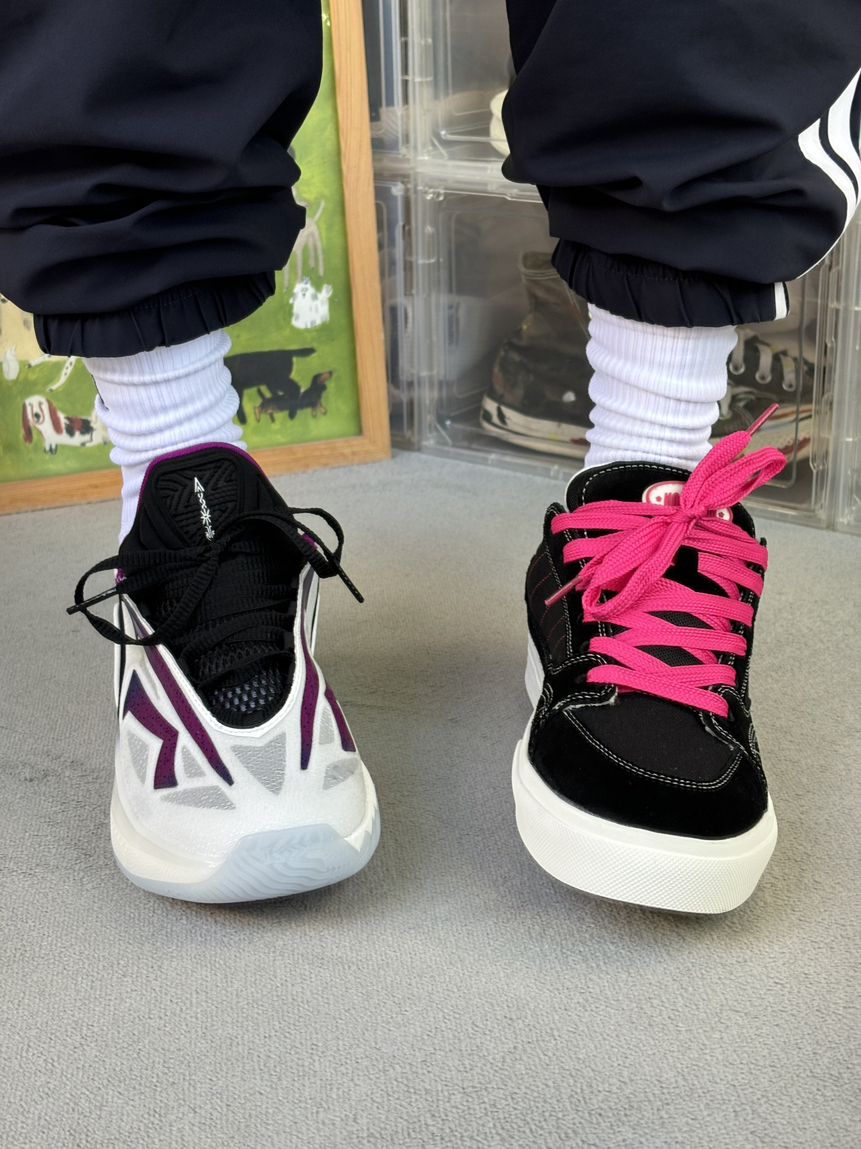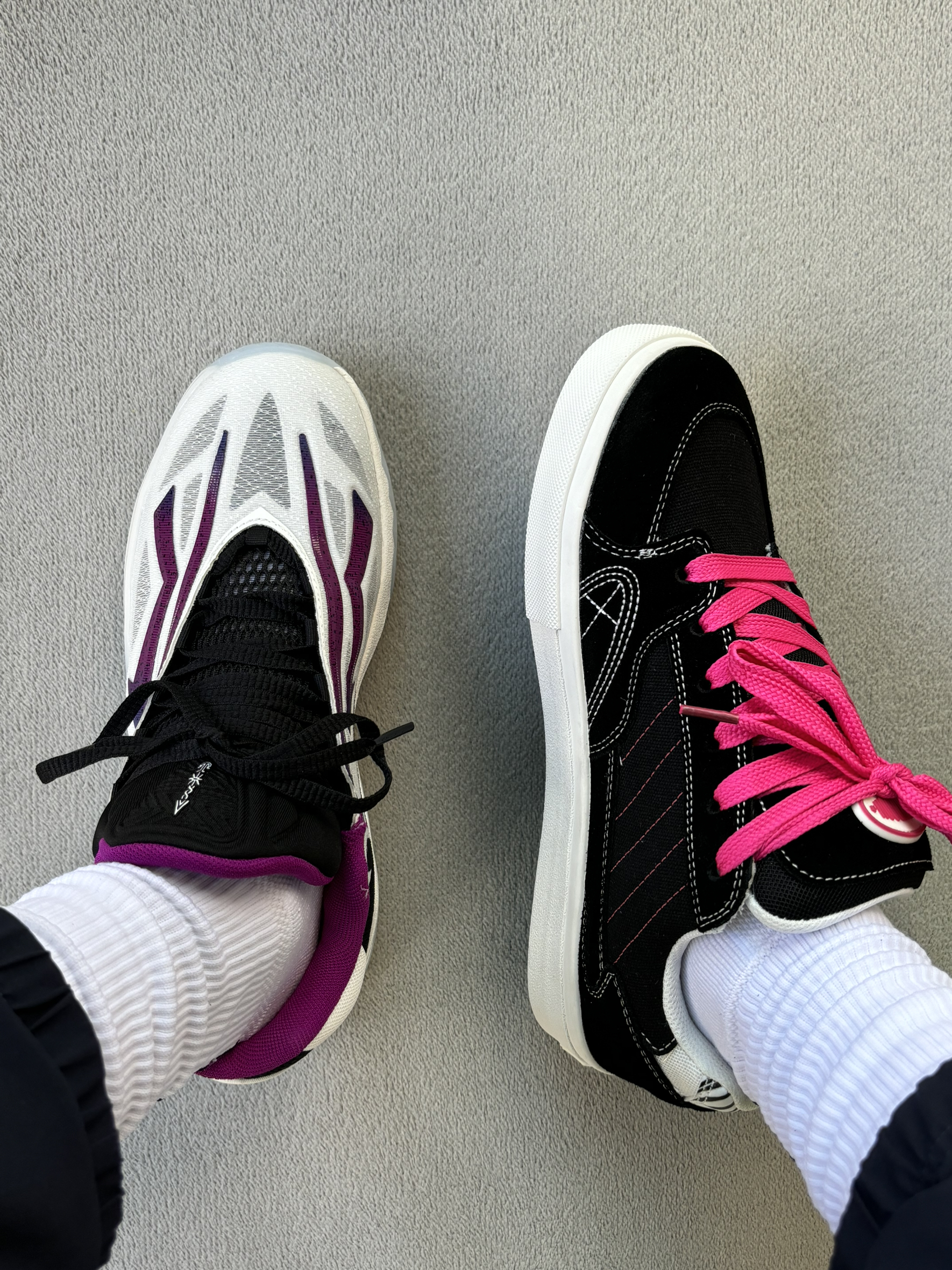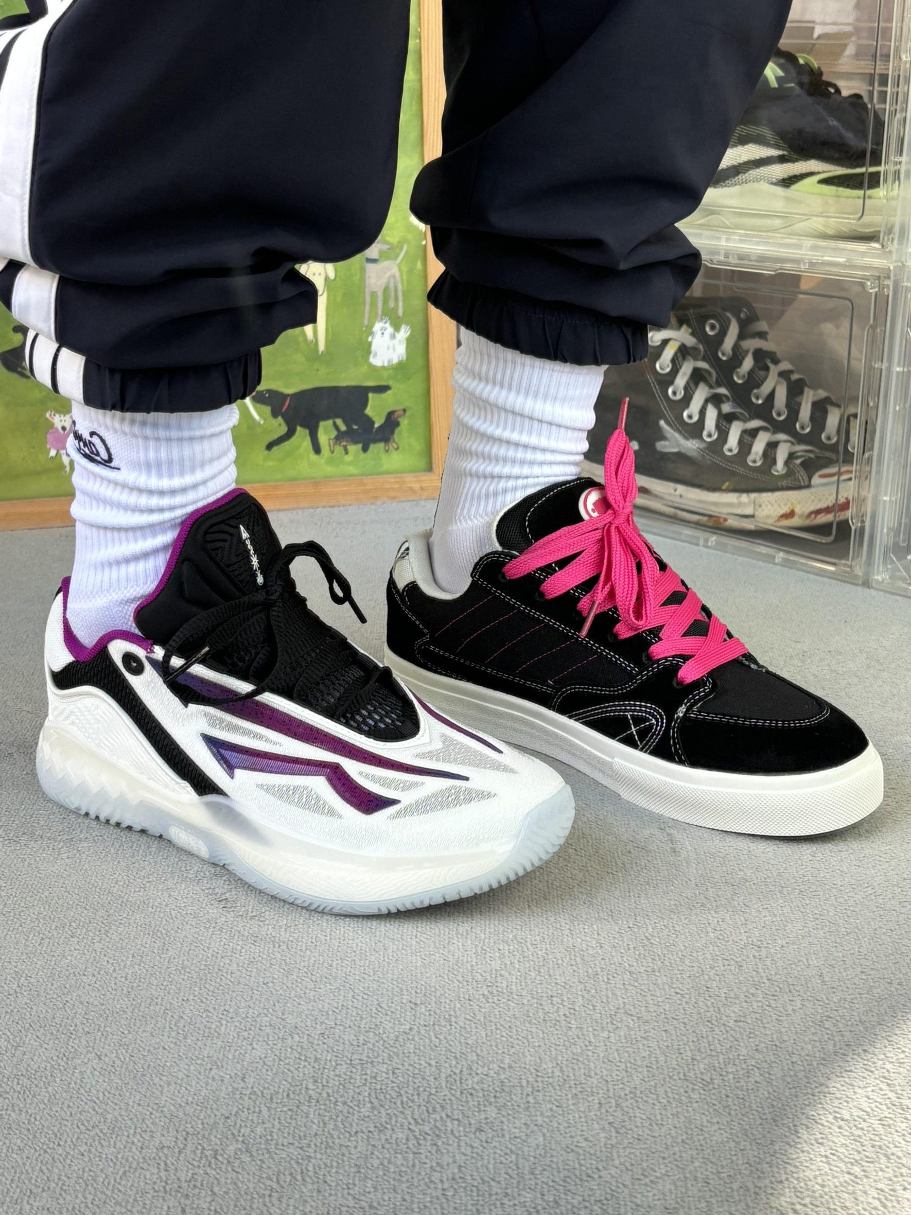 今天上脚的两双冷门小众小众 球鞋是欧文的一双全身都是logo的篮球鞋 鞋子性能千人千脚自己试 颜值方面兄弟们自己欣赏 板鞋呢是我最近才发现的一个小众品牌 也是款式比较多颜值比较高的