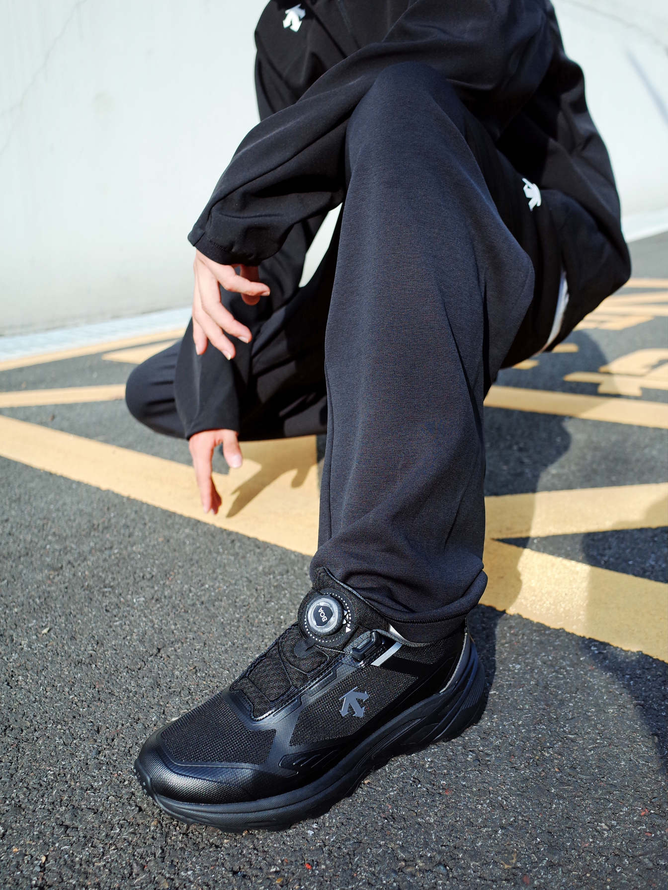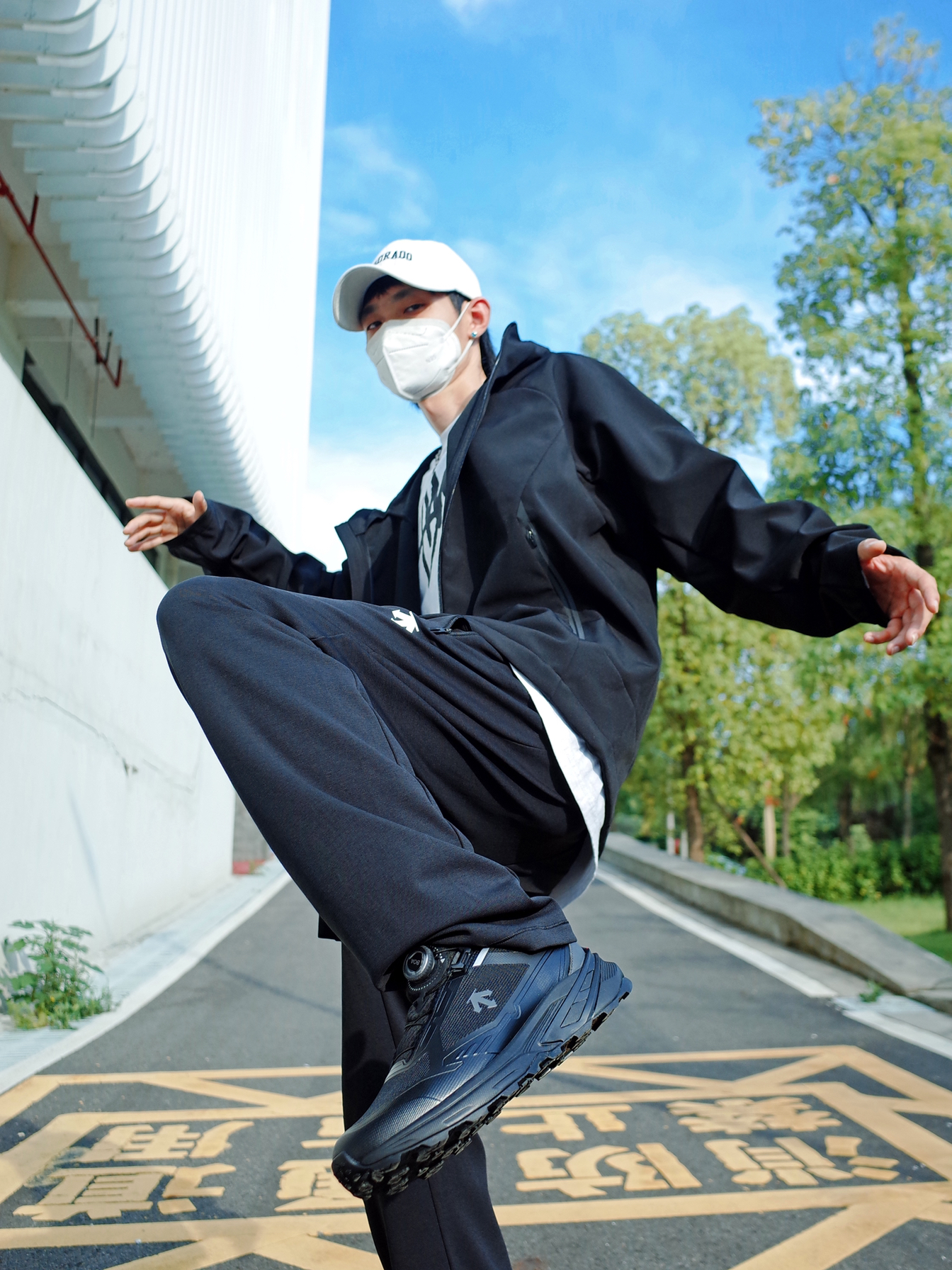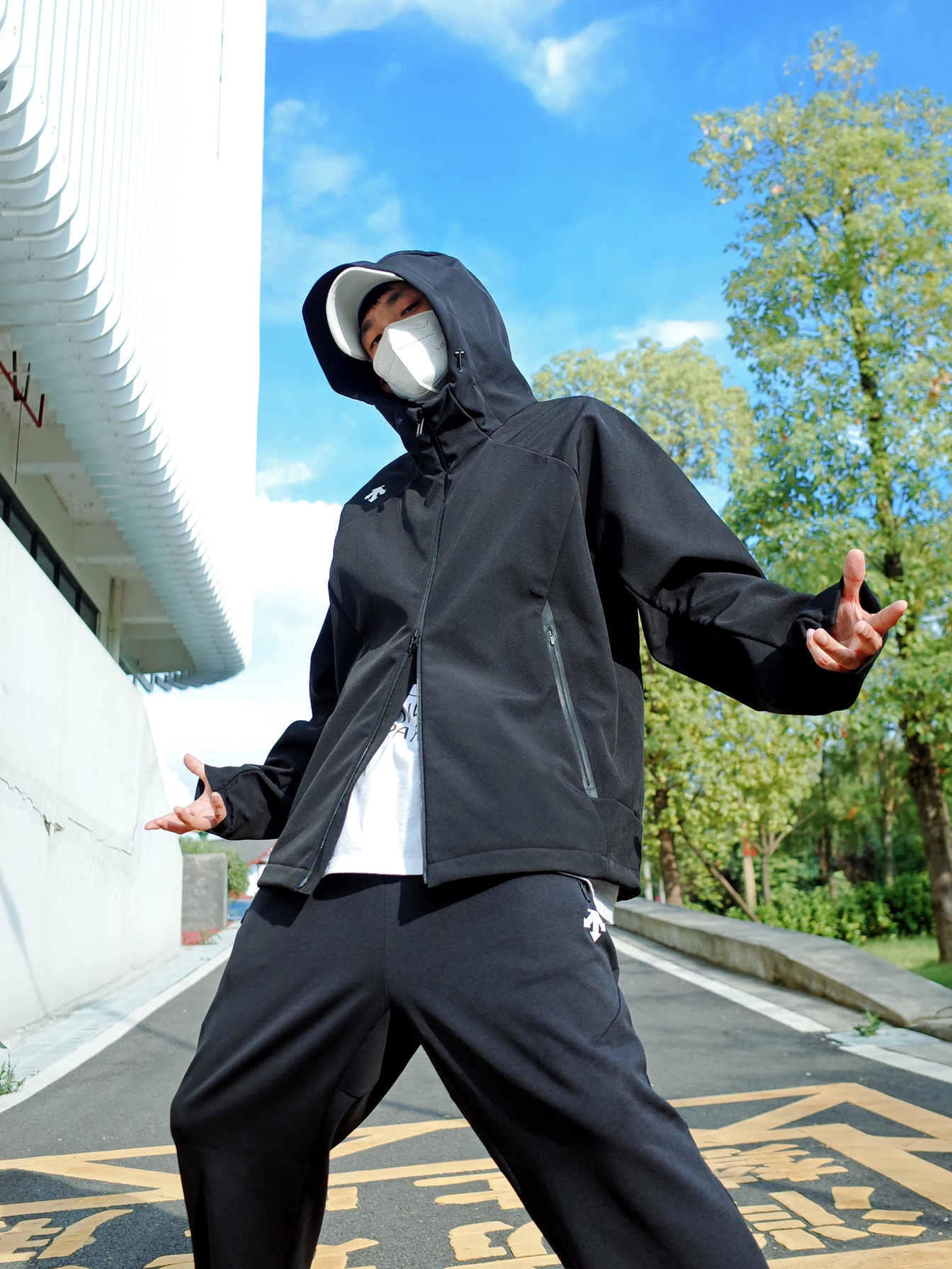 户外运动我还是偏向低调的配色, 一身黑给人的感觉就是酷酷的高级。 上身 DESCENTE迪桑特 的黑色夹克, 连帽设计挺贴心的,防风又保暖。 搭配一条运动长裤,松弛有度。 脚上一双🥷黑武士跑步鞋 GTX的防水设计,citywalk或徒步爬山都能拿捏✨