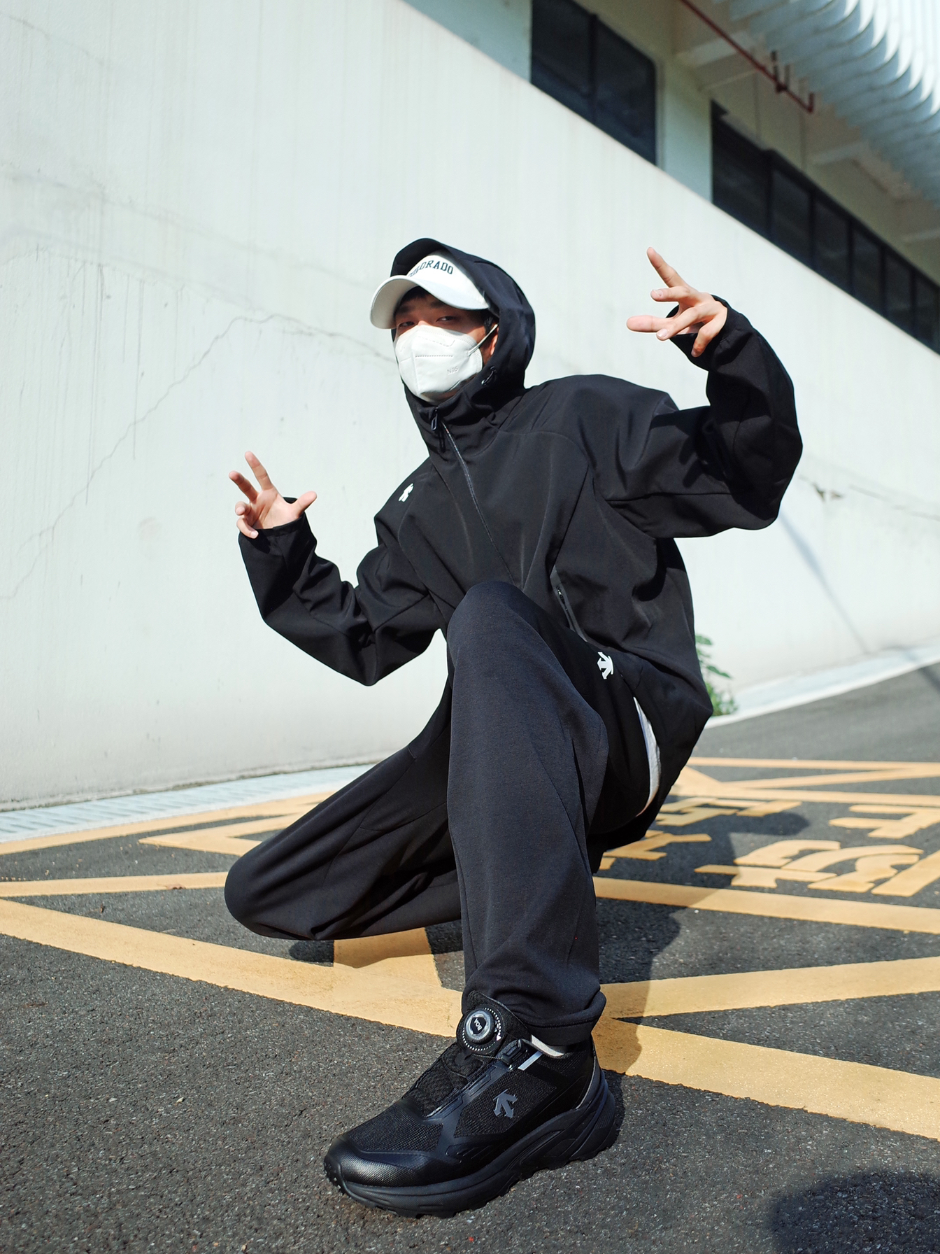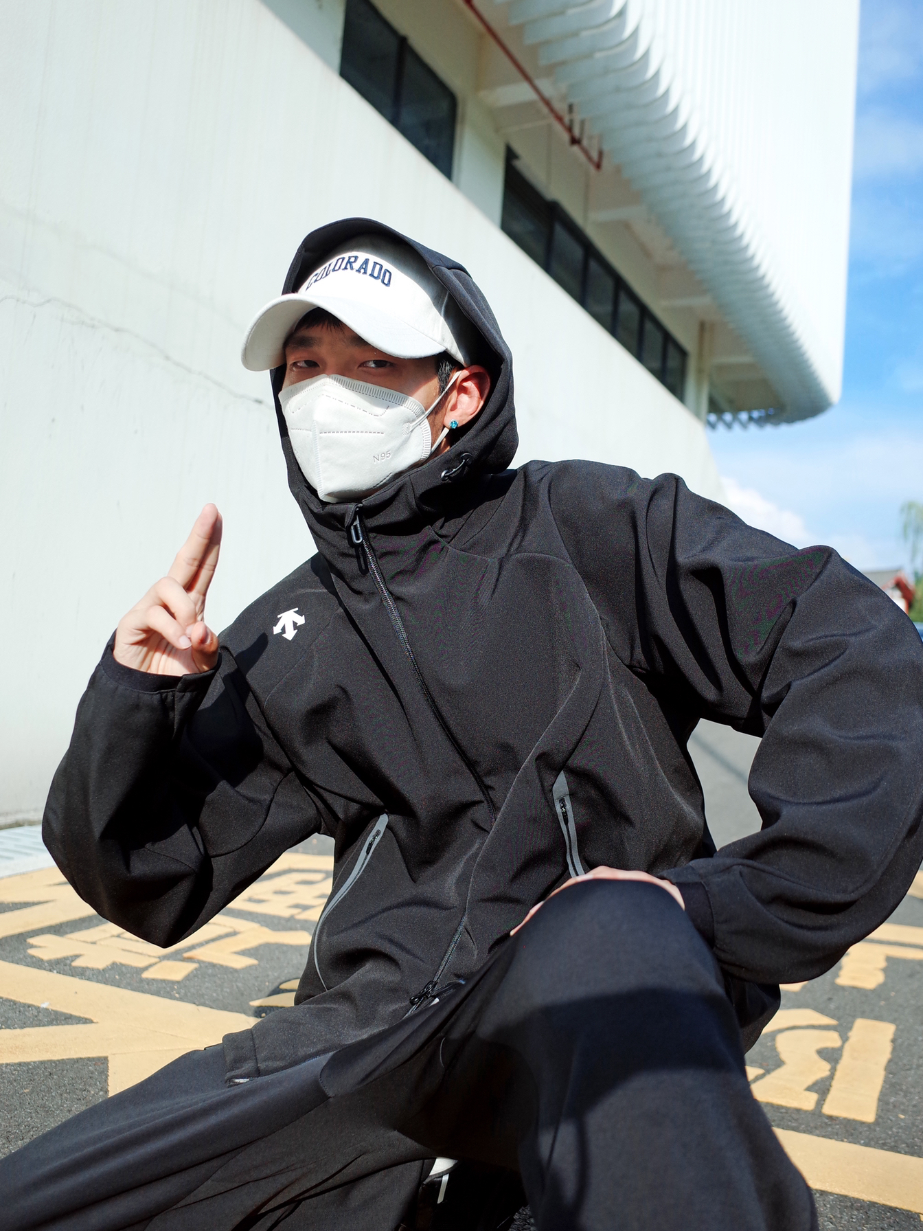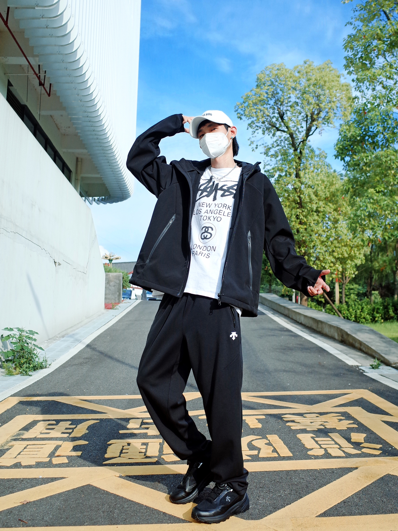 户外运动我还是偏向低调的配色, 一身黑给人的感觉就是酷酷的高级。 上身 DESCENTE迪桑特 的黑色夹克, 连帽设计挺贴心的,防风又保暖。 搭配一条运动长裤,松弛有度。 脚上一双🥷黑武士跑步鞋 GTX的防水设计,citywalk或徒步爬山都能拿捏✨