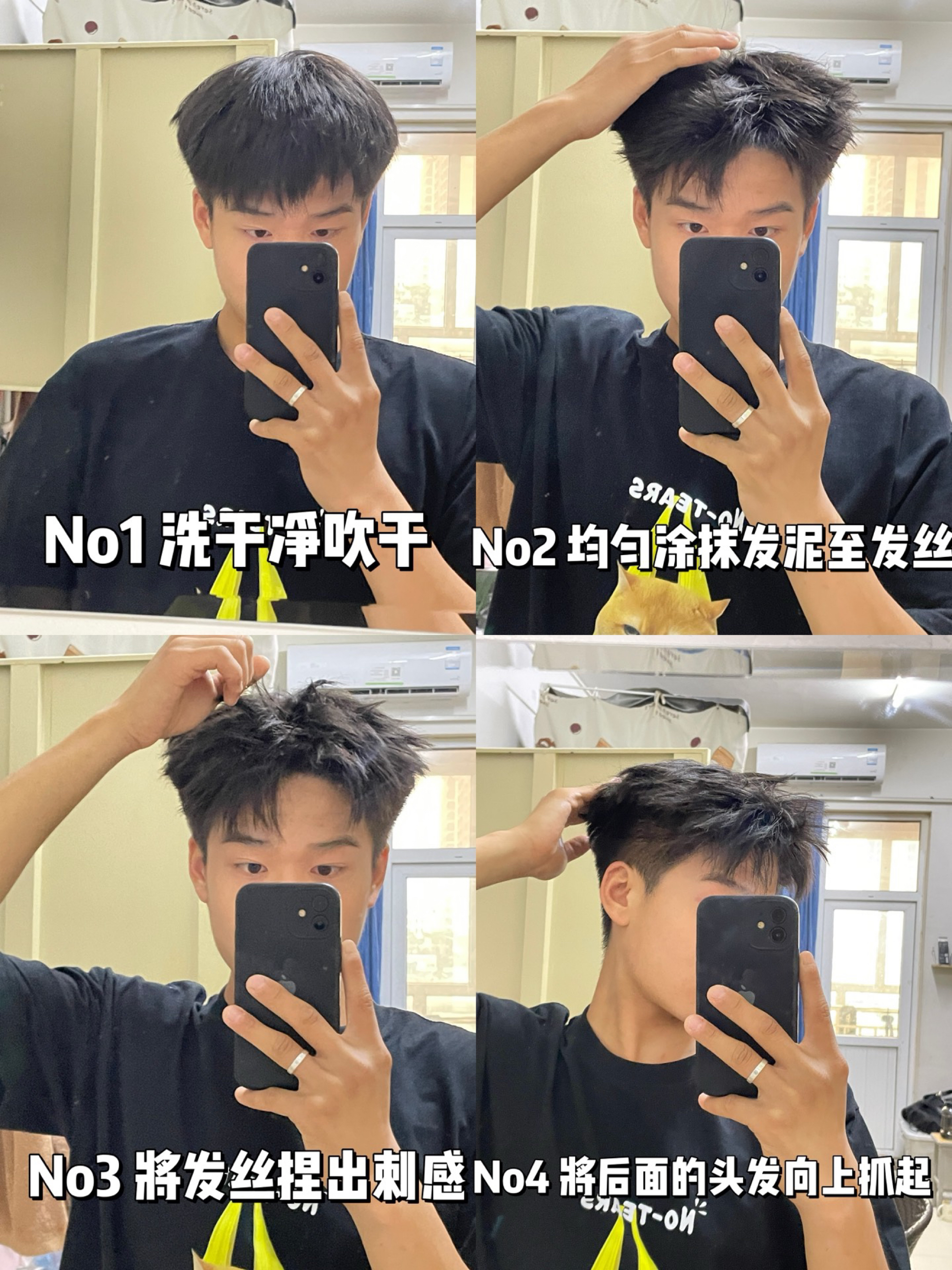 兄弟们!谁还不会抓美式前刺!今天一分钟教会你 教程👇 ✅No1、首先将我们的头发洗一下吹干 发根吹蓬松 ✅No2、取一黄豆大小的发泥 掌心揉搓均匀 将每根发丝均匀涂抹上发泥 ✅No3、沿着纹理 将我们上侧的头发抓出刺感 ✅No4、取少量发泥在掌心揉搓均匀后 将后脑勺的头发向上抓起 一款超帅的美式前刺就这样打理好啦 要想打理好一款好的发型 那一款好的造型产品必不可少 我打理头发一直在用 选...