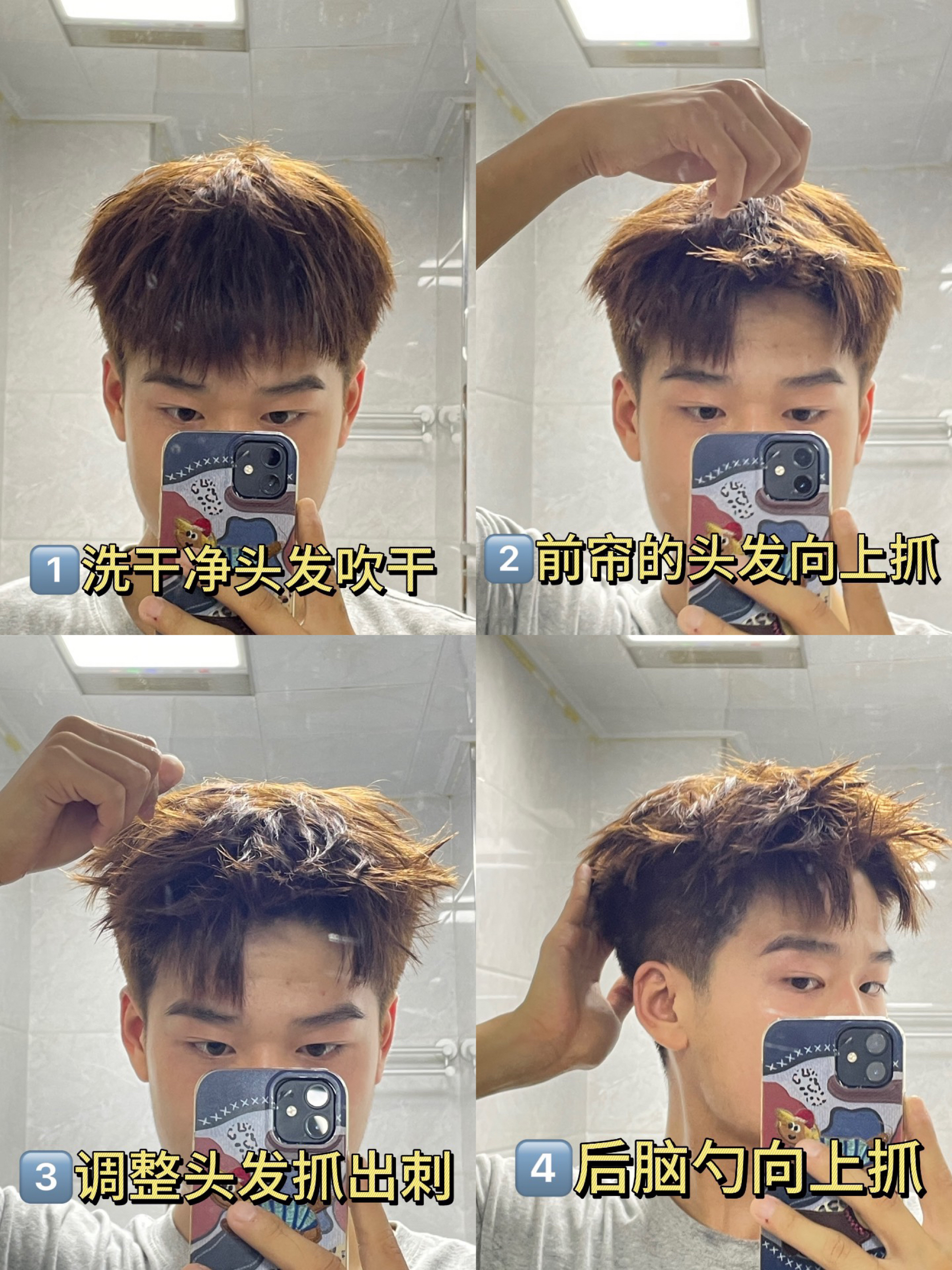 今天教会大家如何一分钟抓好美式前刺! 教程: 1️⃣、首先将我们的头发洗一下吹干 2️⃣、前帘向上抓 3️⃣、沿着纹理 将我们上侧的头发抓出刺感 4️⃣、取少量发泥在掌心揉搓均匀后 将后脑勺的头发向上抓起 一款超帅的美式前刺就这样打理好啦 ❗️ 要想打理好一款好的发型 那一款好的造型产品必不可少 我打理头发最近一直在用 海洋至尊 🏠的发泥 质地细腻容易推开 塑形效果好 闻起来还有一股淡淡的...