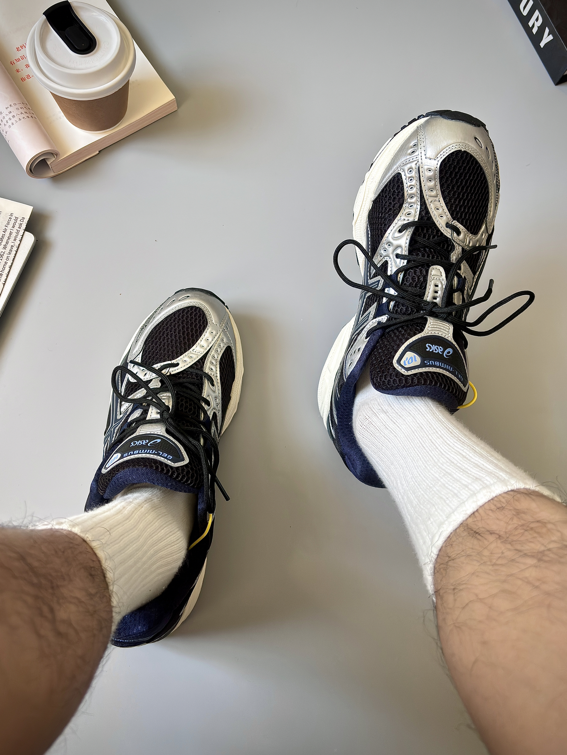 今天分享的是 AsicsAGEL-Nimbus 10.1 主色黑银+海军蓝配色。这款鞋最吸引我的是鞋面的这个歪头设计,太好看了! 说下尺码,平时穿鞋43码,正常码入手,脚宽的朋友建议拍大半码。刚开始上脚感觉有一点点的硬,它的GEL不是软绵的那种,是微弹脚感,走路能明显感觉到脚后跟往下微微一陷又迅速回弹的那种。这对于日常通勤的我来说就很棒,脚🦶板跟足弓也不会感觉酸痛。透气方面也不错,不闷脚,...