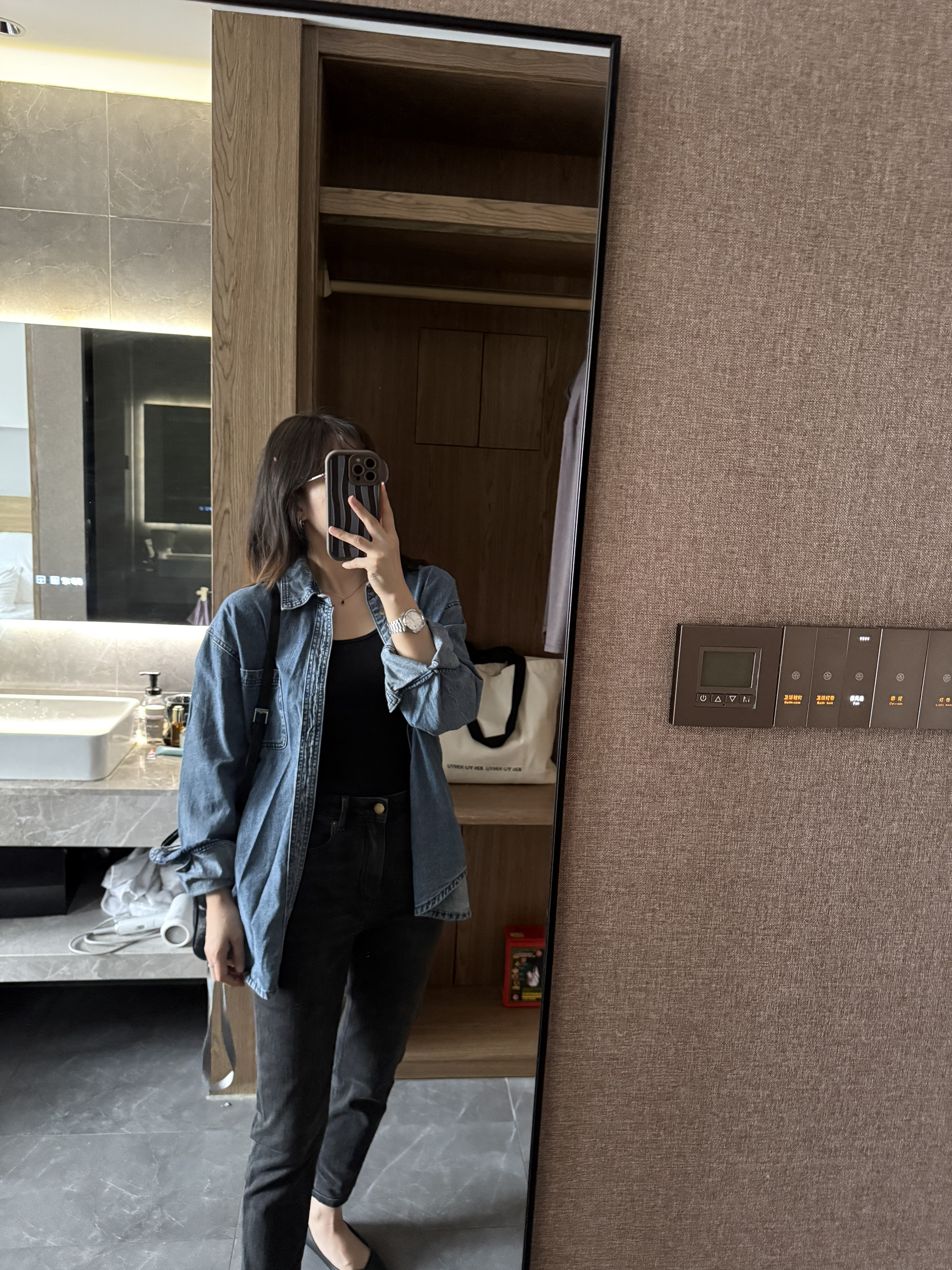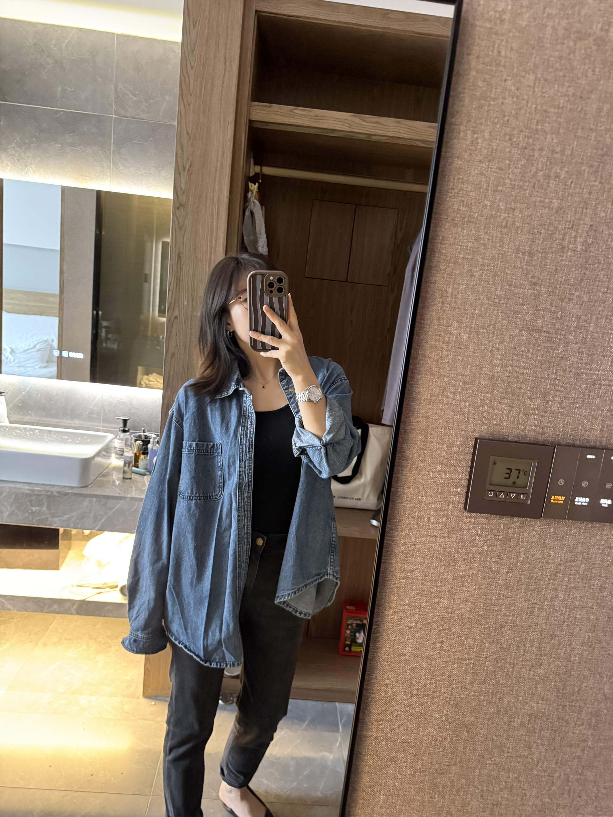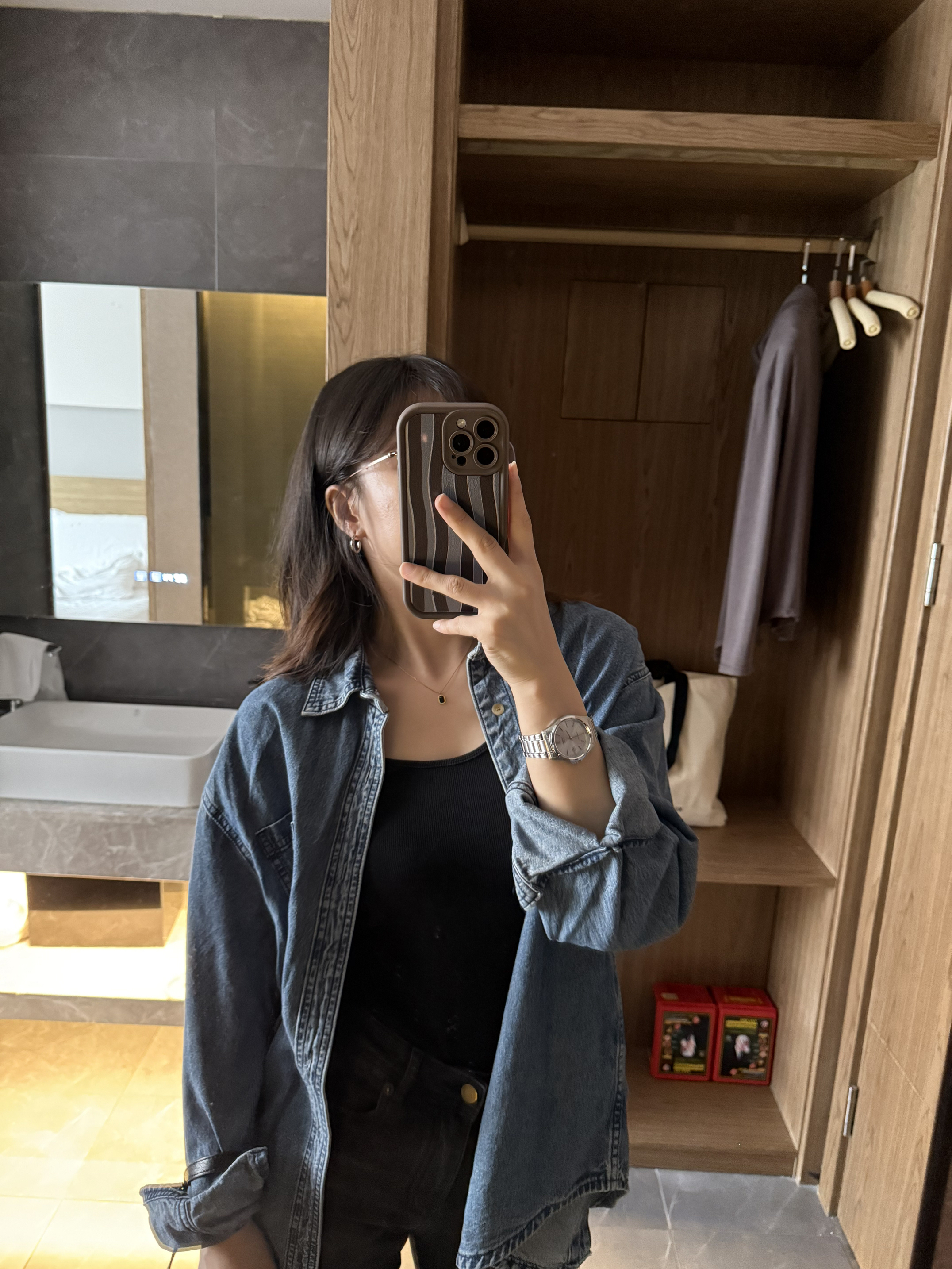 1️⃣ 宽松衬衫+牛仔裤,不强调曲线,却可以穿出洒脱优雅~ 2️⃣金色项链轻搭锁骨,牛仔蓝与配饰的搭配,即精致又不会过🤓🤓 3️⃣经典的牛仔永远不过时,高品质牛仔衬衫是你衣橱中的必备单品~ 4️⃣ 总结:牛仔衬衫+黑色内搭+深灰色牛仔裤+黑色斜挎包:黑色内搭与深灰色牛仔裤相搭,沉稳又时尚,整体造型低调而有质感