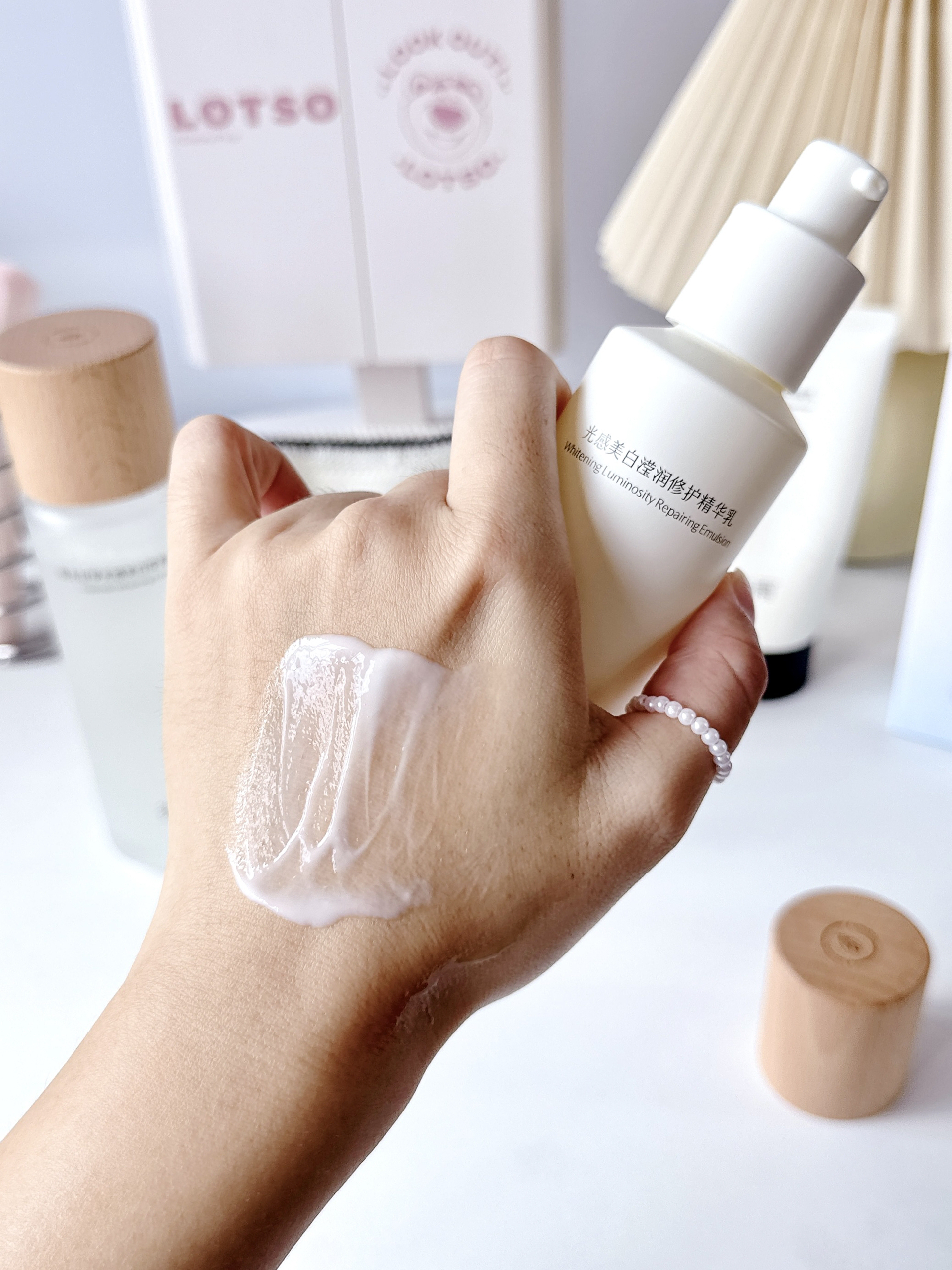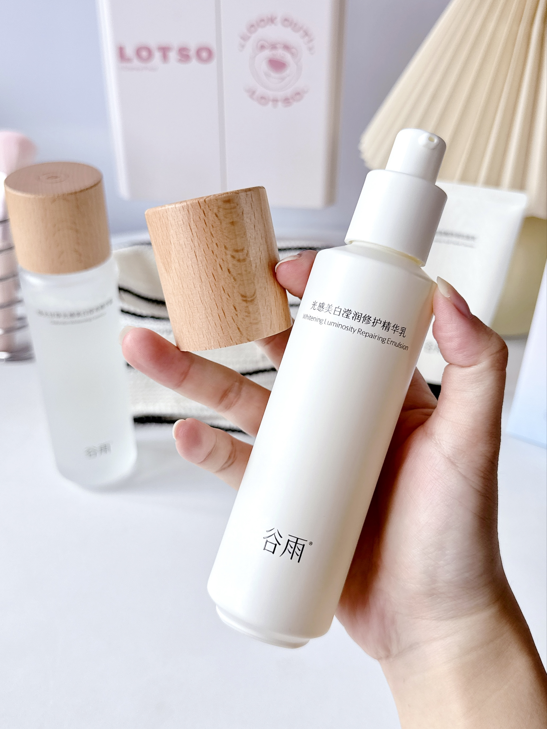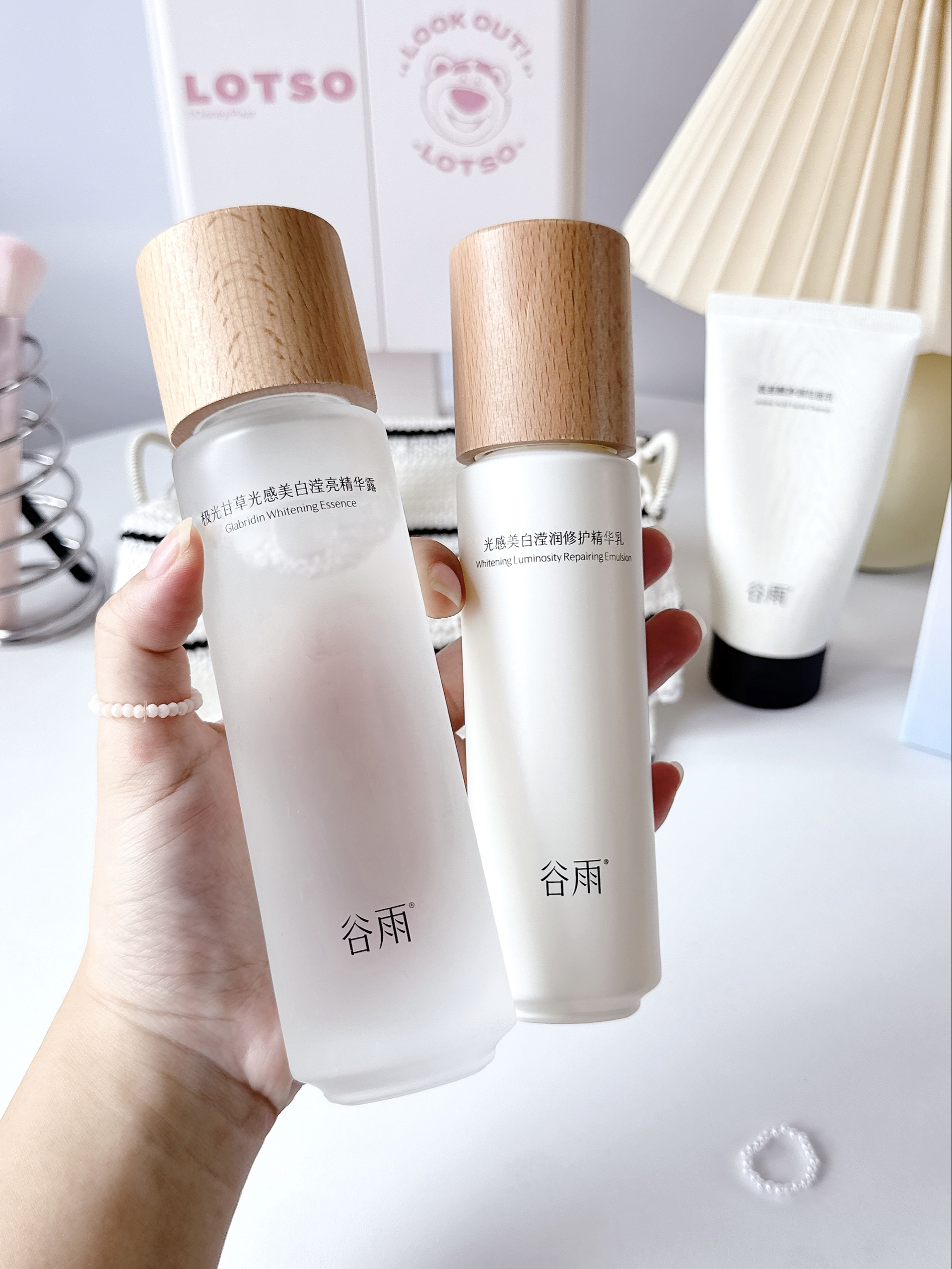 分享这阵子用的谷雨光感水乳~ 这套护肤里有水乳洗面奶和小样面膜,包装还挺用心的! 精华露质地清透好吸收,精华乳滋润但不油腻,保湿力对我来说刚刚好! 我一般会用精华水每晚湿敷5分钟,乳液按压两泵涂全脸,睡觉时也不粘枕头 用了快四周,我感觉肤色均匀了一些 看起来没那么疲惫,皮肤摸起来蛮光滑的 喜欢它淡淡的植物香味,闻起来放松舒服 ~ 换季用着皮肤也挺稳定,价格对学生党挺友好噢。