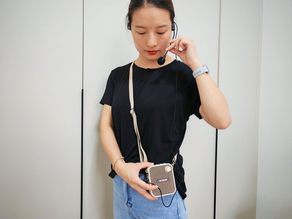 传统扩音器的头戴式或手持麦克风常因压迫感强、行动受限而饱受诟病。西圣BEE通过20g磁吸领夹麦彻底颠覆这一痛点: