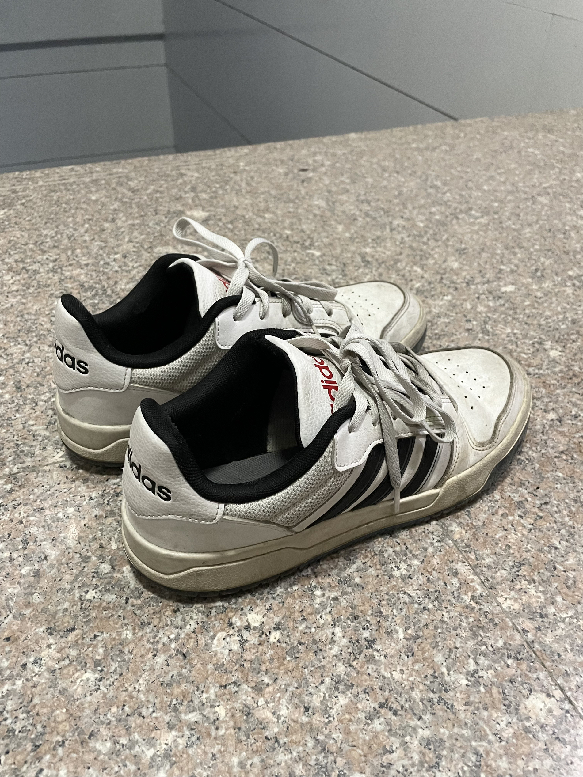 今天分享一双阿迪达斯低帮板鞋!!! 黑白经典搭配加上红色的阿迪鞋舌 让鞋子更有色彩噢~鞋后跟则是黑色阿迪达斯的标志 阿迪元素满满噢 这鞋设计风格比较复古化 穿起来的叫感还不错 鞋垫比较软 鞋身采用皮革材质 质感比较好 清洗起来也方便 不过穿久了会有折痕 鞋舌也比一般鞋子大一点 我个人比较喜欢后跟的标志 黑白配色搭配起来还是简简单单的 基本上没有什么颜色不好搭配 我比较喜欢黑色休闲裤搭一起 ...