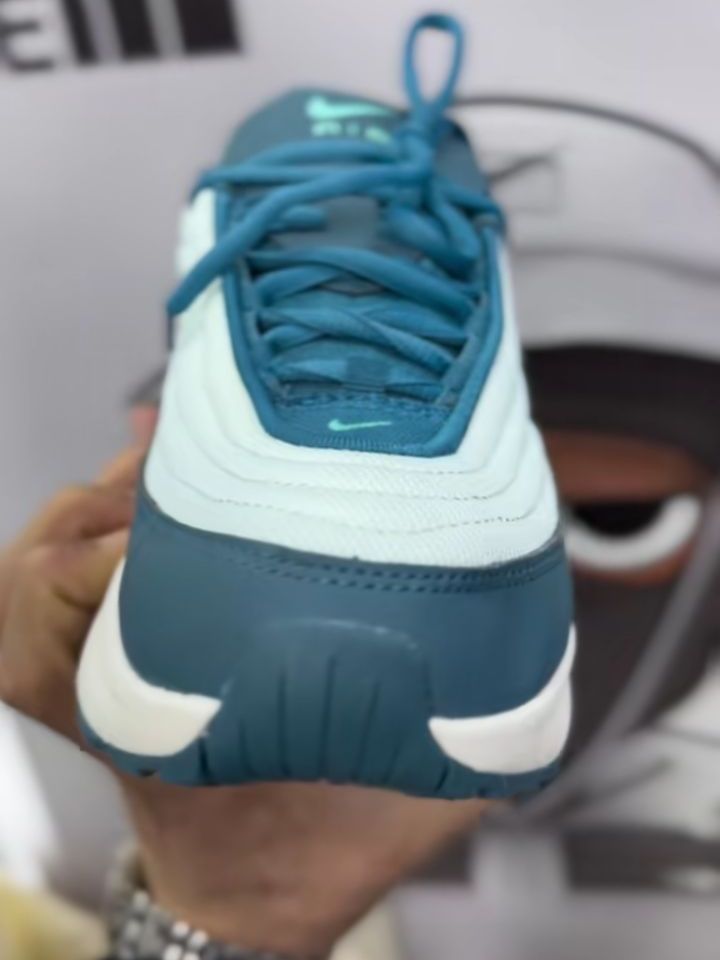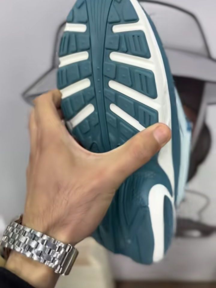这双Nike Air Max Plus的配色太戳我了!浅蓝和深绿的搭配,看着特别清爽,像夏天海边的感觉。拿到手第一感觉就是质感不错,鞋面网布透气,摸着也软乎。上脚后,Air Max的气垫踩起来很弹,走路久了也不累,而且鞋型挺修脚的,不会显得脚很大。搭配方面,我试了下配浅色短裤或者运动裤,都很有活力。不过这鞋面容易沾灰,得经常擦擦,而且鞋底的纹路有点浅,下雨天走路得小心点。但整体来说,颜值和脚感都在...