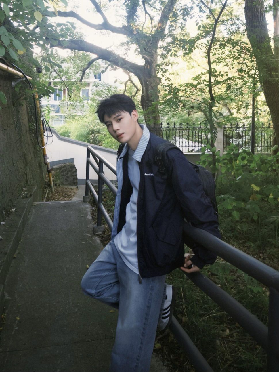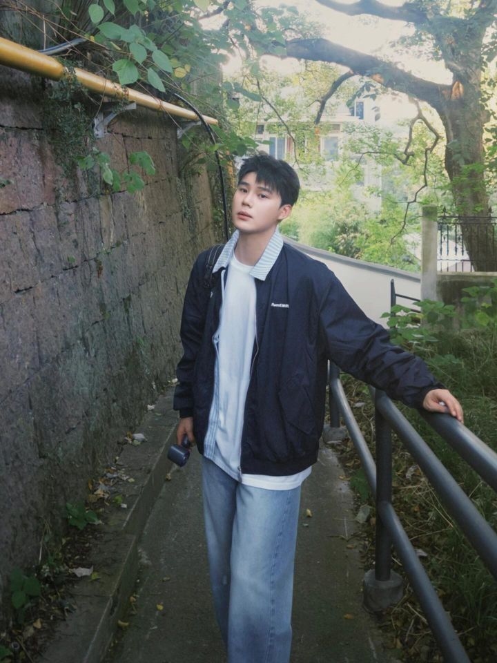 开始期待秋天了🍁 🌟藏青色的外套,简约又有质感,领口的条纹设计,瞬间为整体造型增添了几分细节感,不会显得单调。 🌟内搭浅色系的T恤,和外套形成柔和的色彩过渡,看起来舒服又协调。 🌟下身搭配一条浅蓝色的阔腿牛仔裤,宽松的版型,走起路来带风,随性又自在,还能很好地修饰腿型。