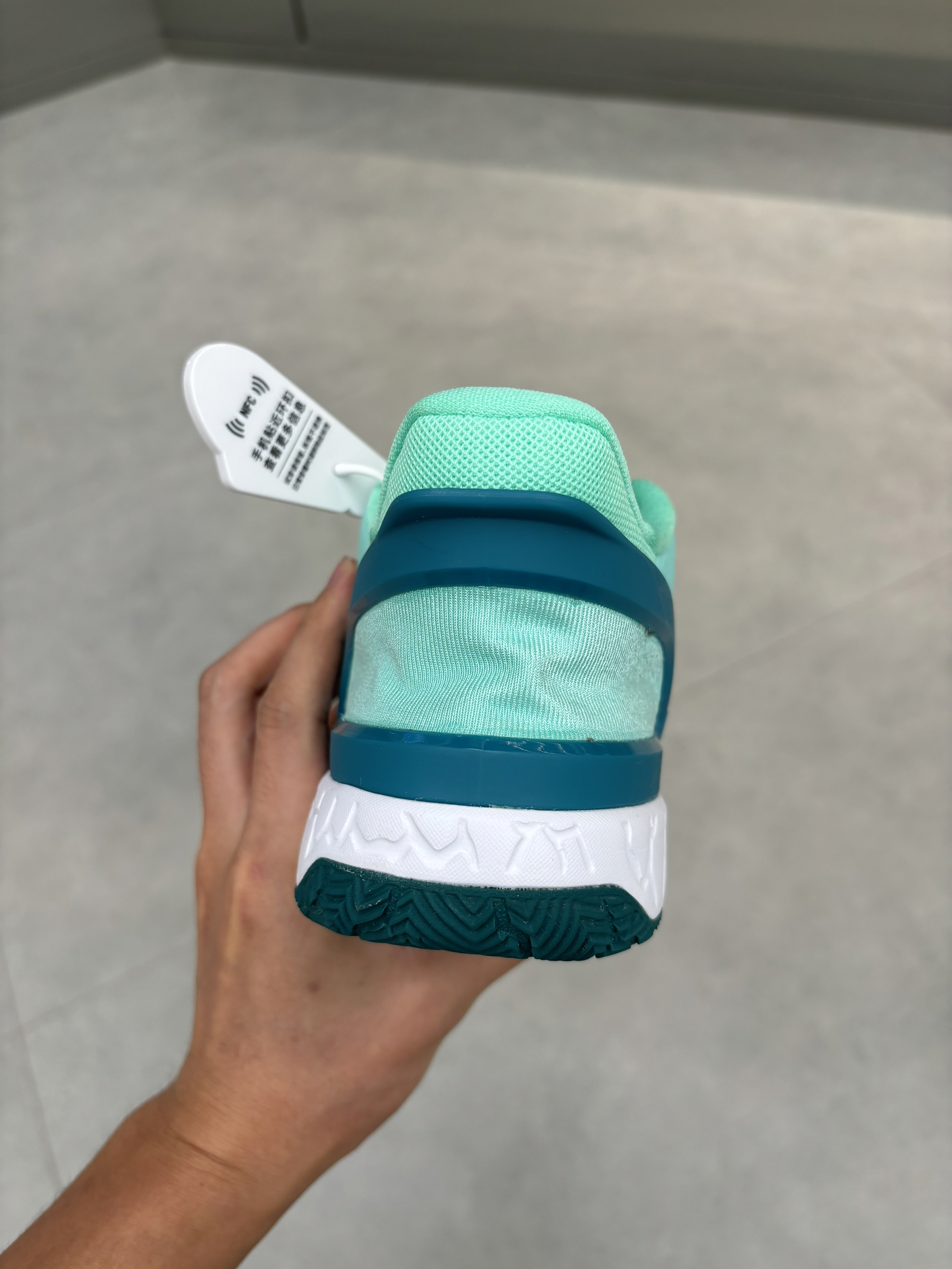 开学小孩哥又有新篮球鞋选择了 隔壁班的说这双鞋很好看 清爽的薄荷绿色确实可以 后跟有点像跑车的飞翼设计 中底居然还有爆裂纹 鞋面强度看起来不错 打篮球或者运动应该都可以