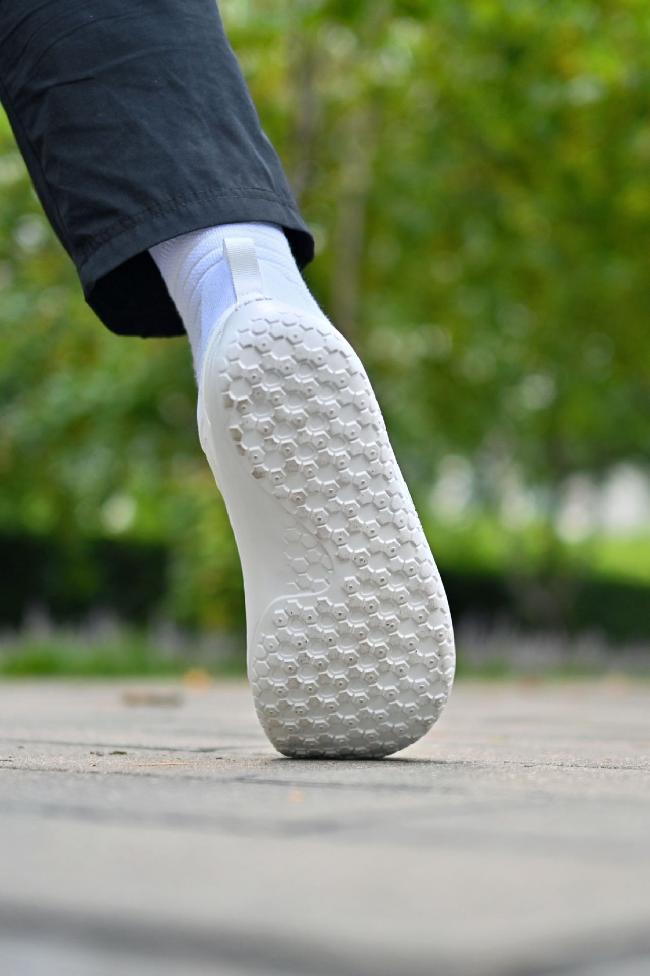 就是这种薄底赤足鞋,亮点就是底会做得“很薄”,然后足弓处也有做加宽处理!这样走路的发力就会更加自然,也可以更多锻炼到脚部自身的力量~ 但虽然是薄底,但上脚并不会觉得特震啊,鞋垫会做得挺厚实,能提供蛮直接吸震感,日常走路通勤刚刚好~整体的透气也有,肉眼可见的透气孔,加上袜套一体式的鞋面设计,穿脱也会比较挺方便! 然后橡胶凸起的外底纹路,在室内木地板会抓的挺牢,因此很多人也会选择穿这种鞋去健身训练...