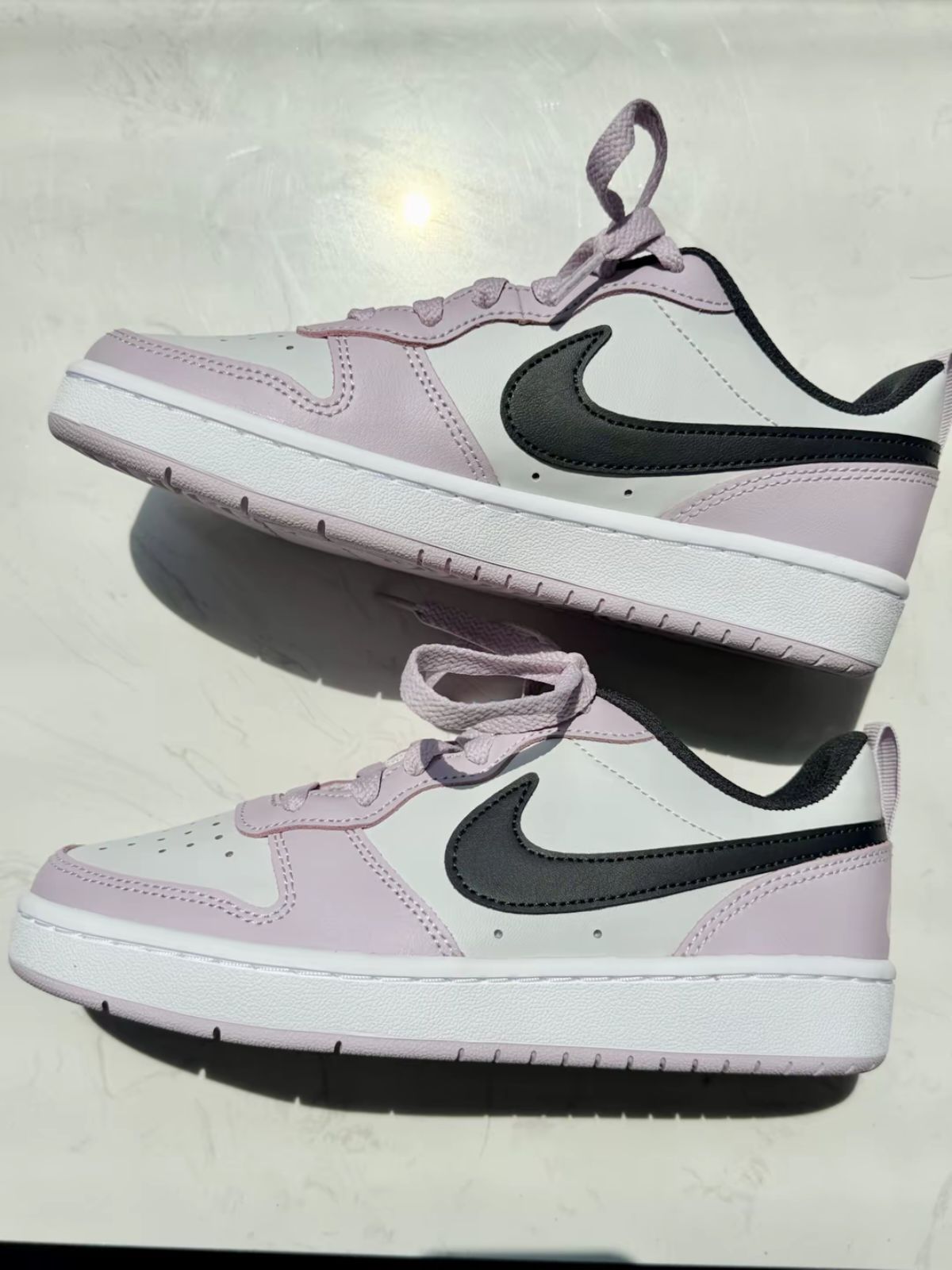 最近入手了这双 Nike Court Borough Low 2,樱花粉的配色真的超级适合夏天,低帮设计搭配短裤或裙子都很清爽。36码的尺码标准,上脚包裹感刚好,不会压脚背,皮质鞋面柔软,穿久了也不会磨脚,舒适度在线。 1️⃣整体颜值: 鞋型比较修长,视觉上显得脚瘦,搭配牛仔裤或休闲裤也毫无压力。鞋底不算特别厚,但缓震足够日常穿着,走久了也不会累。樱花粉的色调偏淡,不会太扎眼,属于低调又有点小...