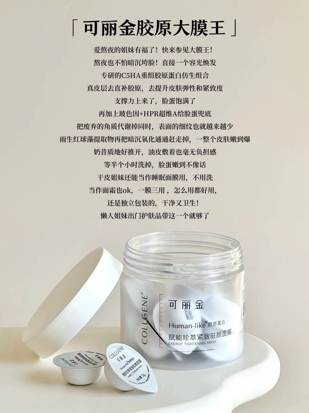本篇笔记关联了COLLGENE/可丽金 金胶卷重组胶原蛋白蕴活提拉紧塑抗皱精萃霜 淡纹保湿滋润 补水、COLLGENE/可丽金 胶卷面霜眼霜次抛礼盒装 提拉紧塑 胶卷面霜30g+胶原大膜王20颗、COLLGENE/可丽金 重组胶原蛋白蕴活立体紧致淡纹精华胶卷眼霜 紧致等商品,为用户提供真实的使用体验和购买参考。
