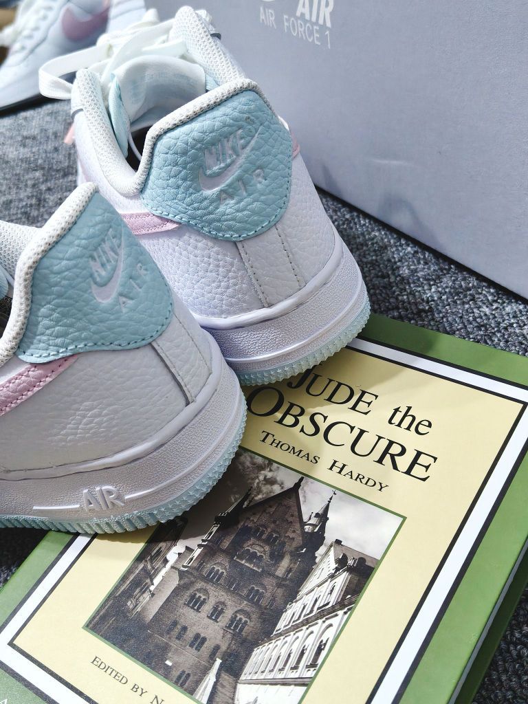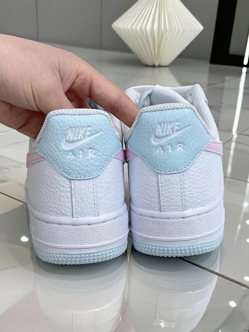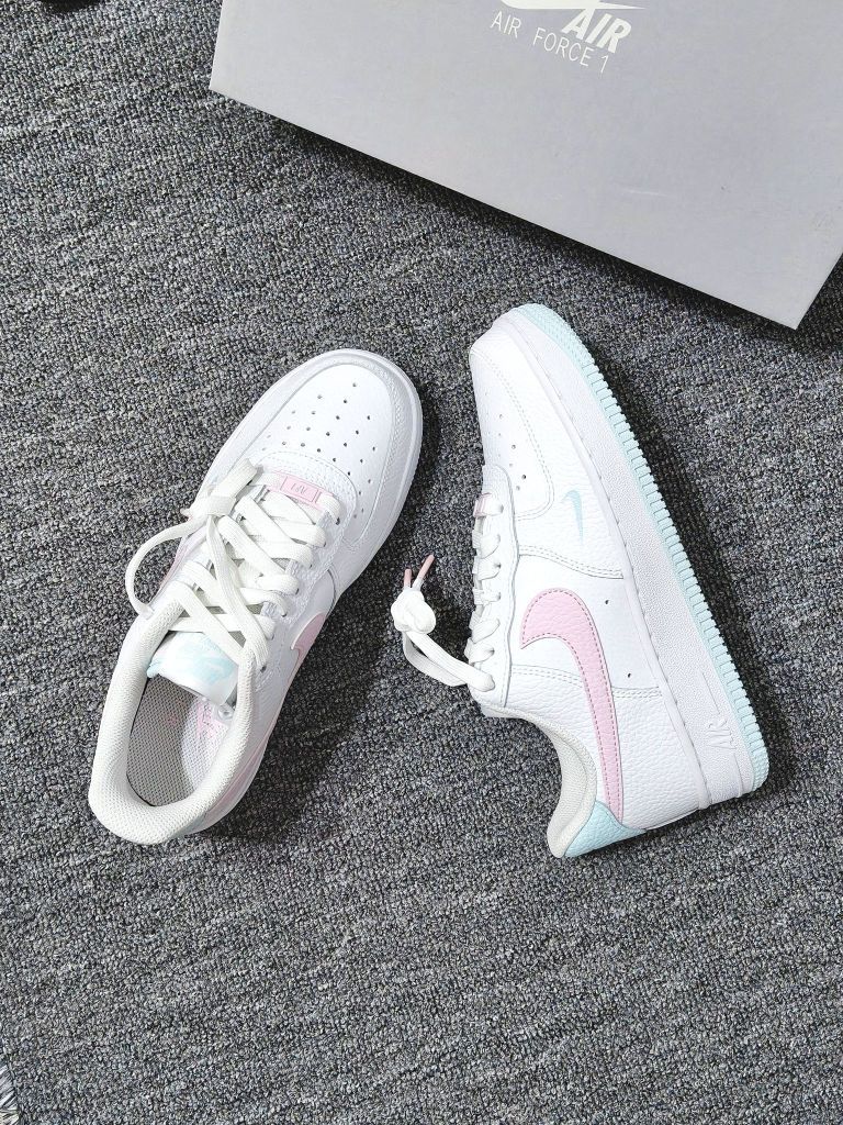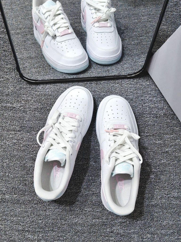 谁能拒绝白粉色的AF1啊!! 刚收到就忍不住对着镜子拍了好几张,奶白底色配浅粉勾子+冰蓝细节,像把马卡龙色系揉进鞋子里,温柔又清爽,秋天搭卫衣、小裙子都好搭~ 上脚比想象中舒服,鞋底软乎乎的,走路久了也不磨脚。而且鞋底带纹路,下雨天踩水也不容易滑,安全感拉满~ 现在天天想穿它出门,搭牛仔裤或者leggings都很出片,有没有姐妹和我一样,对这种清新配色的运动鞋毫无抵抗力?