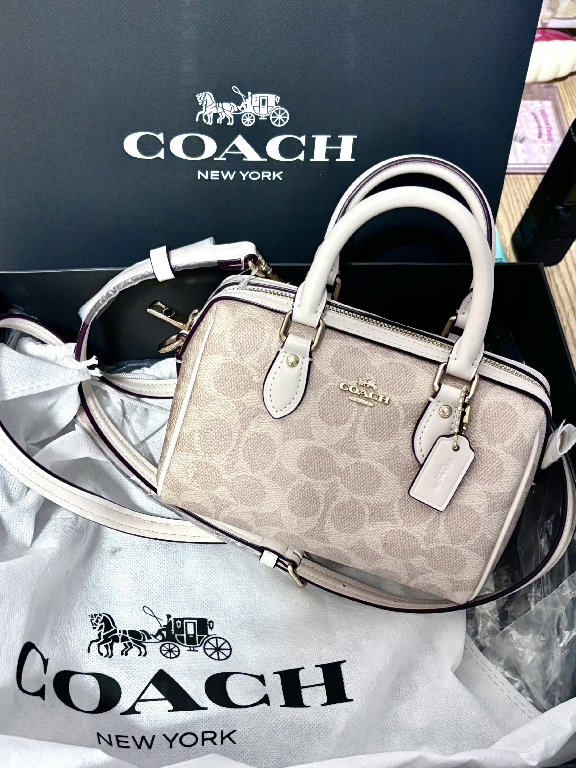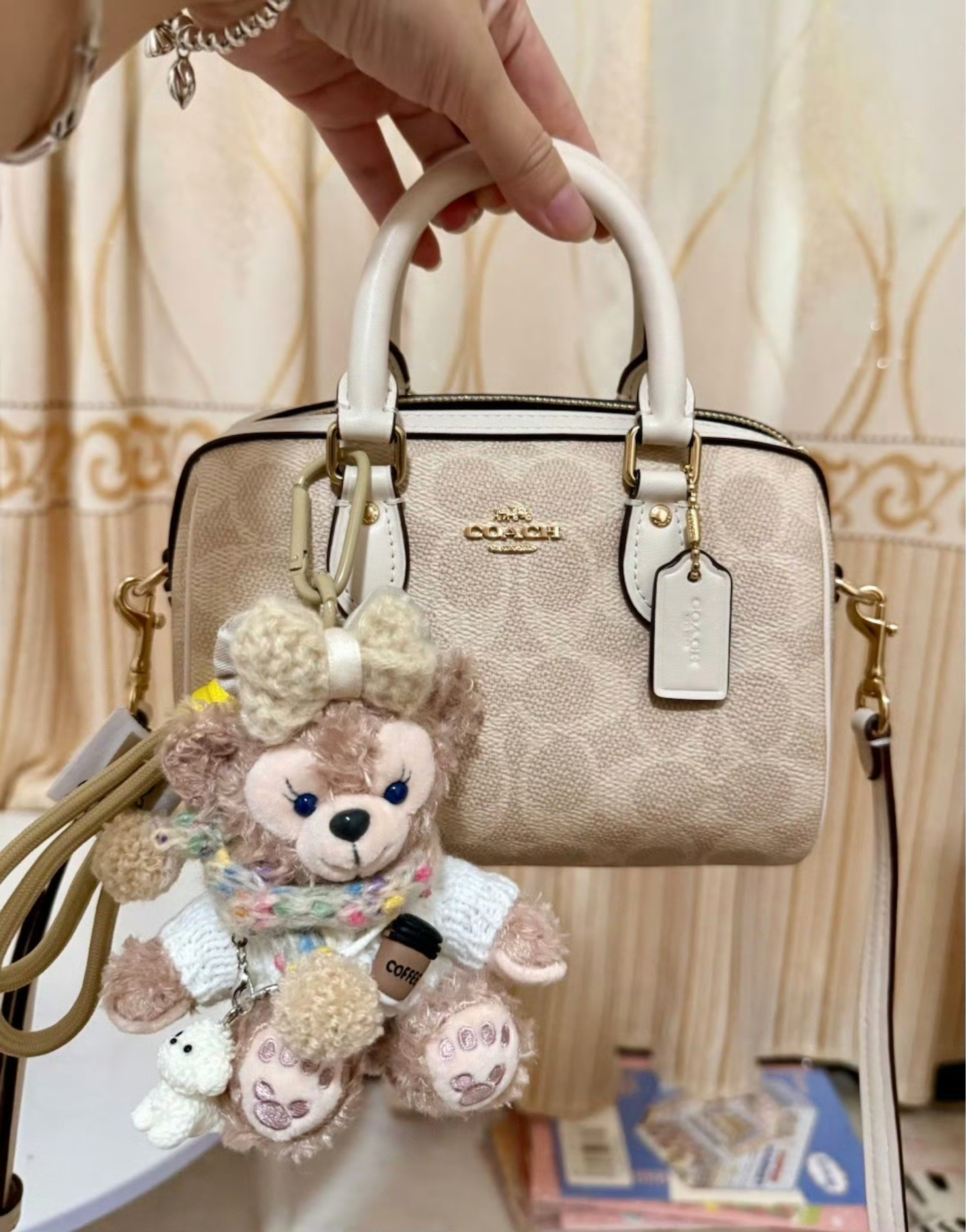 本篇笔记关联了Coach ROWAN 18 迷你 奥莱经典标志老花印花波士顿拉链开合涂层帆布皮革色块手提包水桶包单肩斜挎包 浅卡其等商品,为用户提供真实的使用体验和购买参考。