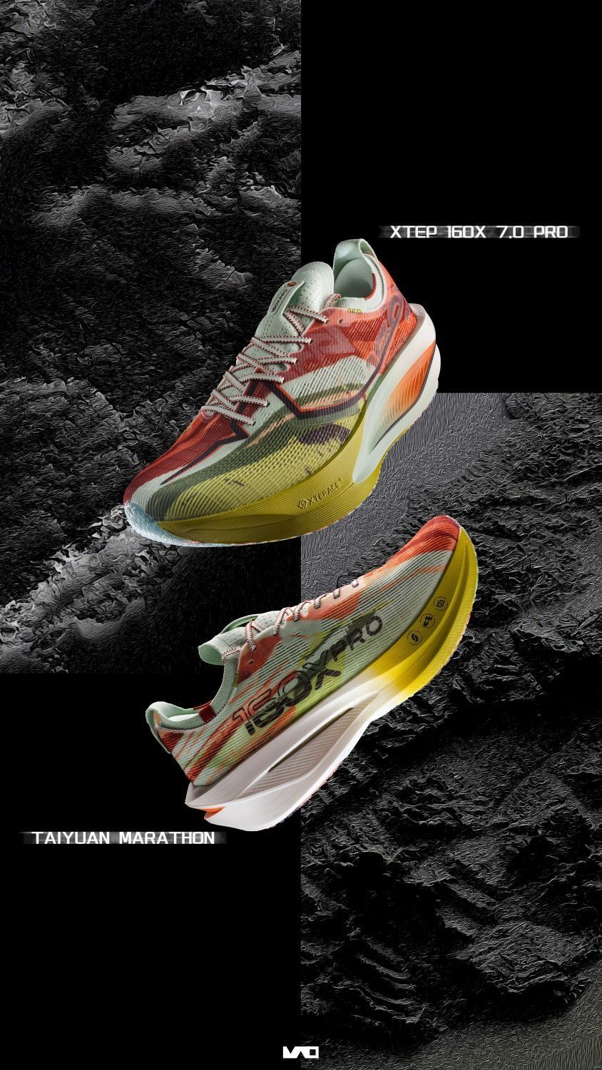继重庆、上海的城市马拉松主题160X系列后, 这次轮到太原了,鞋款也来到了特步160X 7.0 PRO, 这次的太原主题设计, 比较有代表性的在后跟的“不赖,真得劲儿”, 而其他的地区元素你能看出来吗? 答案是: 鞋身的色块、鞋底还有鞋垫的图案, 都来自山西省的立体地貌图, 偏红的部分代表了太行山脉, 绿色的部分则代表了高山盆地、平原河流。 可以搜来对比一下,看看细不细。 其实鞋后跟的字我倒是觉得...