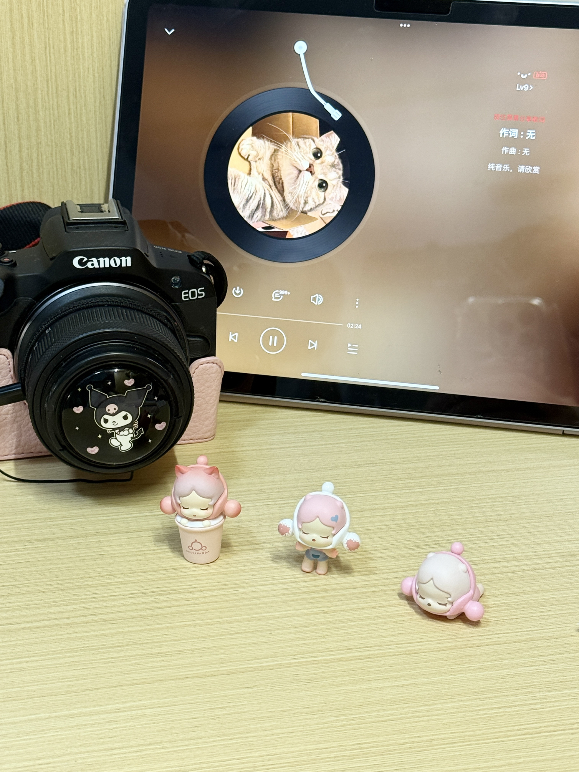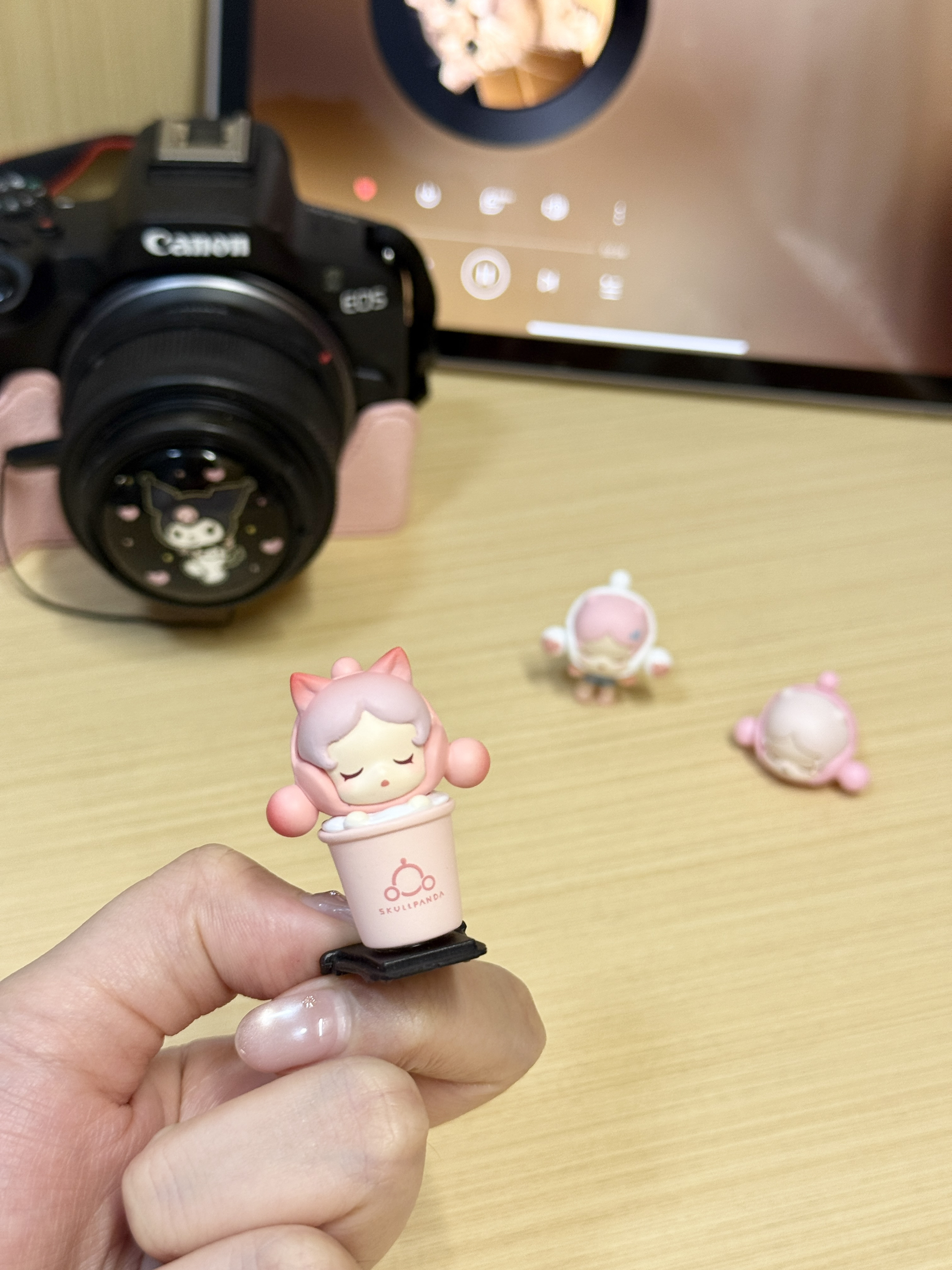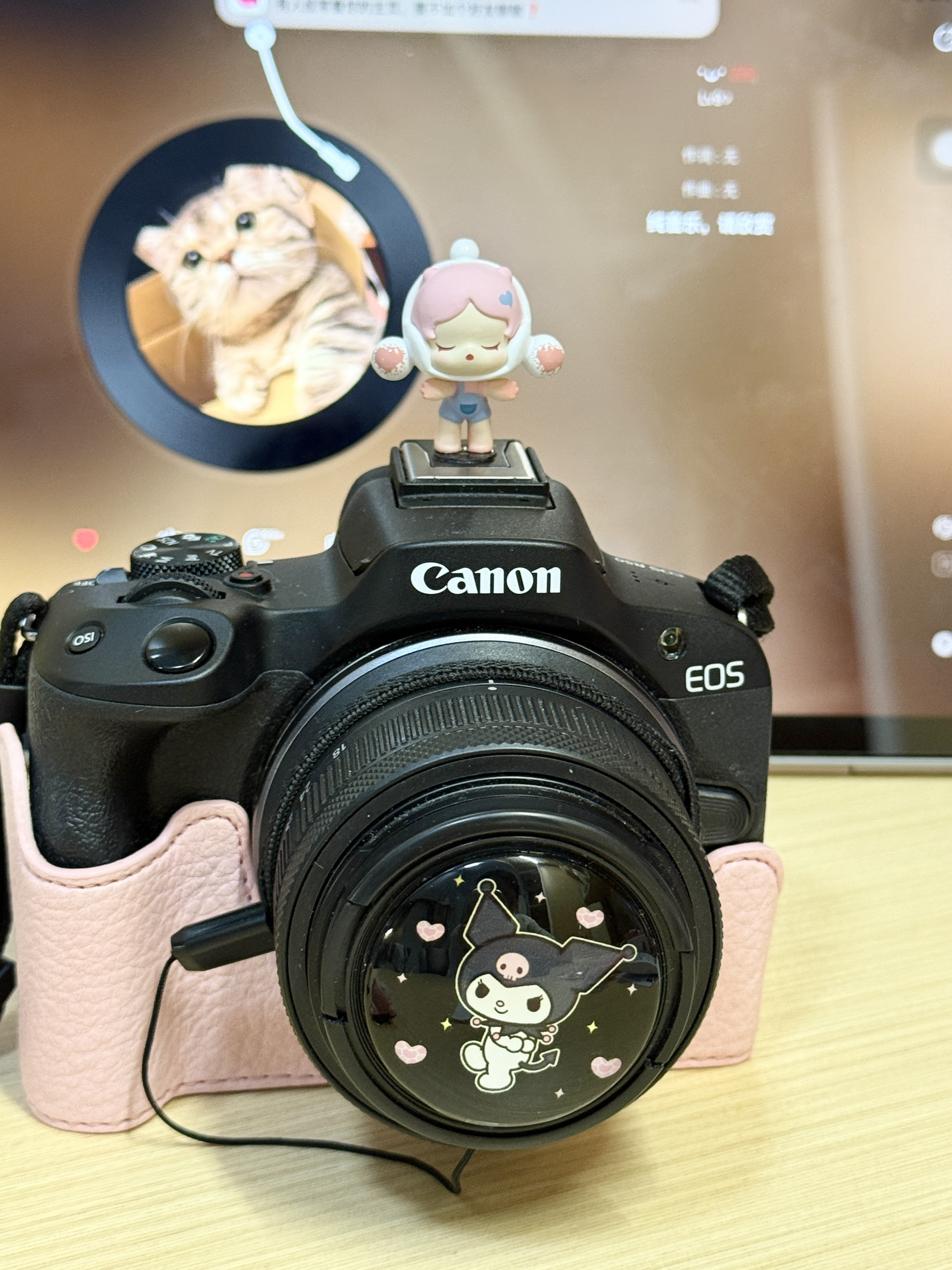 开学给我的佳能r50换个新装扮啦 可爱的热靴盖买一个比较贵 就自己低成本制作热靴盖啦 买了泡泡玛特的萌粒和匹配热靴盖 用圆形胶条粘住了就很牢固了 自己重新做了三个热靴盖 套在相机上尊滴被萌晕了 这三个相机热靴盖搭配 你们更pick哪个呀?