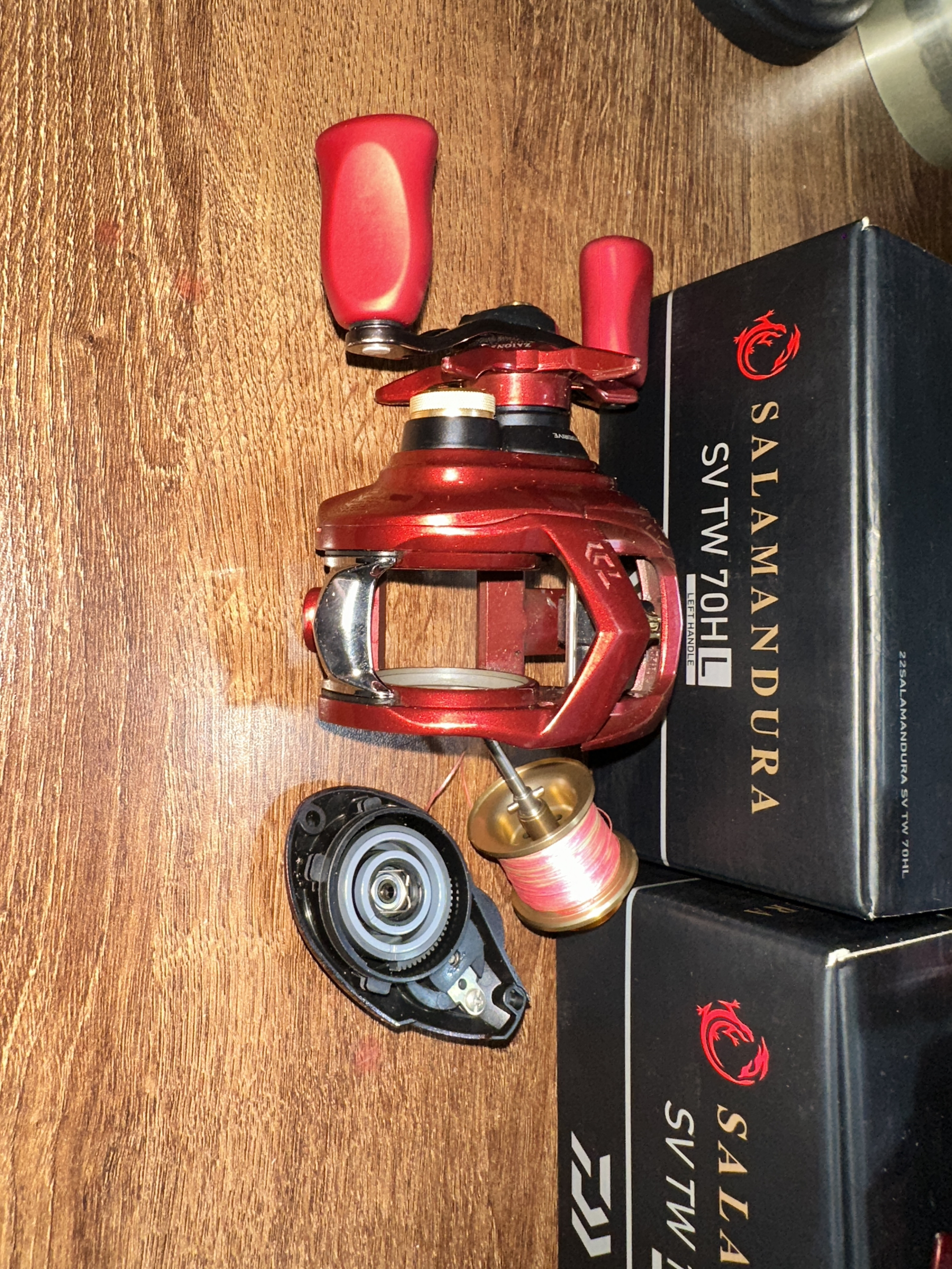 最近入了达亿瓦火蜥蜴70sv,给大伙分享下使用感受👇 👉轻!自重才185克,长时间作钓手不累,舒适感拉满。 👉抛投稳准狠!超硬铝30mmSV线杯搭配TWS出线口,5 - 15克假饵抛投,弹道漂亮,距离也够,钓翘嘴、鳜鱼很合适。 👉颜值高!红金配色亮眼,侧盖火蜥蜴图案若隐若现,高级感十足。 👉新手友好!机械刹车零调整,调外部磁力刹车就行,20档可调节,炸线概率低。