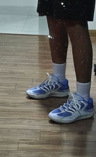 不是杜兰特的粉丝,估计都不会入手,但是这蓝色也确实是很好看。整体感受挺稳的 缓震不错,包裹也没问题,鞋带只要舍得拉紧怎么会掉根。后根海绵超舒服。