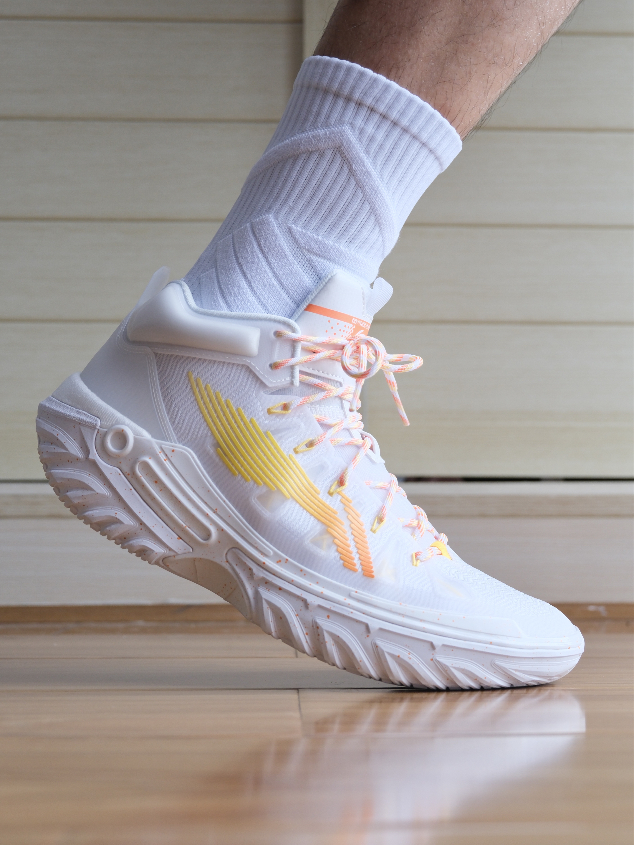 👟:李宁 桀骜2High 白鹭配色(上脚45码) 外场“野兽”做了升级后兼具内场性能啦❗️ 首先白鹭这个配色我挺喜欢的,整体干净亮眼👀 鞋侧羽毛状的logo挺灵动的有点像白鹭展翅的感觉,还有鞋中底的TPU和甩点设计和配色相呼应👍 其次是全掌䨻科技中底,降低了前掌重心的同时提升了后掌的回弹和缓震效果,对大体重和喜欢暴跳突破的朋友来说都挺友好的~ 一体式的TPU设计在做变向做急停这些动作的时候能够提...