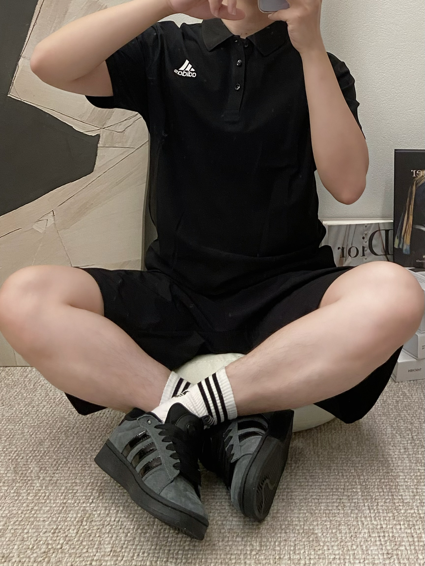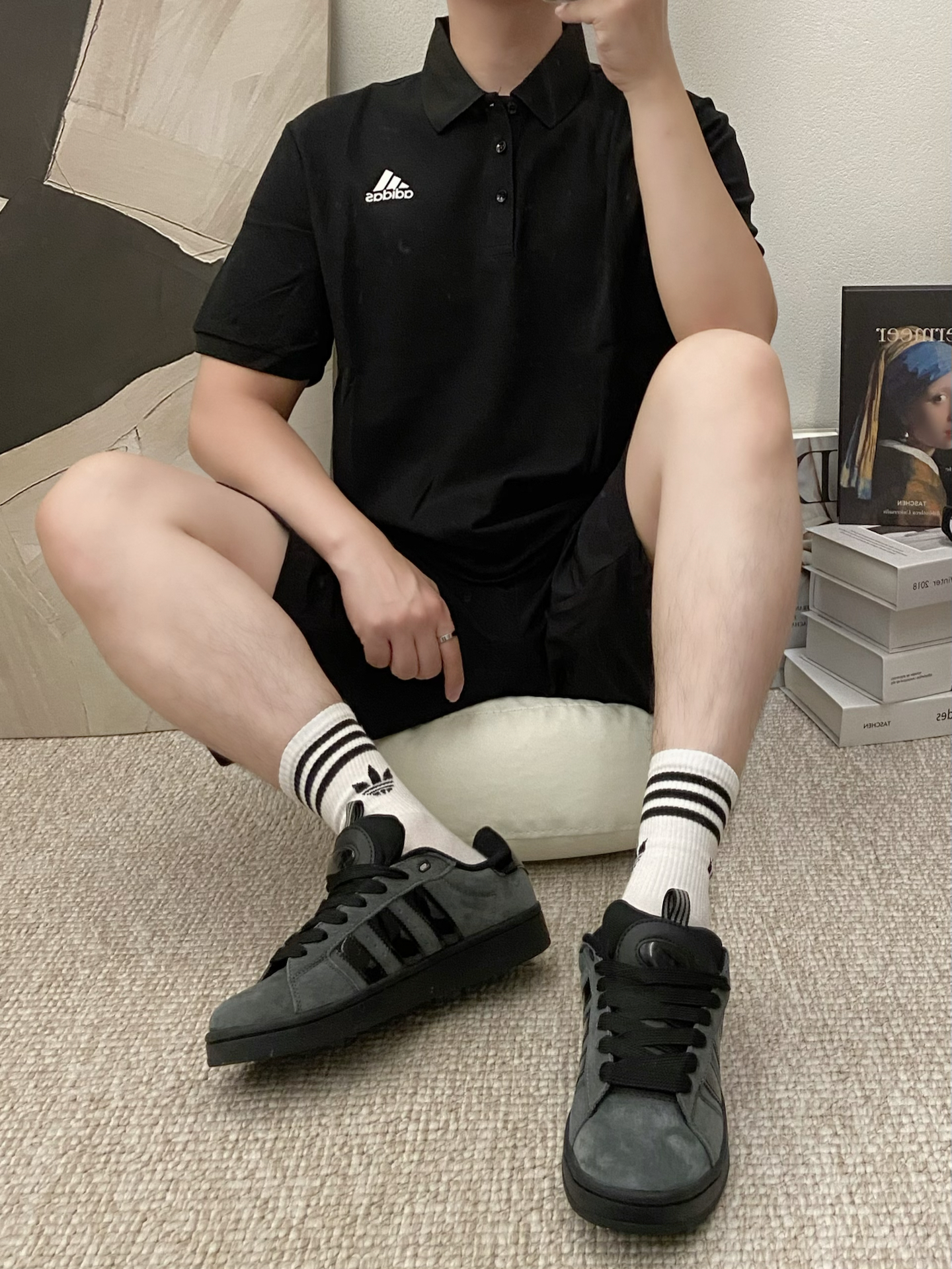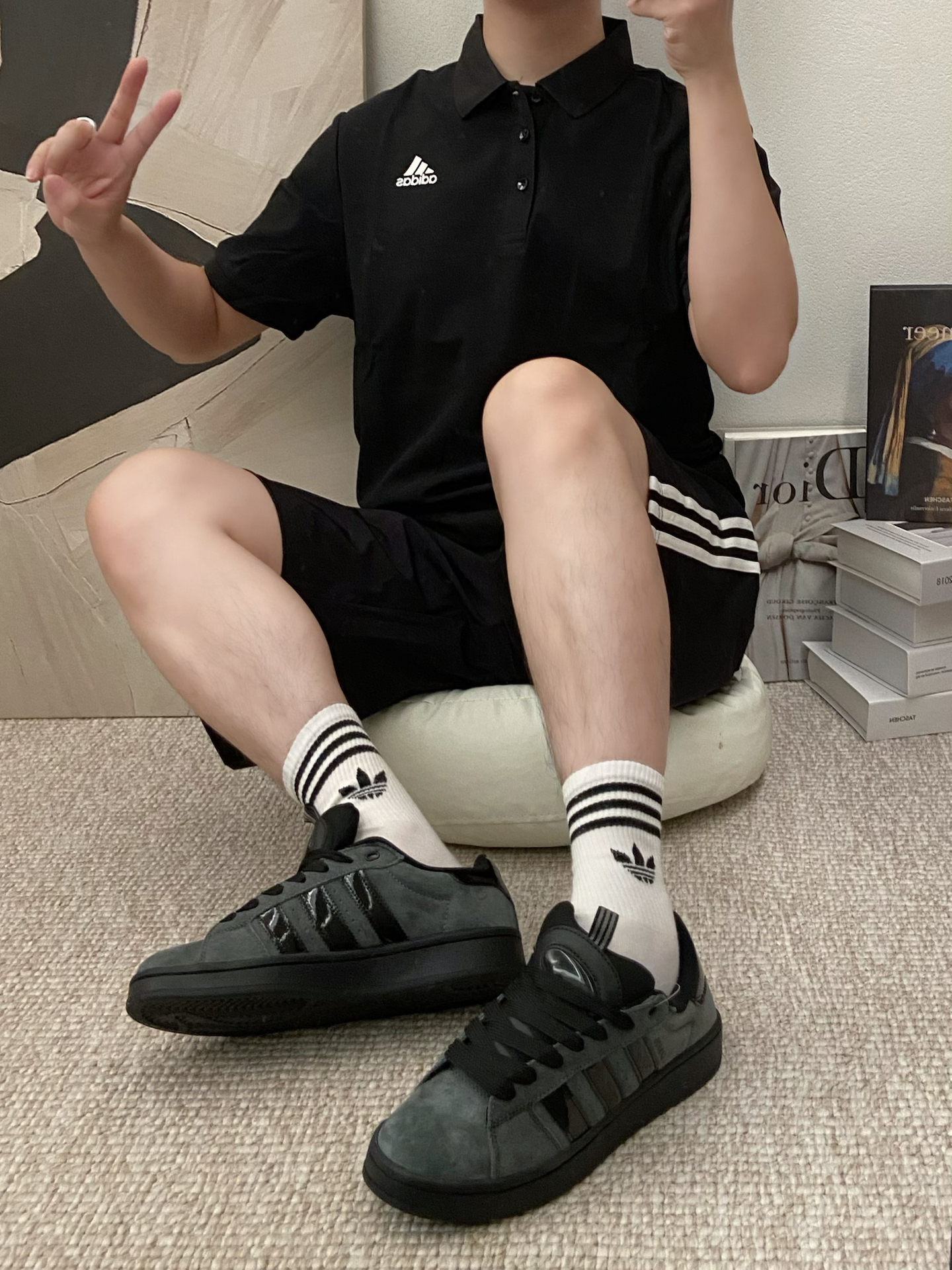 我夏天爱走简约黑调通勤风,搭同系列polo+短裤,再踩这双板鞋,整套cleanfit利落又有质感~ 鞋面是合成革+绒面拼接,低帮设计显腿长,橡胶底走路也稳。不过刚穿时鞋舌有点磨脚踝,穿两次磨合后舒服多了 配白袜或者光腿都好看,这几天出街回头率真不少