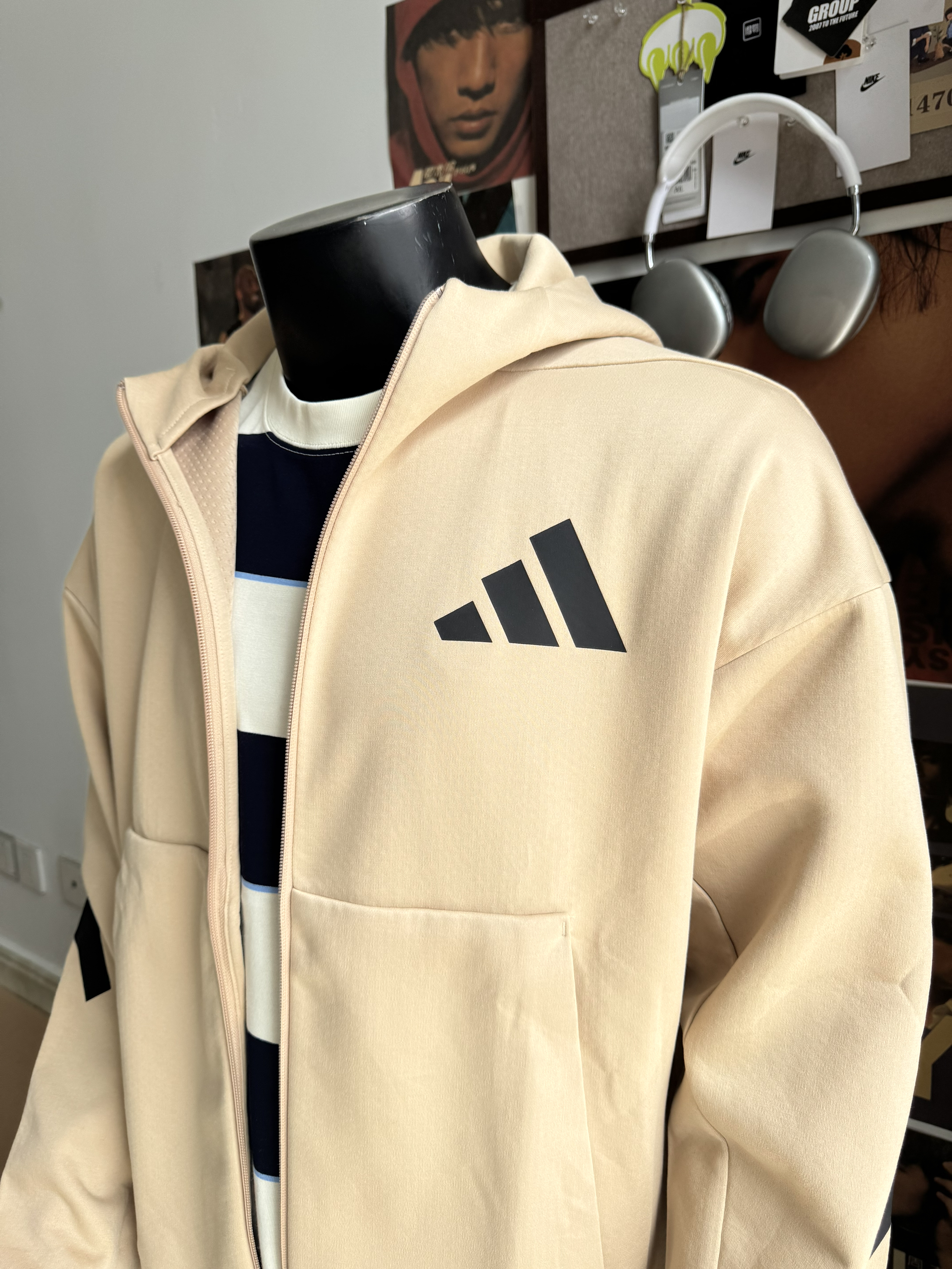 我最近挖到开春&开学叠穿神器! 这件立领夹克条纹+小logo设计,美式感拉满~ 落肩袖宽松不压身,聚酯纤维面料厚度适中,防风又透气,单穿或搭复古Polo都很有味道✔️ 唯一小遗憾是深色容易粘毛,但整体帅度能cover! 想速成少年感ootd的宝子可以冲~
