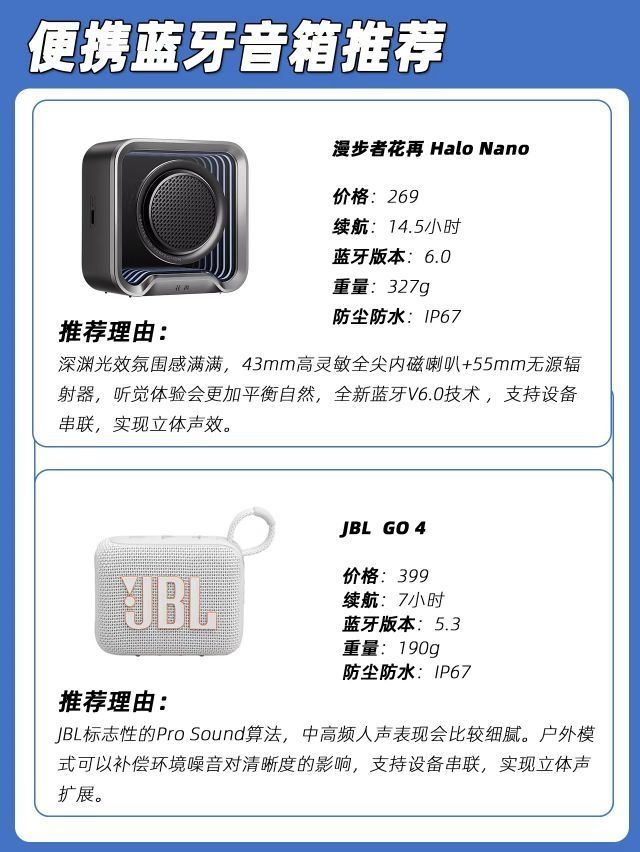 本篇笔记关联了JBL GO4 便携式桌面无线蓝牙音箱 蓝牙5.3 高效续航 防水 长续航 极速充电 高音质 重低音 轻巧 立体声 上新 高性能 白色、MARSHALL/马歇尔 WILLEN 无线便携蓝牙音箱 防水 续航 蓝牙连接 黑金色、Edifier/漫步者 花再Halo Nano 便携蓝牙音箱 户外 长续航 IP67防水 低音炮 幻境银等商品,为用户提供真实的使用体验和购买参考。