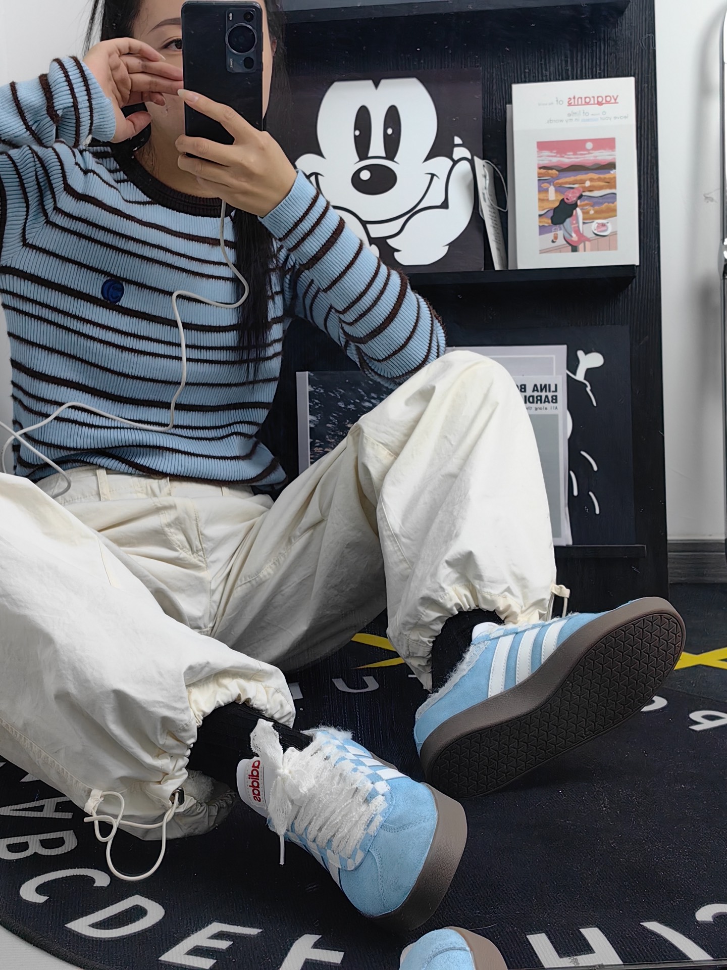 清新感直接拉满~蕾丝鞋带比普通款更有设计感,配休闲裤、卫衣都好搭! 穿了段时间,皮革面耐造但打理得小心些,秋天松弛穿搭靠它撑场子👟✨